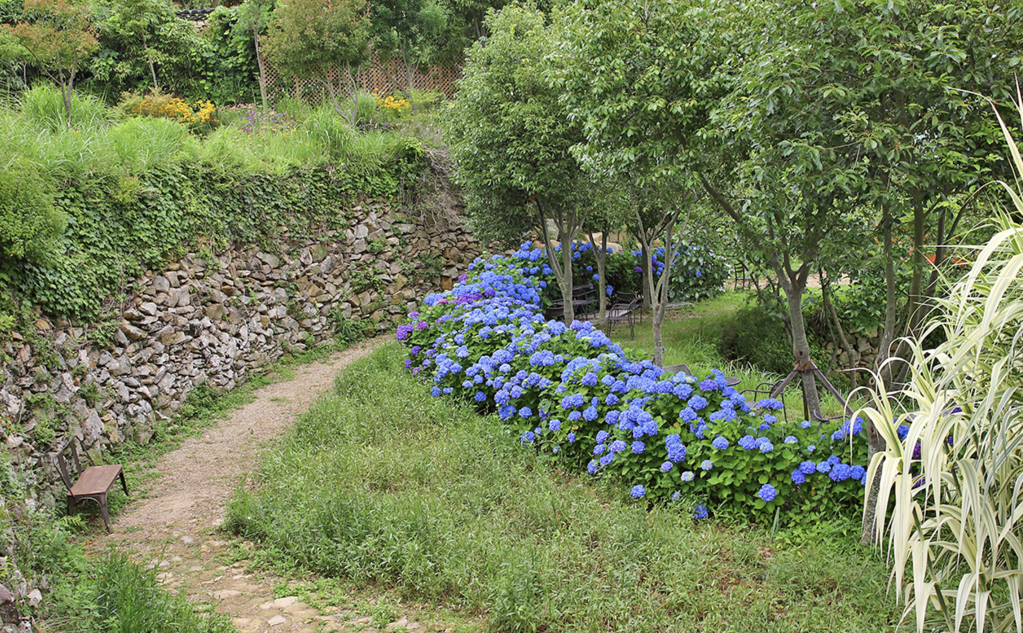 약 16만 평의 부지에 조성된 정원으로 30만주가 넘는 수국과 다양한 종류의 나무들을 감상할 수 있는 정원이에요.