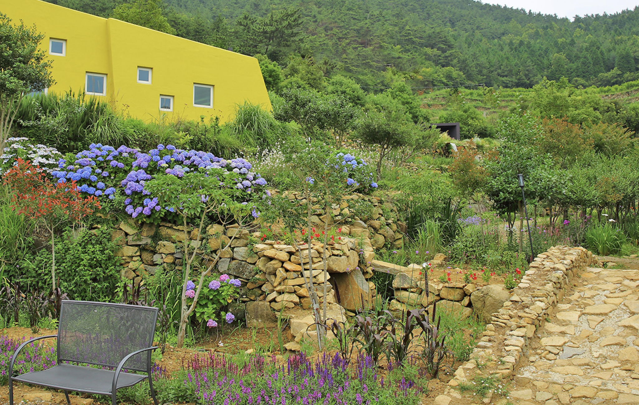 약 16만 평의 부지에 조성된 정원으로 30만주가 넘는 수국과 다양한 종류의 나무들을 감상할 수 있는 정원이에요.