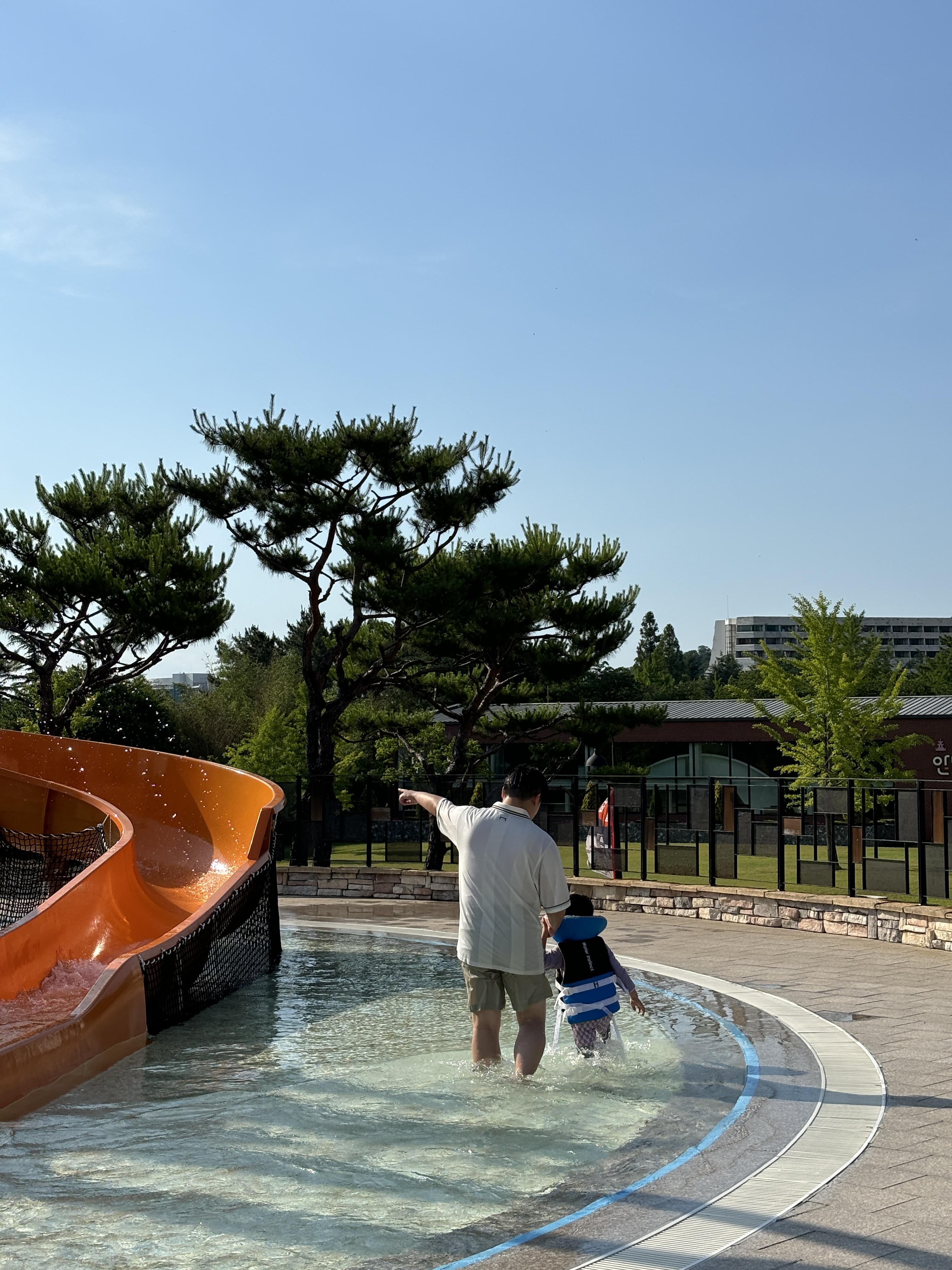 아이는 아빠랑 같이 신나게 물놀이 한바탕!!