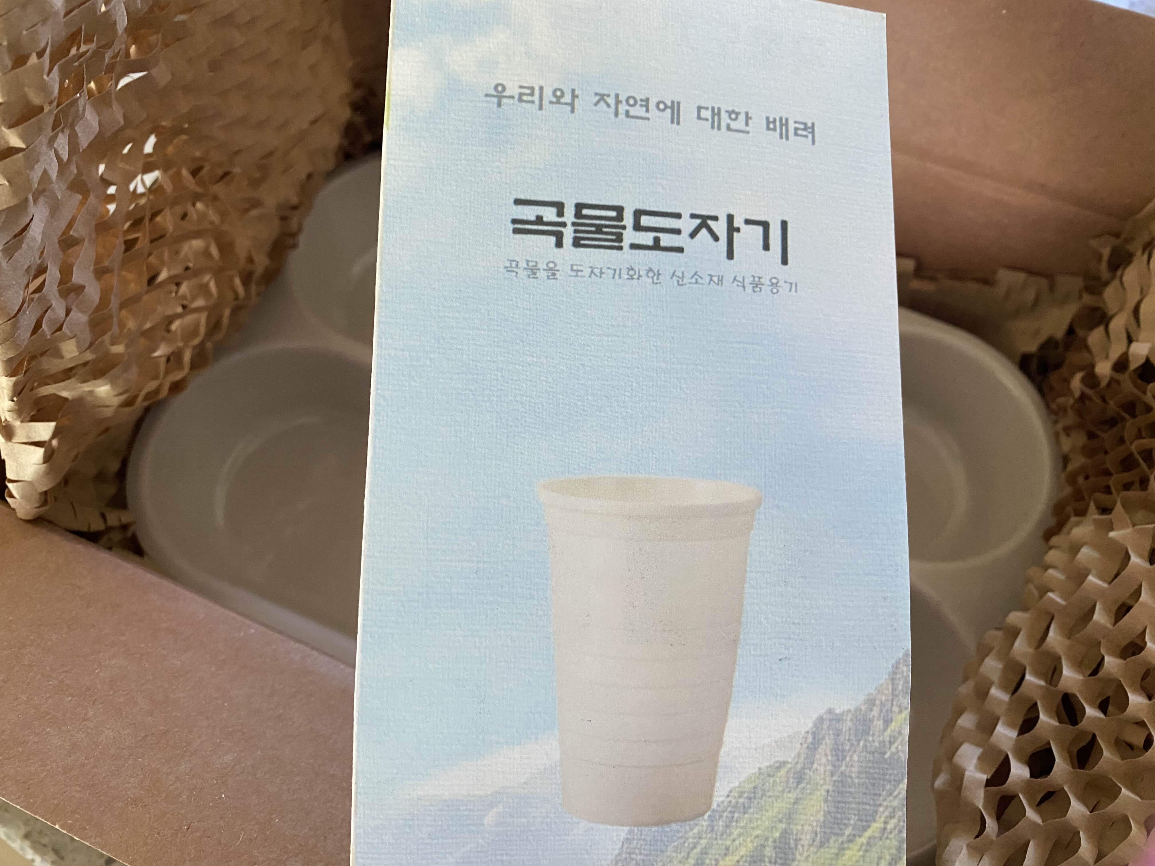 곡물도자기는 곡물을 도자기화한 신소재로 플라스틱처럼 반영구 사용은 불가능하지만 전자레인지 사용(700W 3분 이내), 식기세척기 사용, 열탕소독이 가능한 소재라고 하요.