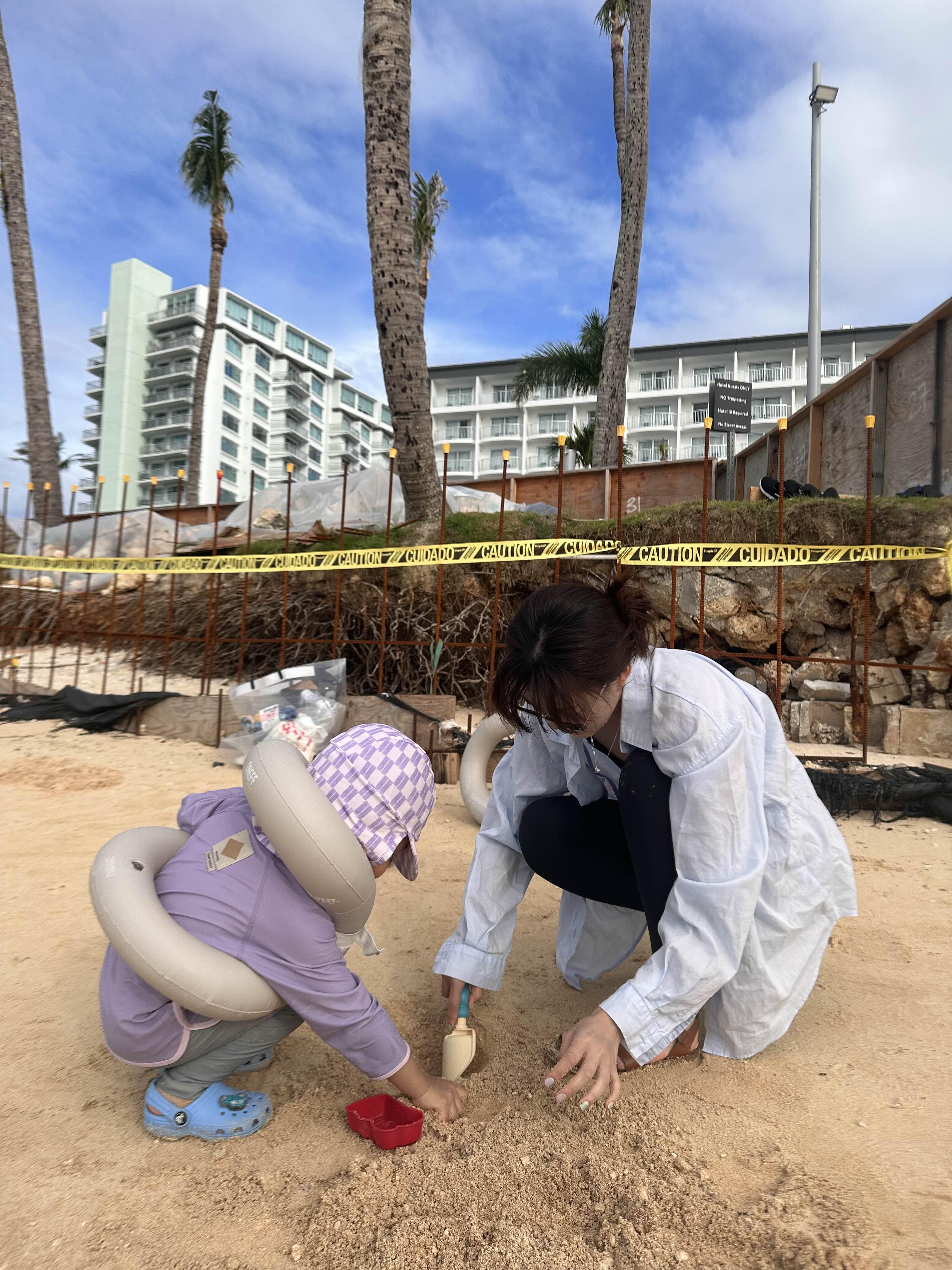 여기서 스노쿨링하면서 물고기도 보고, 아이랑 같이 모래놀이도 하고 신나게 놀았어요.