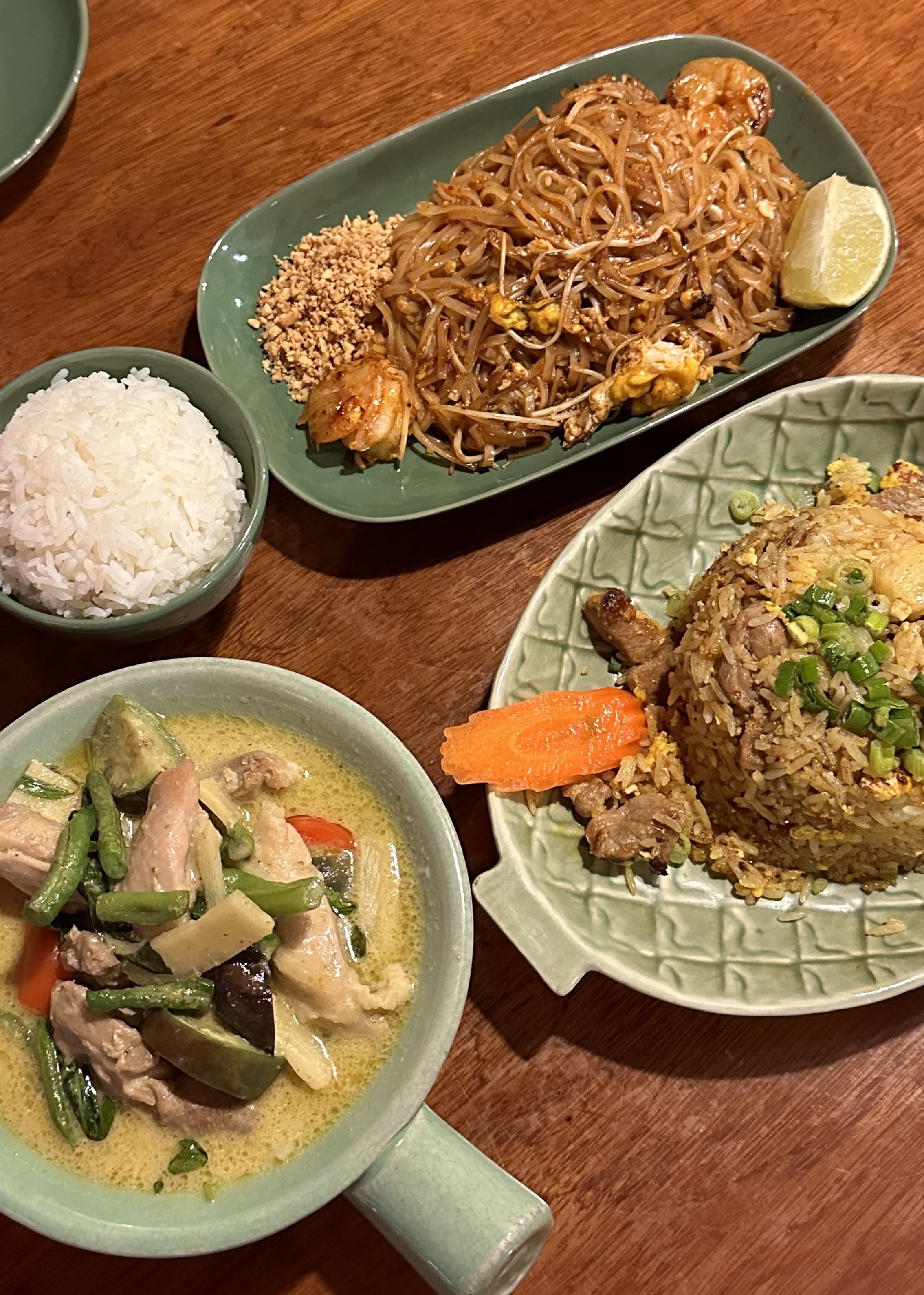 스프링롤, 팟타이, 그린커리, 파인애플볶음밥 시켰는데 다 평타 이상은 됐지만 제 입에 그렇게 맛있진 않았어요.
