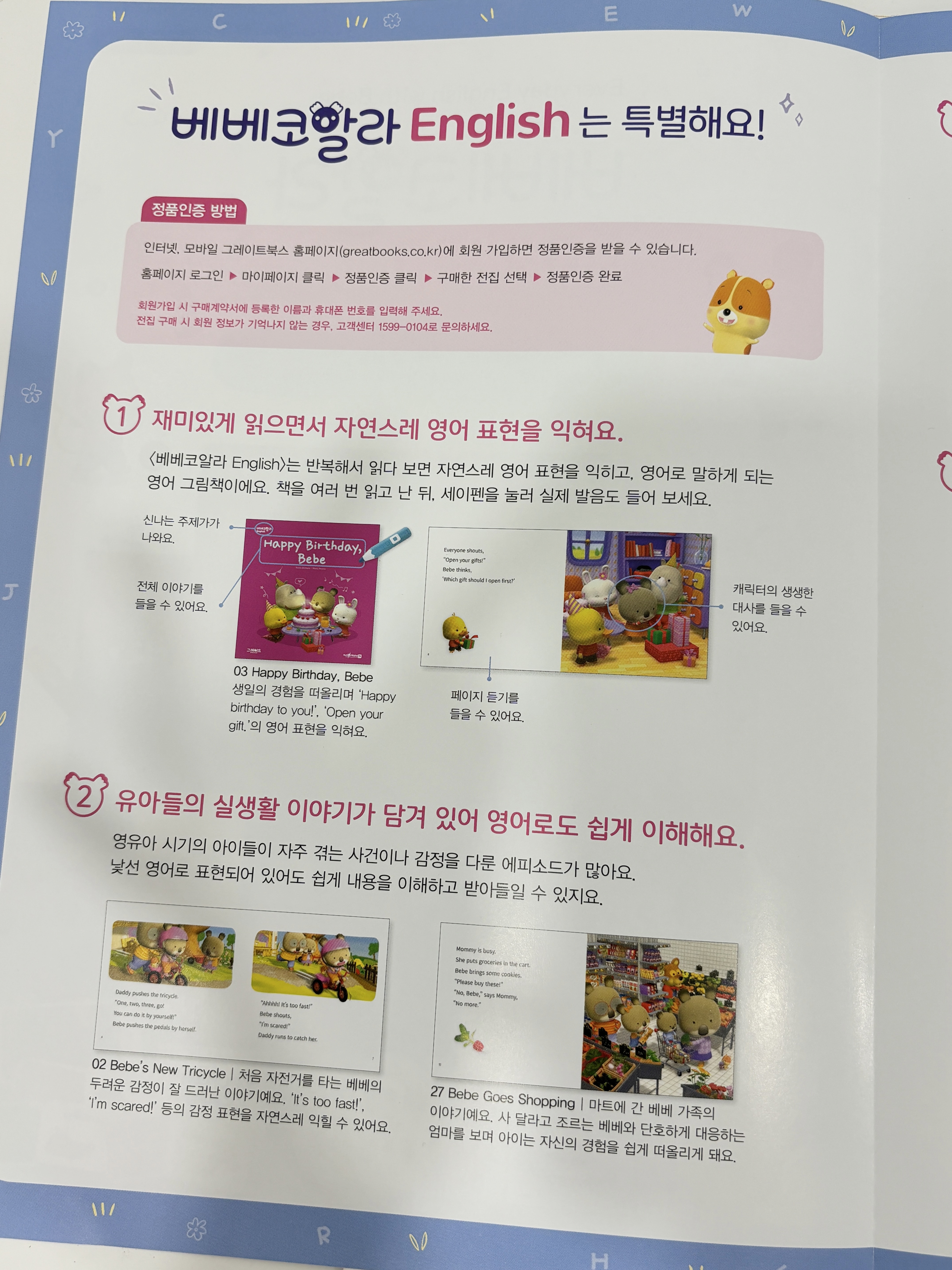 베베코알라 영어버전은 기존 한글판 42권에서 가장 인기 있는 30권을 선정하여 영어판으로 만들어졌다고 해요.