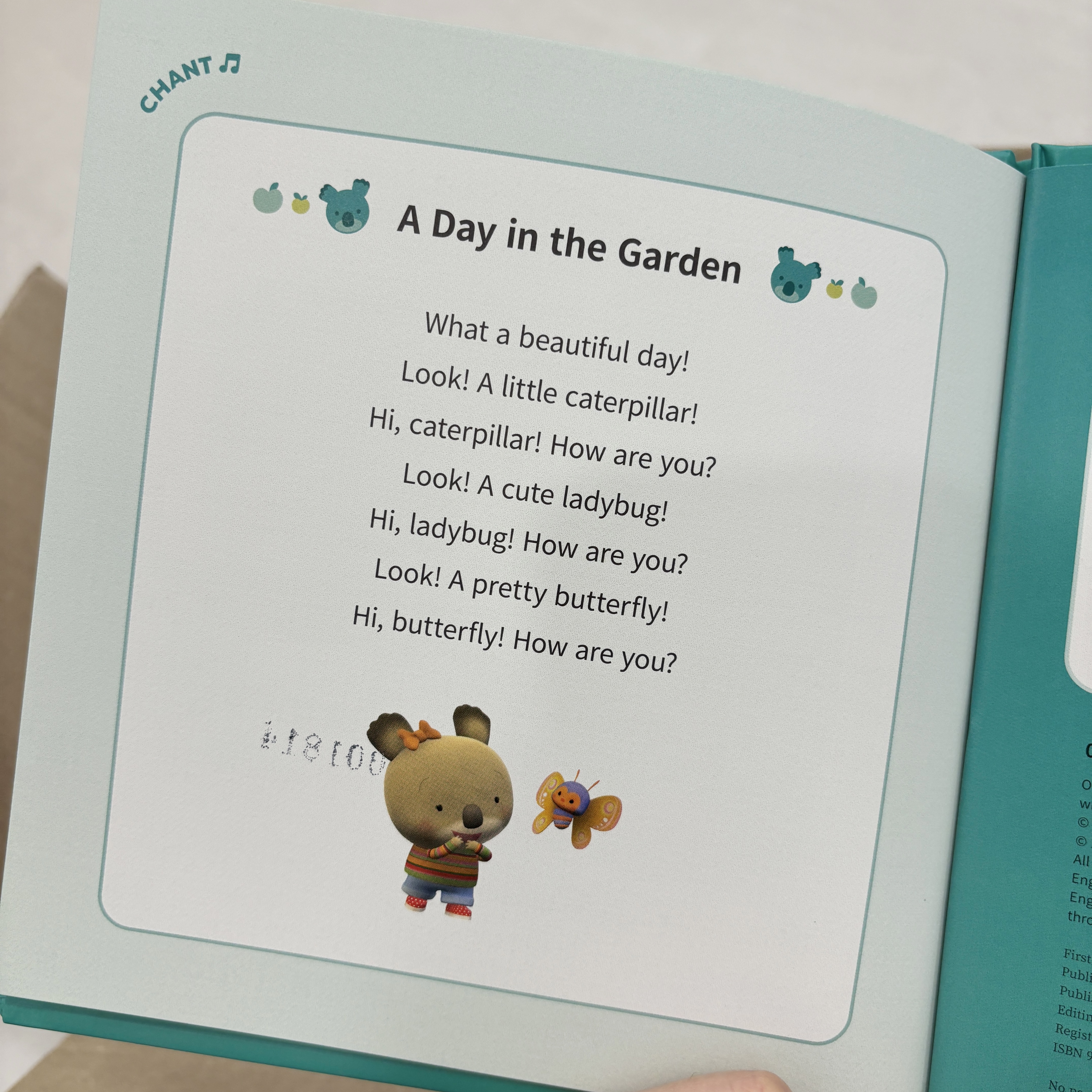 베베코알라 영어 버전은 한글 버전과 동일하게 그림 + 텍스트가 구성되어 있는데, 한가지 차이점은 제일 마지막 페이지에 챈트 부분이 있다는 것!
