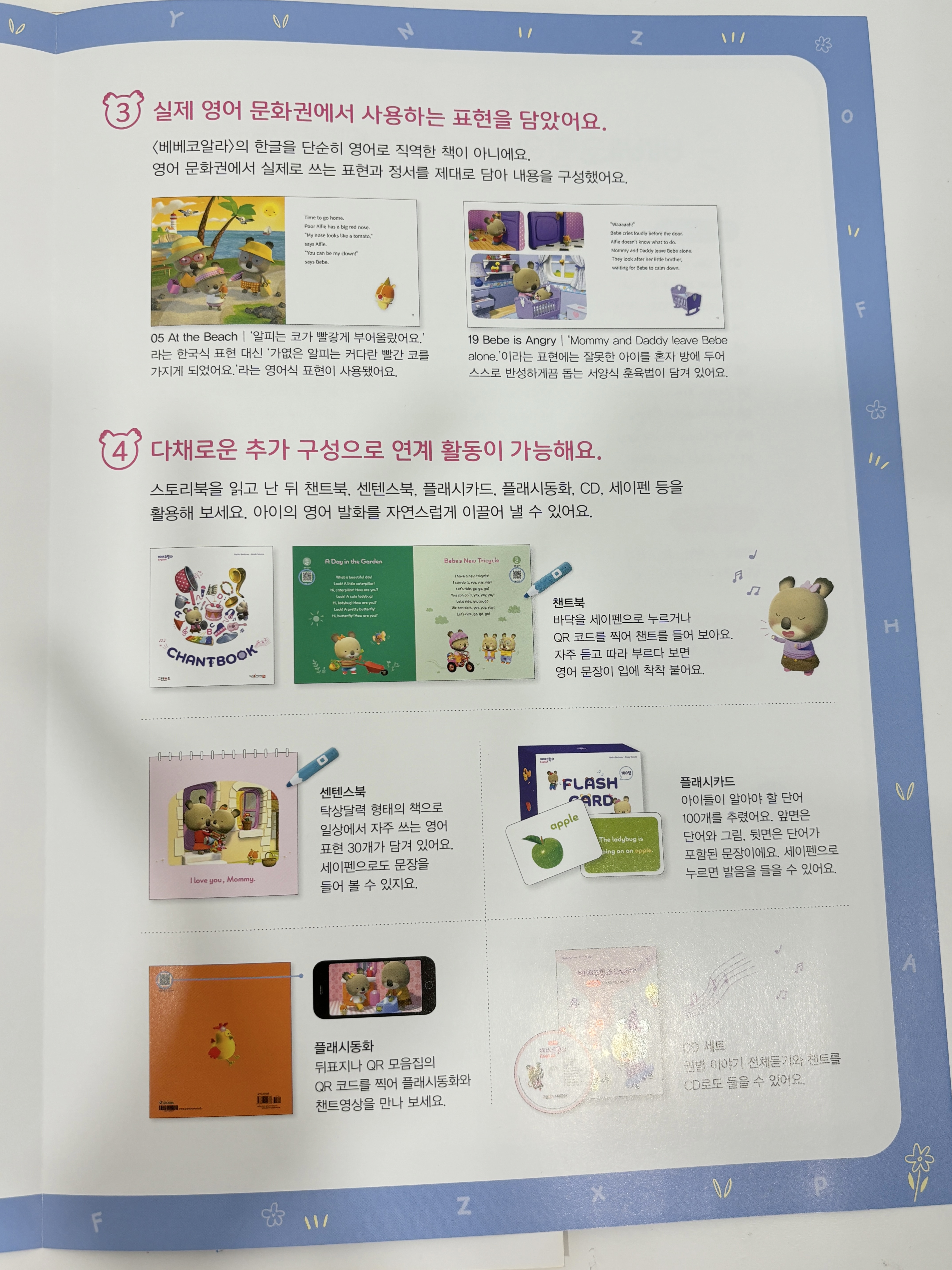 - 챈트북, 센텐스북, 플래시카드, 플래시동화, CD 등 다양한 구성으로 연계 활동이 가능