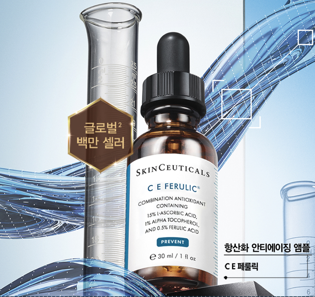 순수비타민C 제품을 사용했을 때 피부 자극감이 심하지 않고 괜찮으신 분들은 15~20% 정도 함량에서 비타민C 효과가 가장 좋다는 연구 결과가 있기 때문에 15~20% 정도 함량된 순수비타민C 화장품을 추천드려요. 비타민C 앰플을 찾으실 때 또 중요한 것이 비타민E와 페룰릭애씨드 성분이 함께 들어간 제품을 찾는 것인데요. 이 세 성분이 함께 함유되어 있을때 안정성 및 효과 측면에서 가장 좋다고 해요. 순수비타민C와 E, 페룰릭애씨드 이 세 성분이 모두 포함된 제품으로는 스킨수티컬즈의 CE페룰릭이라는 제품이 가장 유명한데, 30ml에 가격이 244,000원이라 쉽게 구매해서 사용해보기는 힘든 제품이긴해요. 혁신개념의 15% 순수비타민CE페룰릭애씨드 세럼(15ml, 18,000원)이나 닥터디퍼런트의 CEQ 안티옥시던트 세럼(15ml, 42,000원)도 순수비타민C 15%가 함유되어 있고, 비타민E와 페룰릭애씨드 성분이 함께 함유되어 있기 때문에 스킨수티컬즈의 대체품으로 사용 가능할 것 같아요. 두 제품 모두 pH 3.5이하로 순수비타민C 흡수에 효율적인 농도인 점도 참고해주세요!