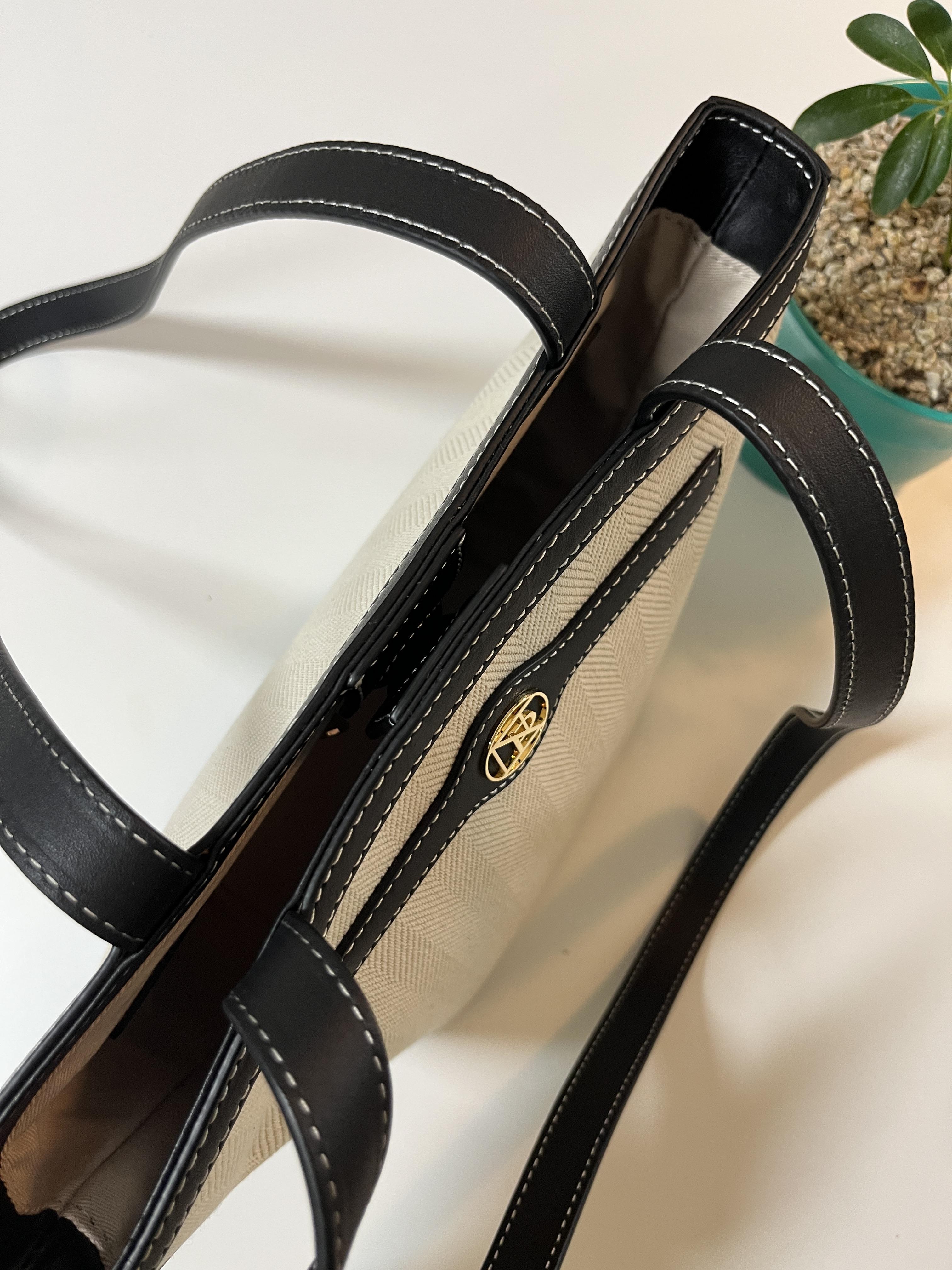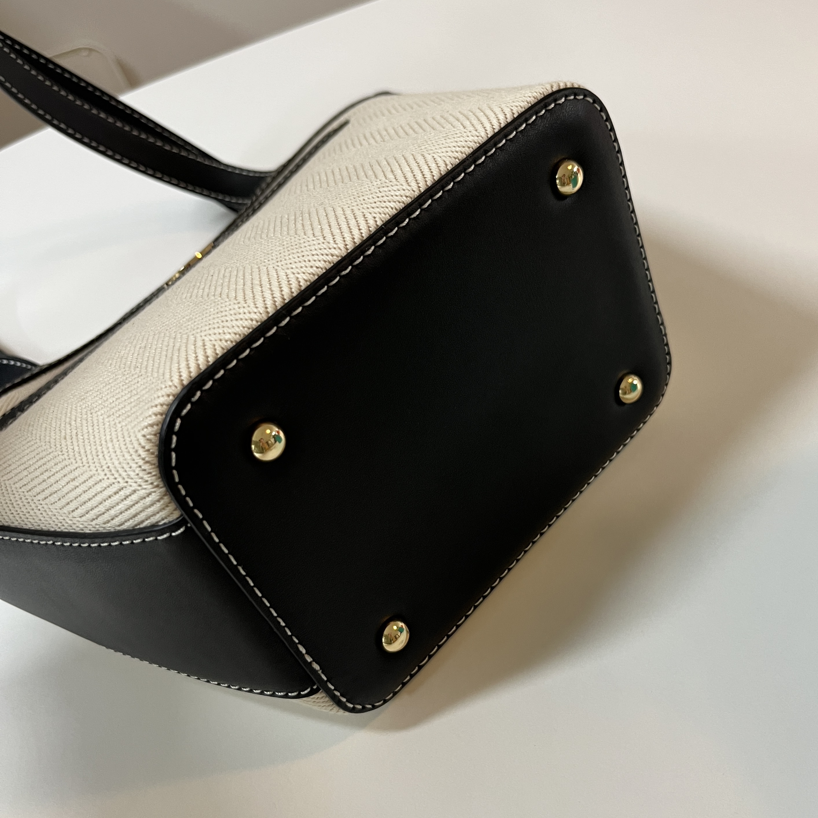 전체적으로는 헤링본 원단으로 되어있고, 포인트 부분은 소가죽으로 되어있어요!