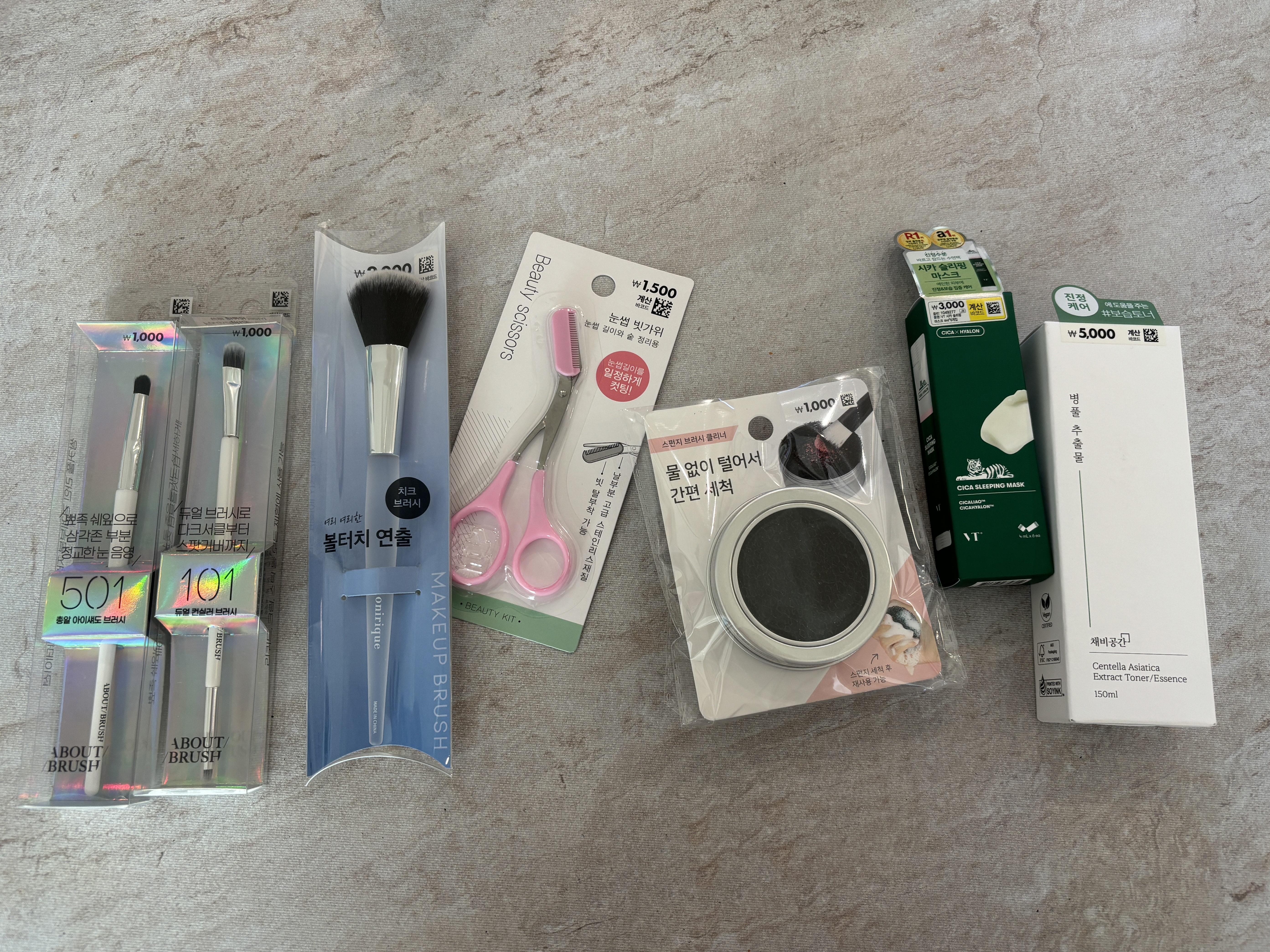 제가 구입한건 브러쉬 3종, 눈썹 빗가위, 브러쉬 클리너, VT 시카 슬리핑 마스크, 채비공간 병풀 추출물이에요.