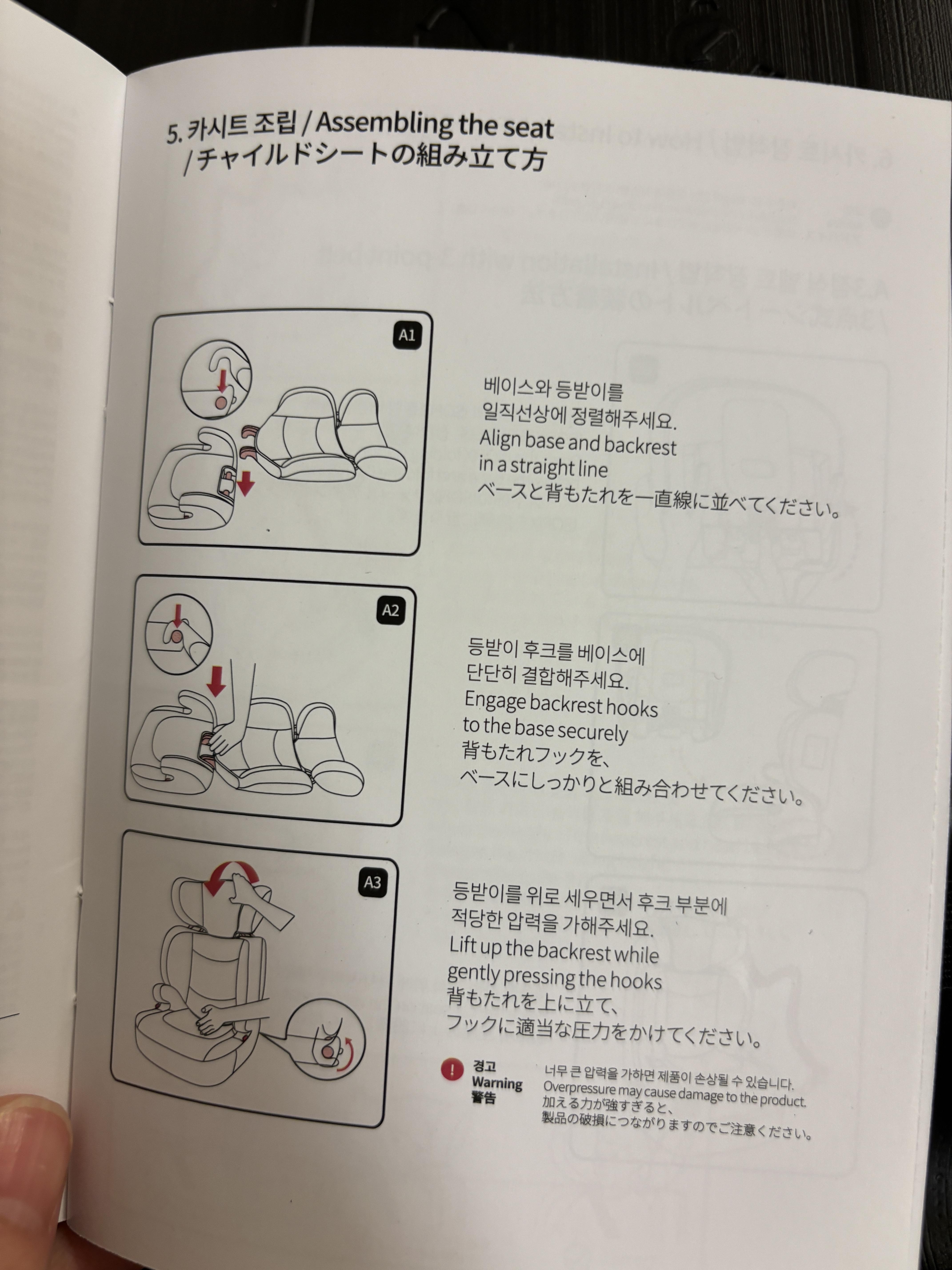 등받이와 부스터 시트를 결합하는 방법도 매뉴얼보면서 하니 엄청 쉽더라구요 🙂