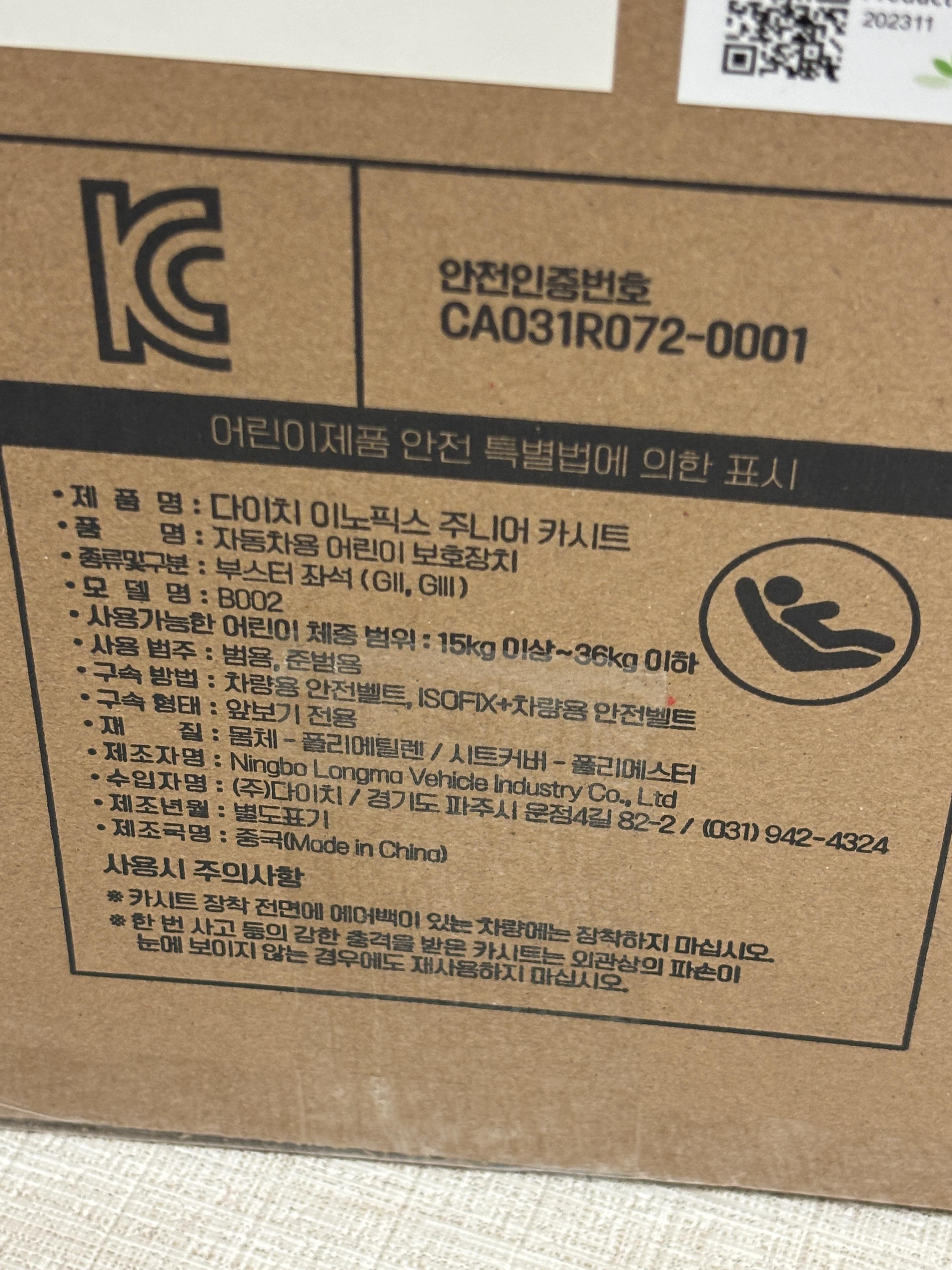 마이리틀타이거 공구로 구입한 다이치 이노픽스 주니어 카시트!