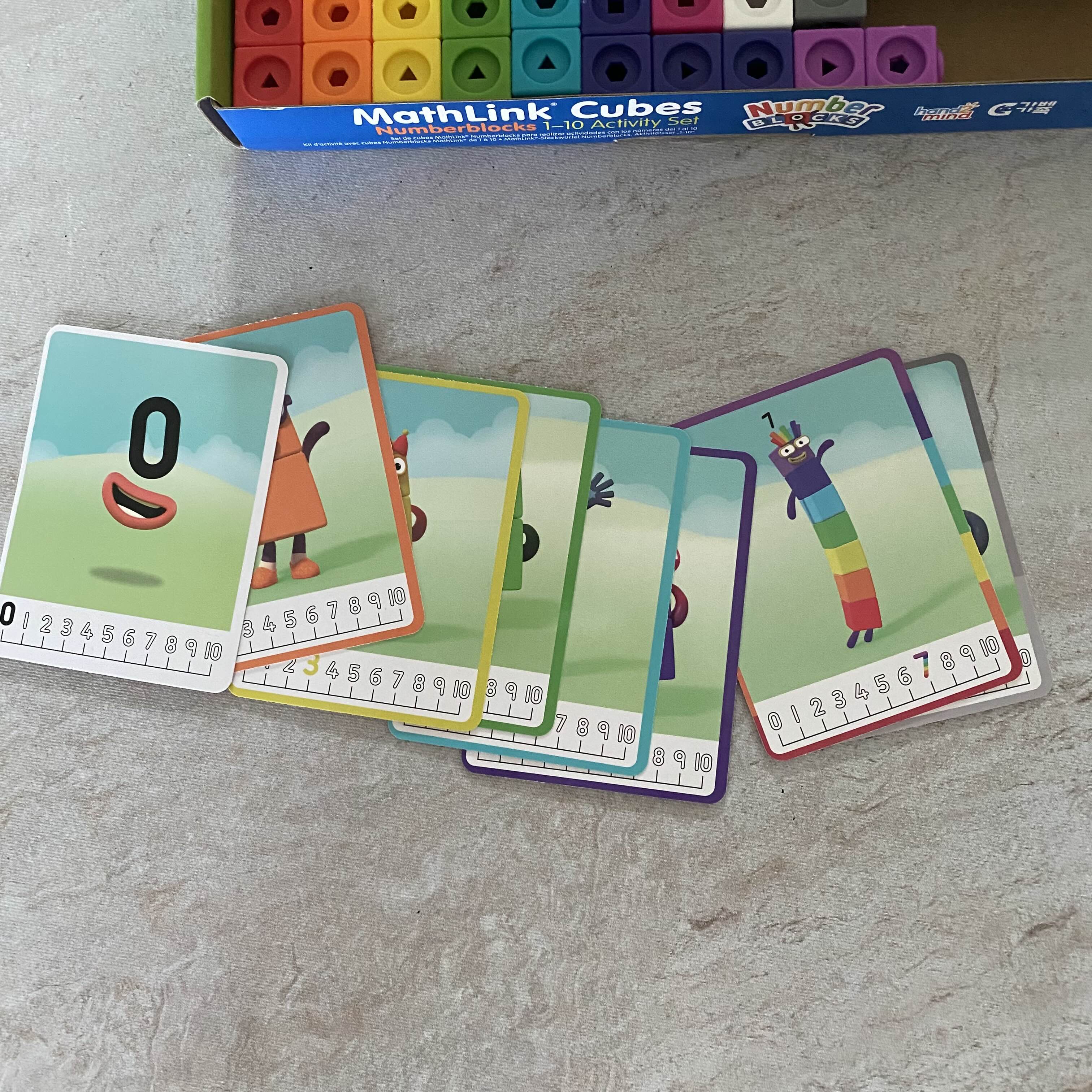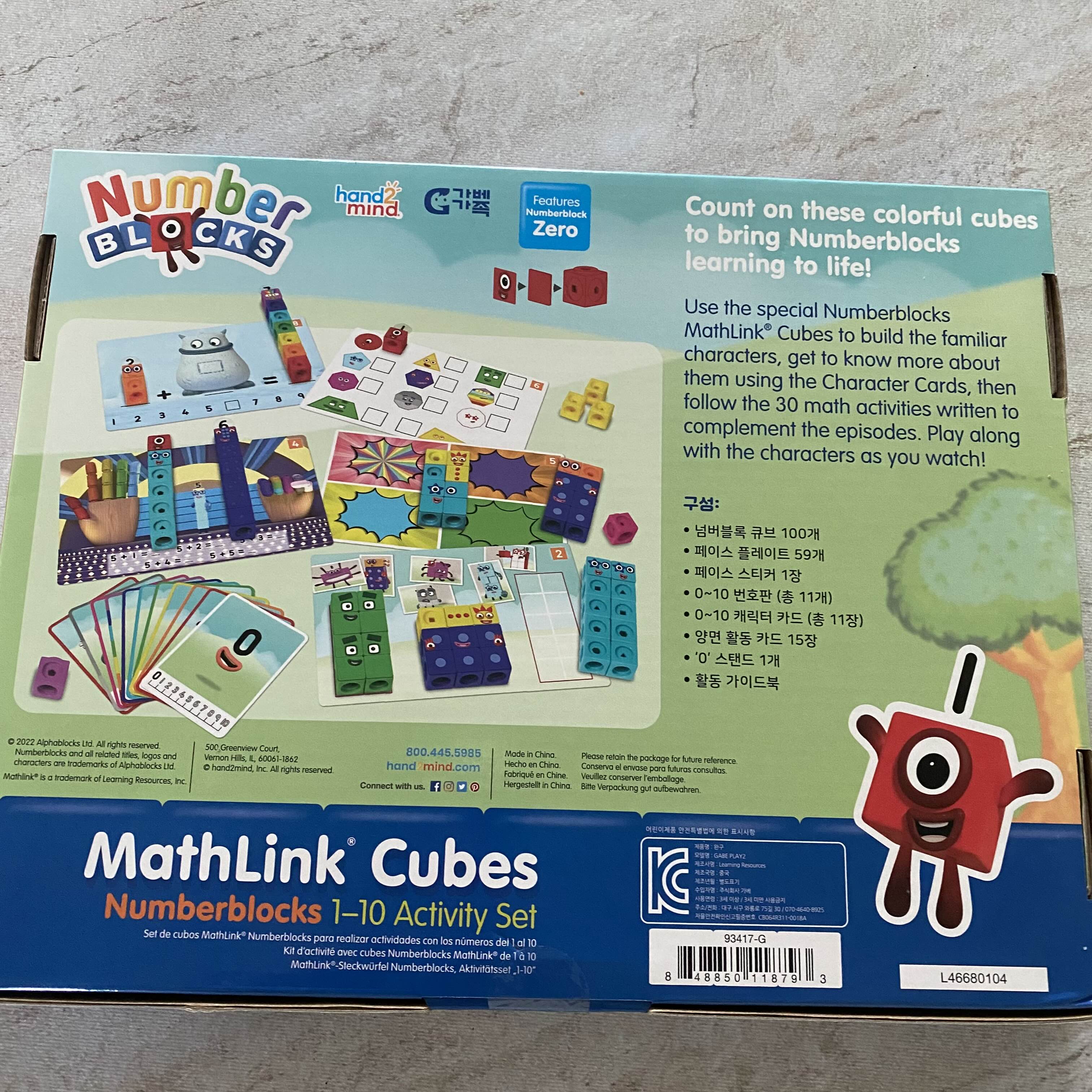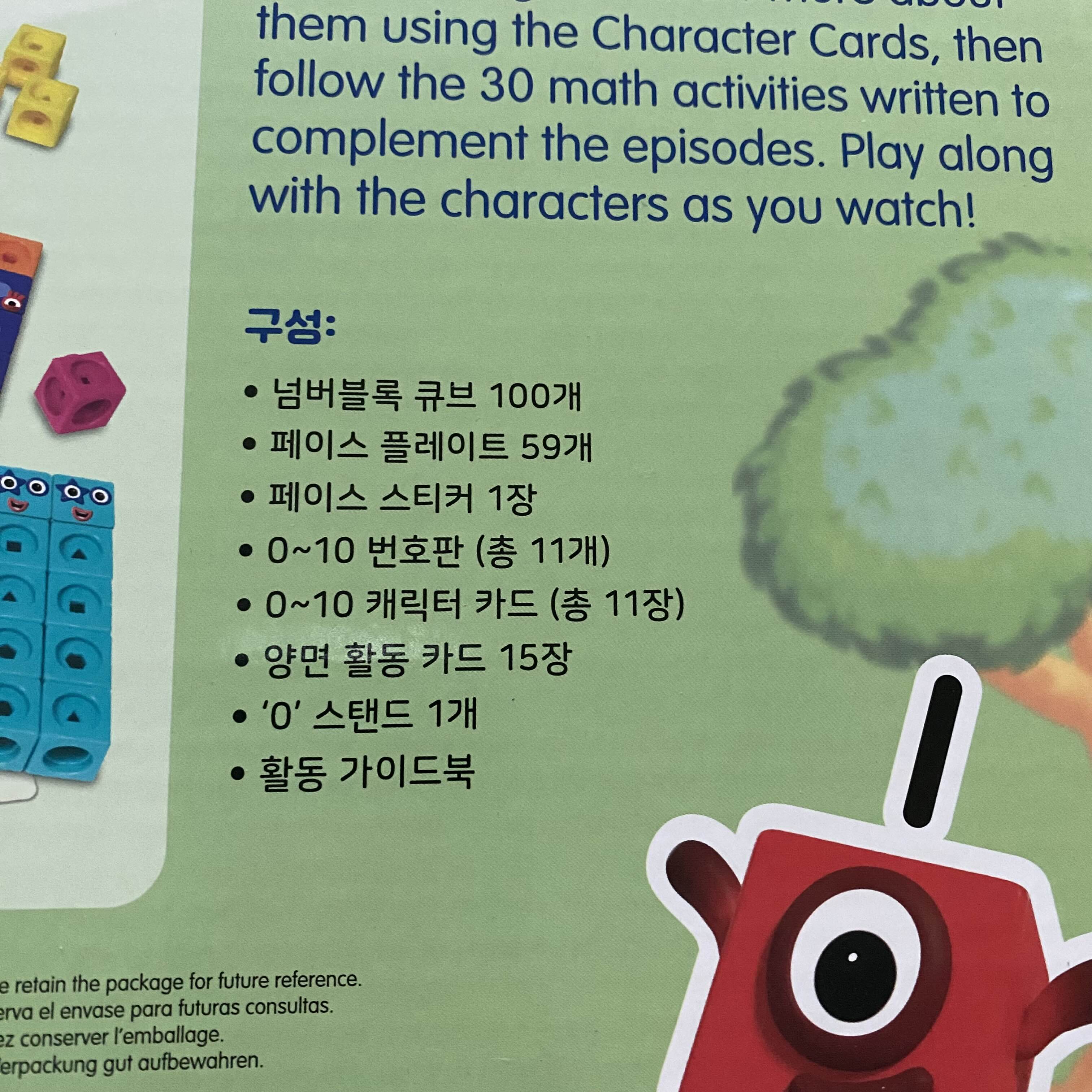 넘버블록 큐브 100개와 다양한 카드들이 있어요.