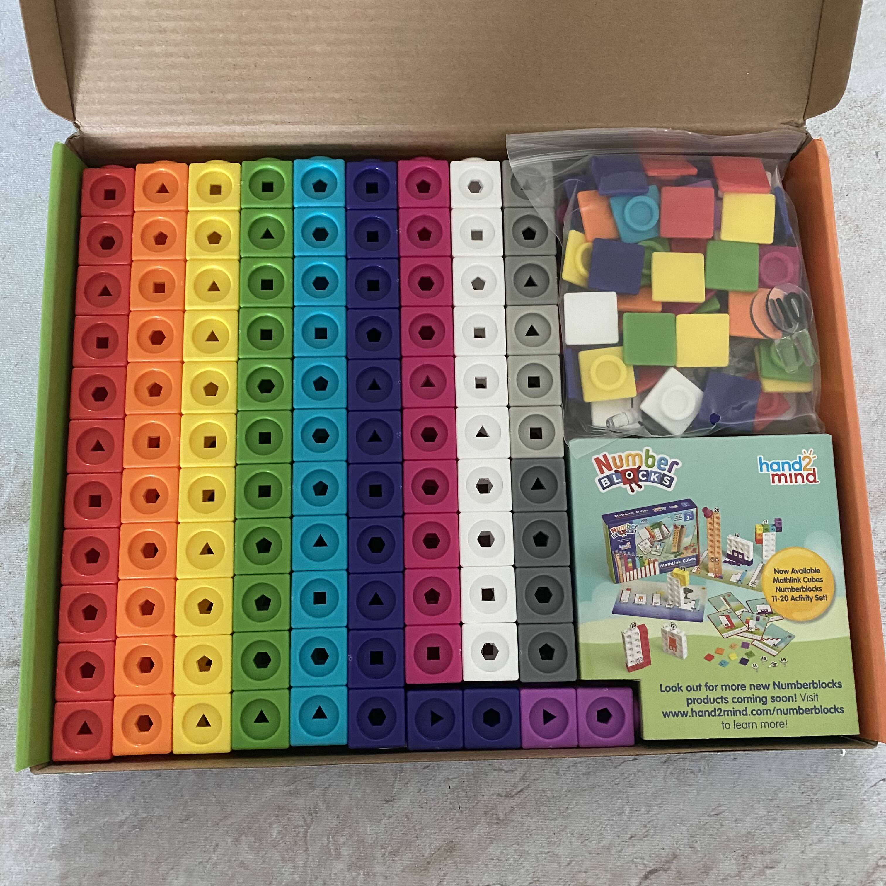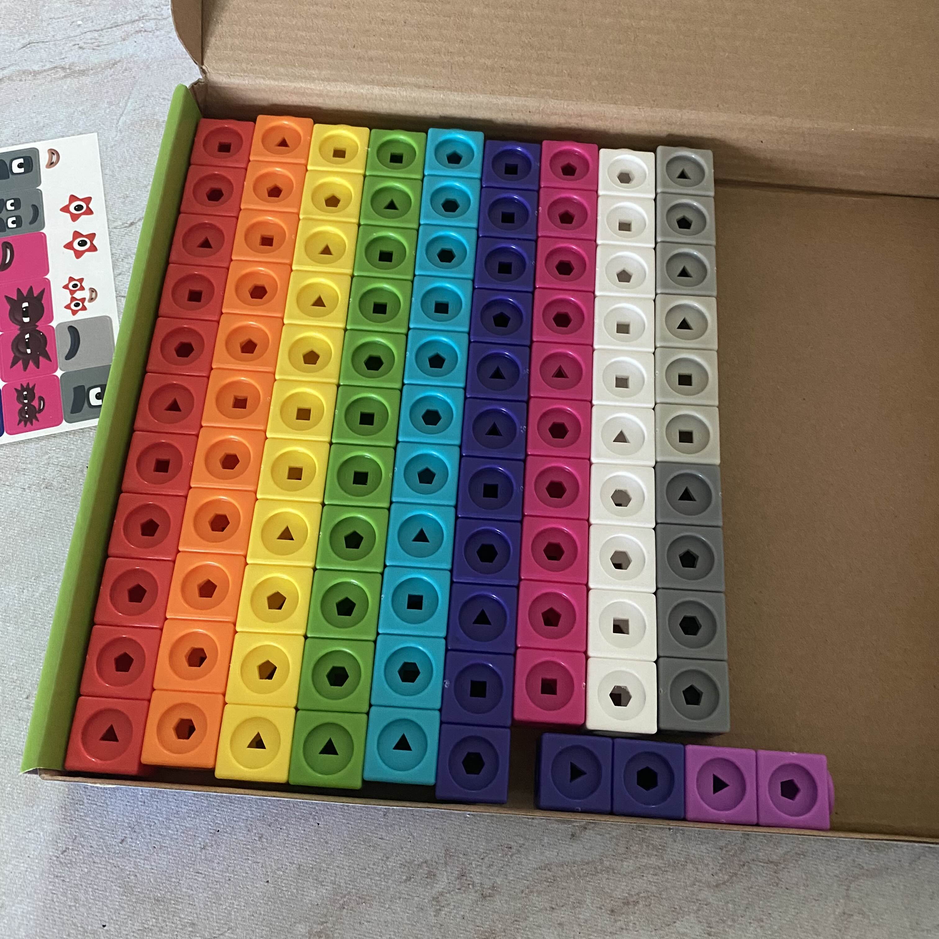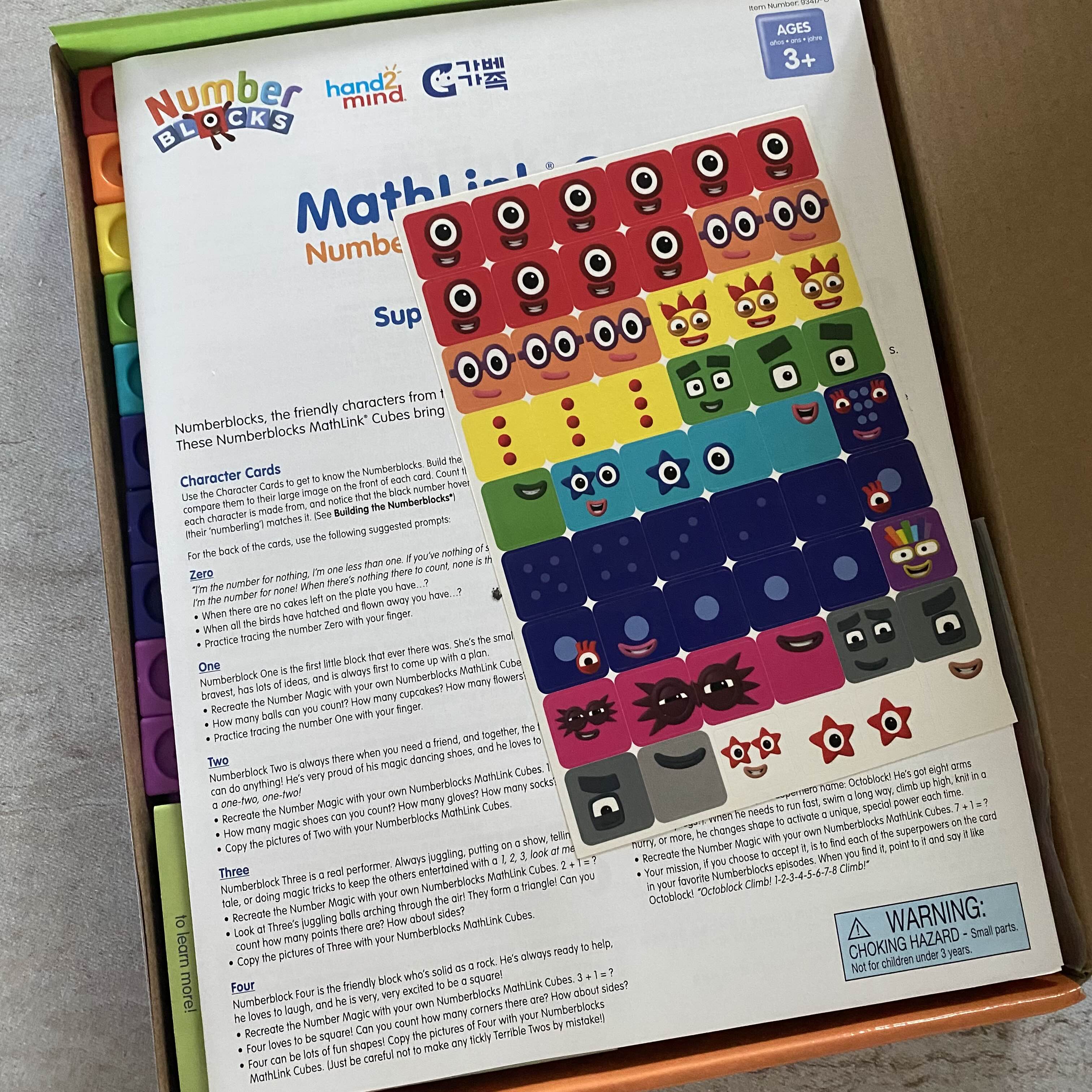 넘버블록 큐브 100개와 다양한 카드들이 있어요.