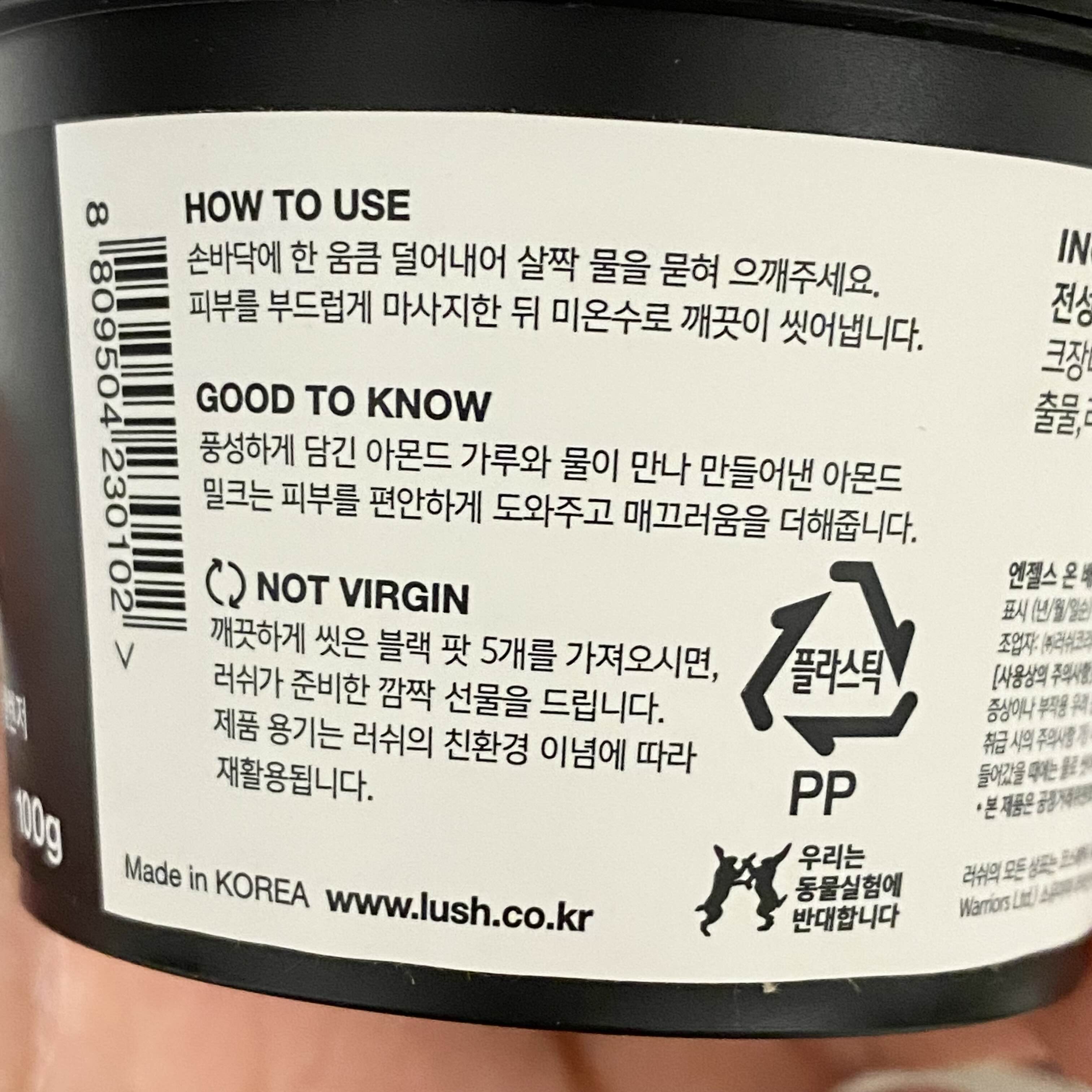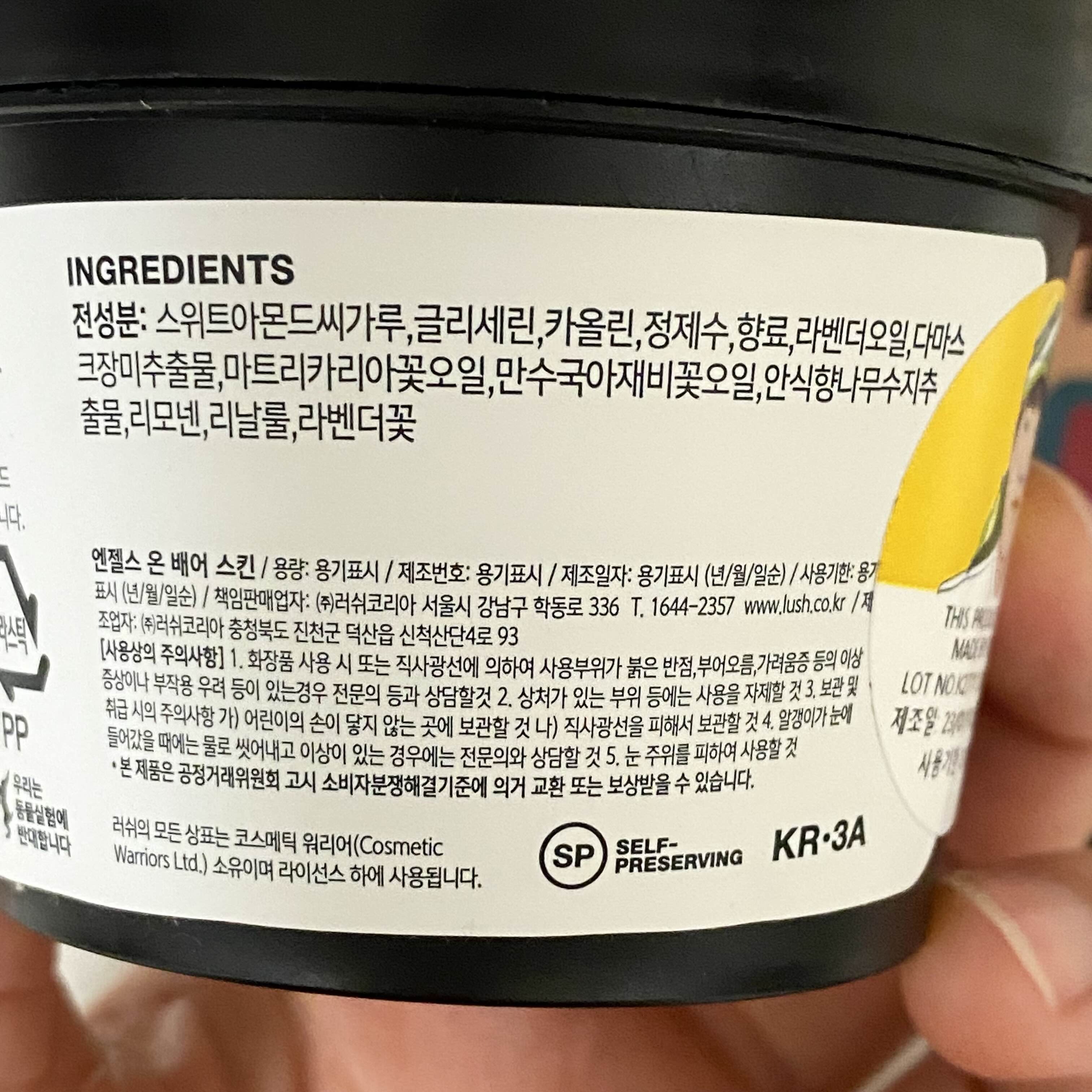 러쉬 마스크 오브 매그너민티도 한번 쓴 뒤로 몇번이나 재구매하면서 애용했던 제품인데, 엔젤스 온 배어스킨도 내가 사랑하는 러쉬 제품들 중 하나가 될 것 같은 이 느낌...!