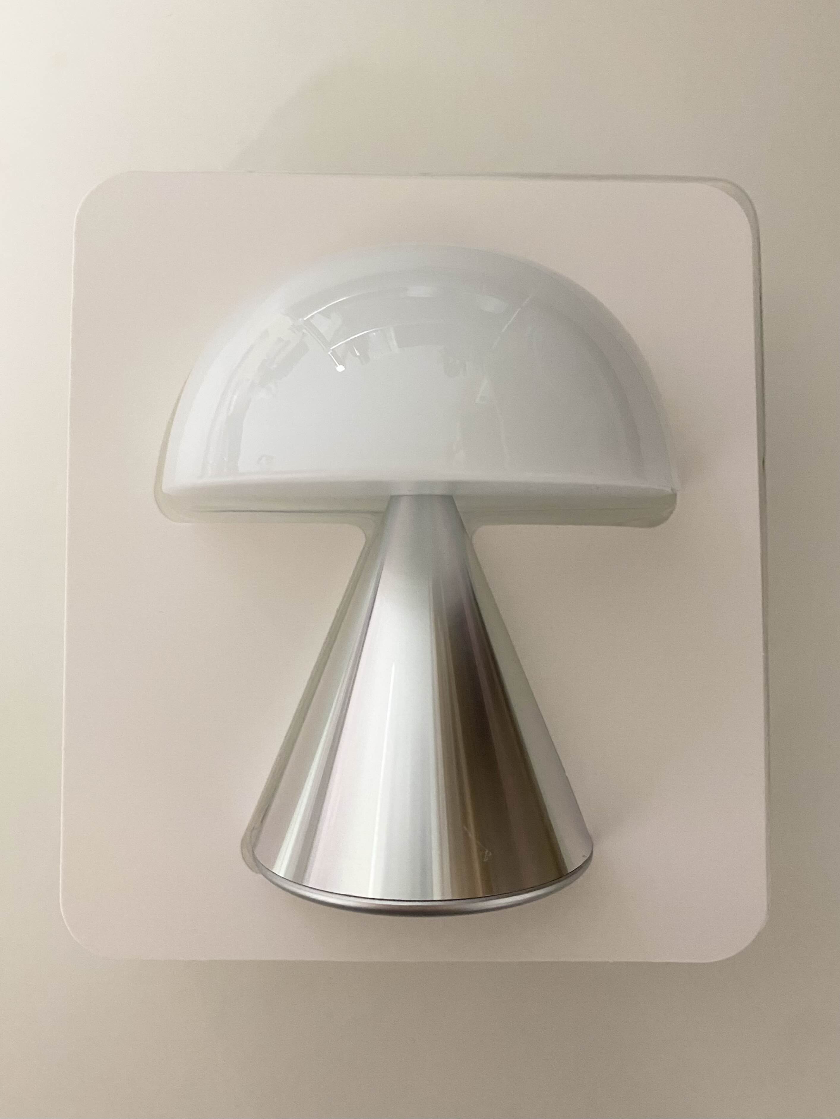 나는 렉슨 미나램프를 침대 옆 서랍장 위에 올려놓았다.