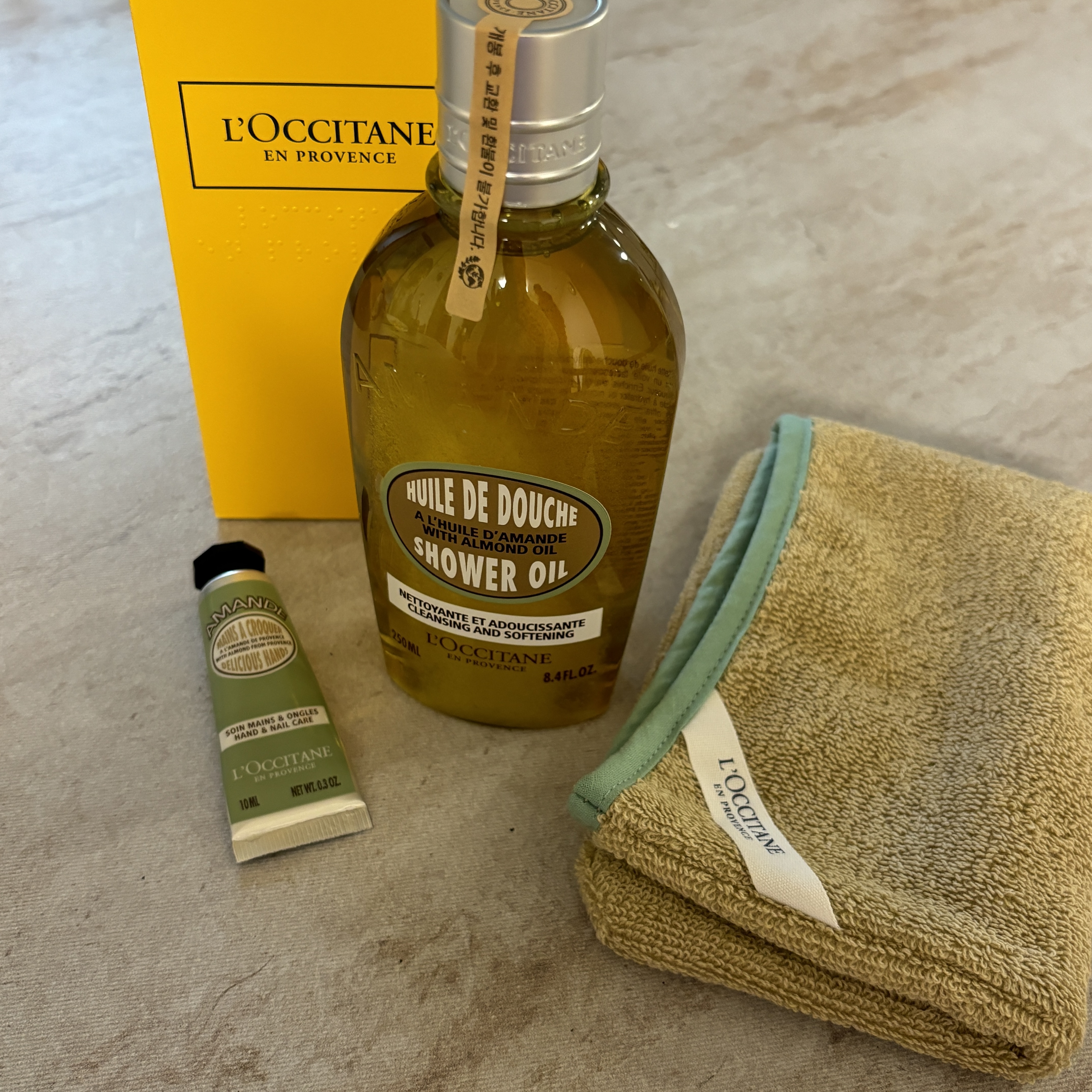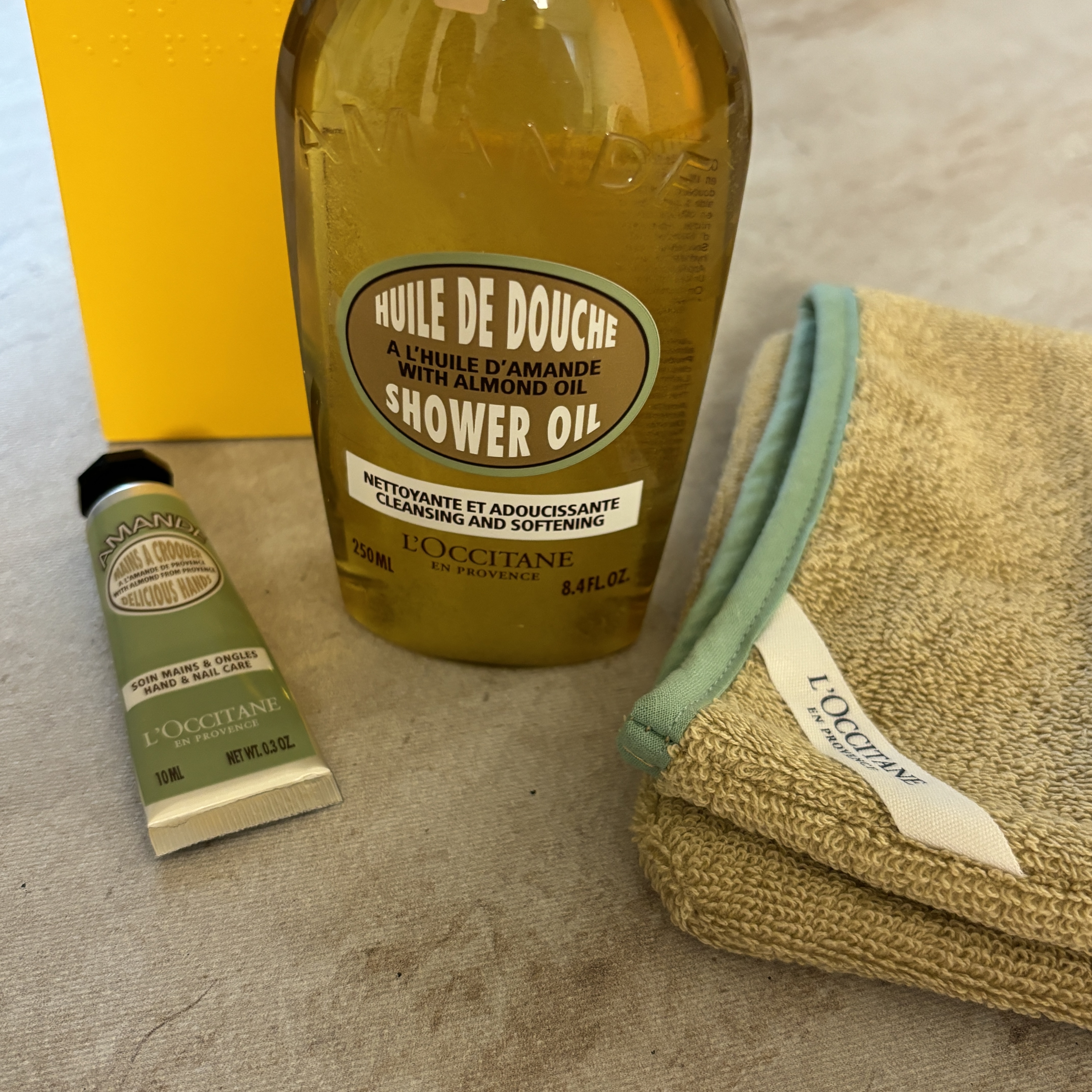록시땅 아몬드 샤워오일에다가 바디글로브와 미니 핸드크림까지, 매우 알찬 구성이라 만족스러웠던 선물이었어요! 만족!!🙂✨