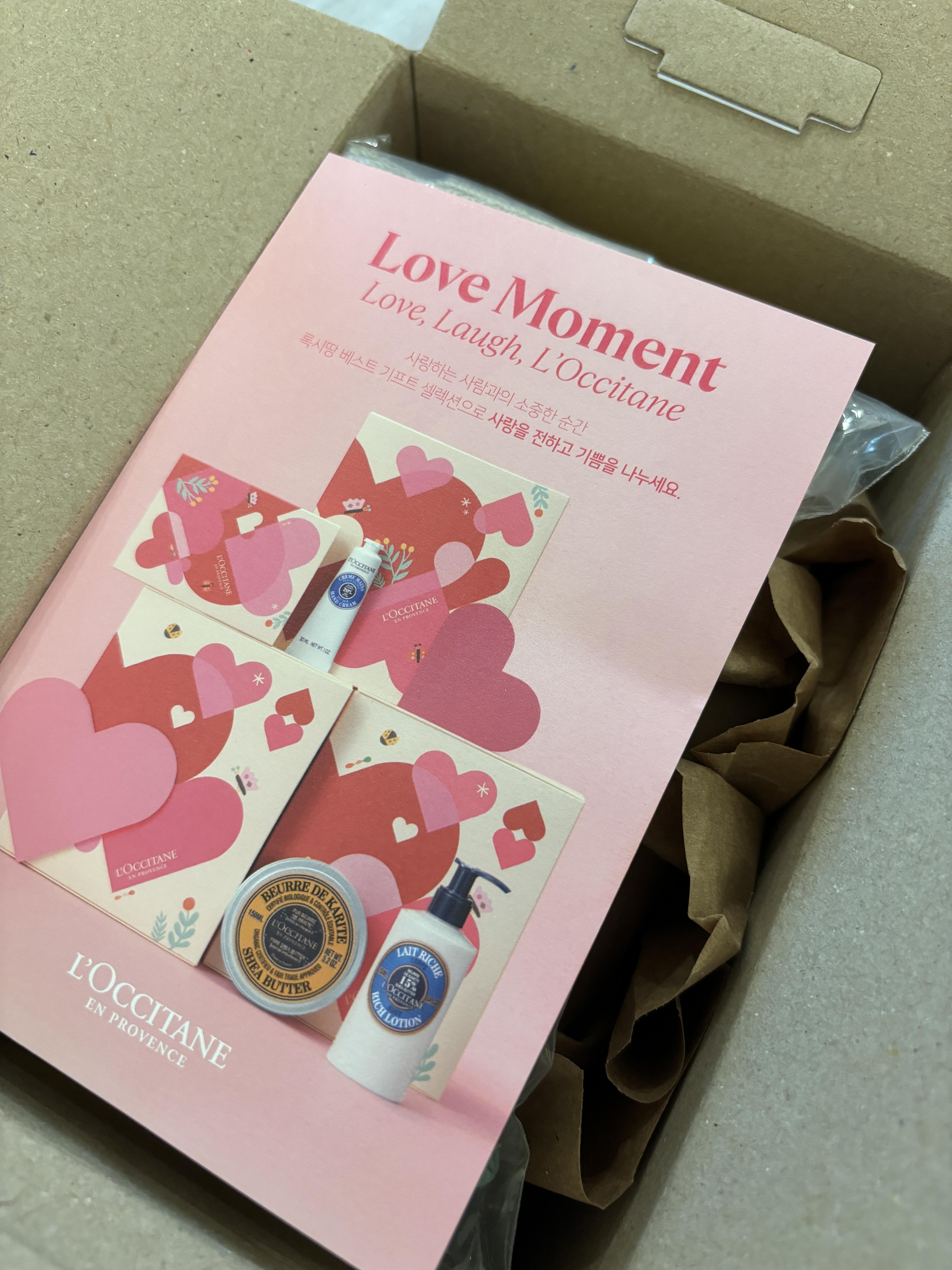 박스를 오픈해보니 바디글로브와 록시땅 패키지가 있네요.