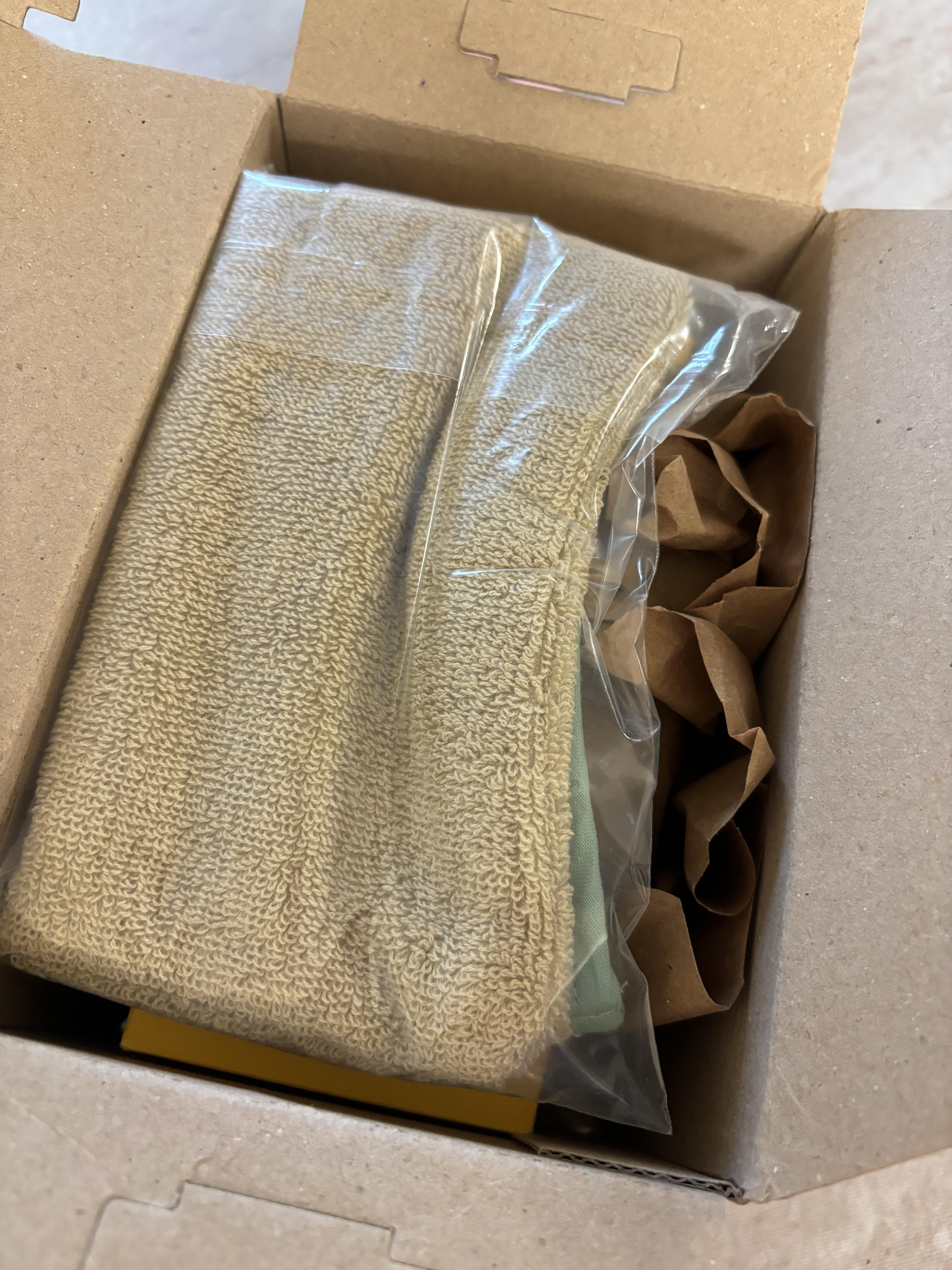 바디글로브는 증정품인데 생각보다 퀄리티가 좋아요. 종이 박스 안에는 샤워오일과 아몬드 핸드크림 10ml짜리가 들어있어요.