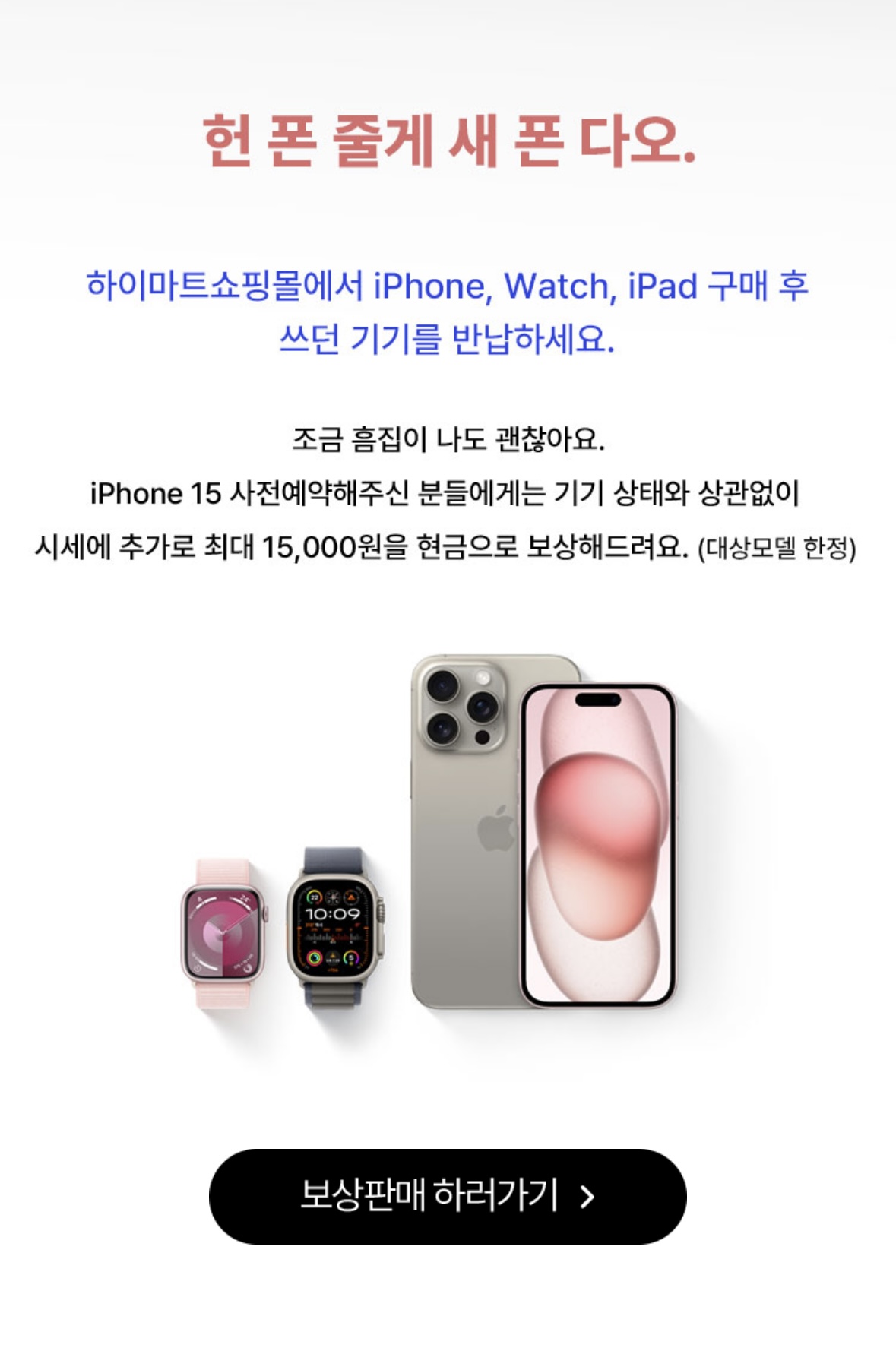 롯데하이마트 쇼핑몰에서 아이폰 보상판매를 진행하면 시세에 추가로 최대 15,000원을 현금으로 보상해주는 혜택을 받을 수 있었어요.