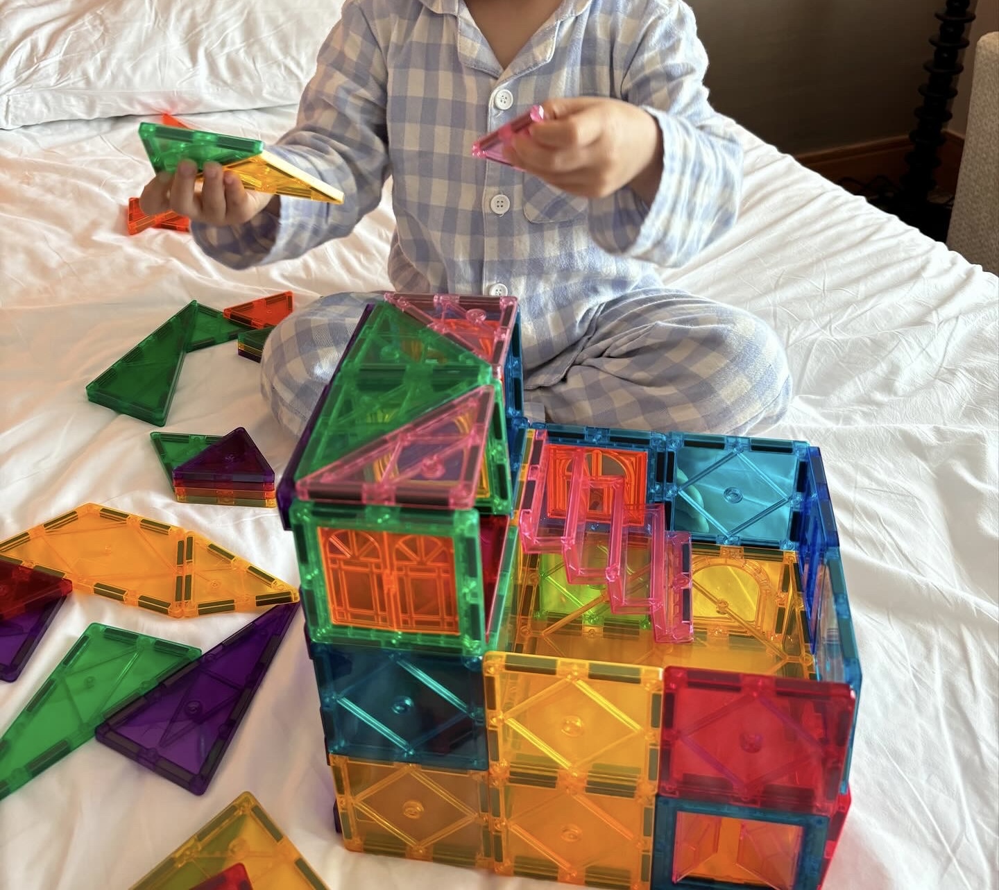 저녁 먹으러 가기 전에도, 다음날 아침에도 잘 가지고 놀았던 마그넷 블록스!