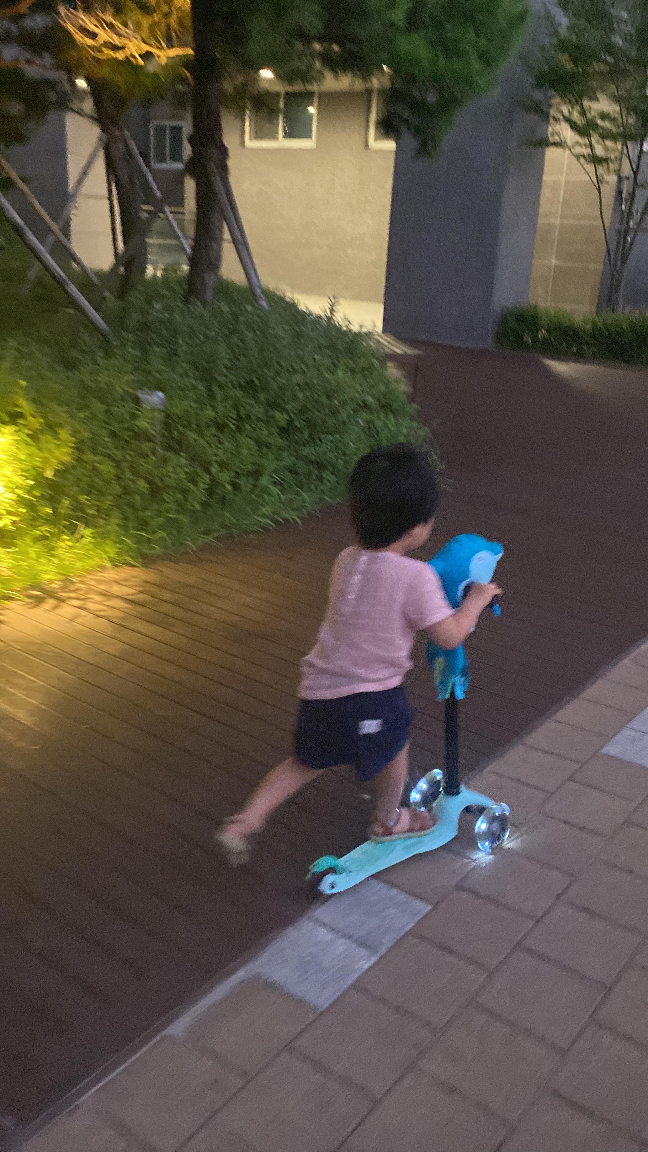 돌고래 장착하고 킥보드 타는걸 더 좋아하게 된 아이 ㅎㅎ