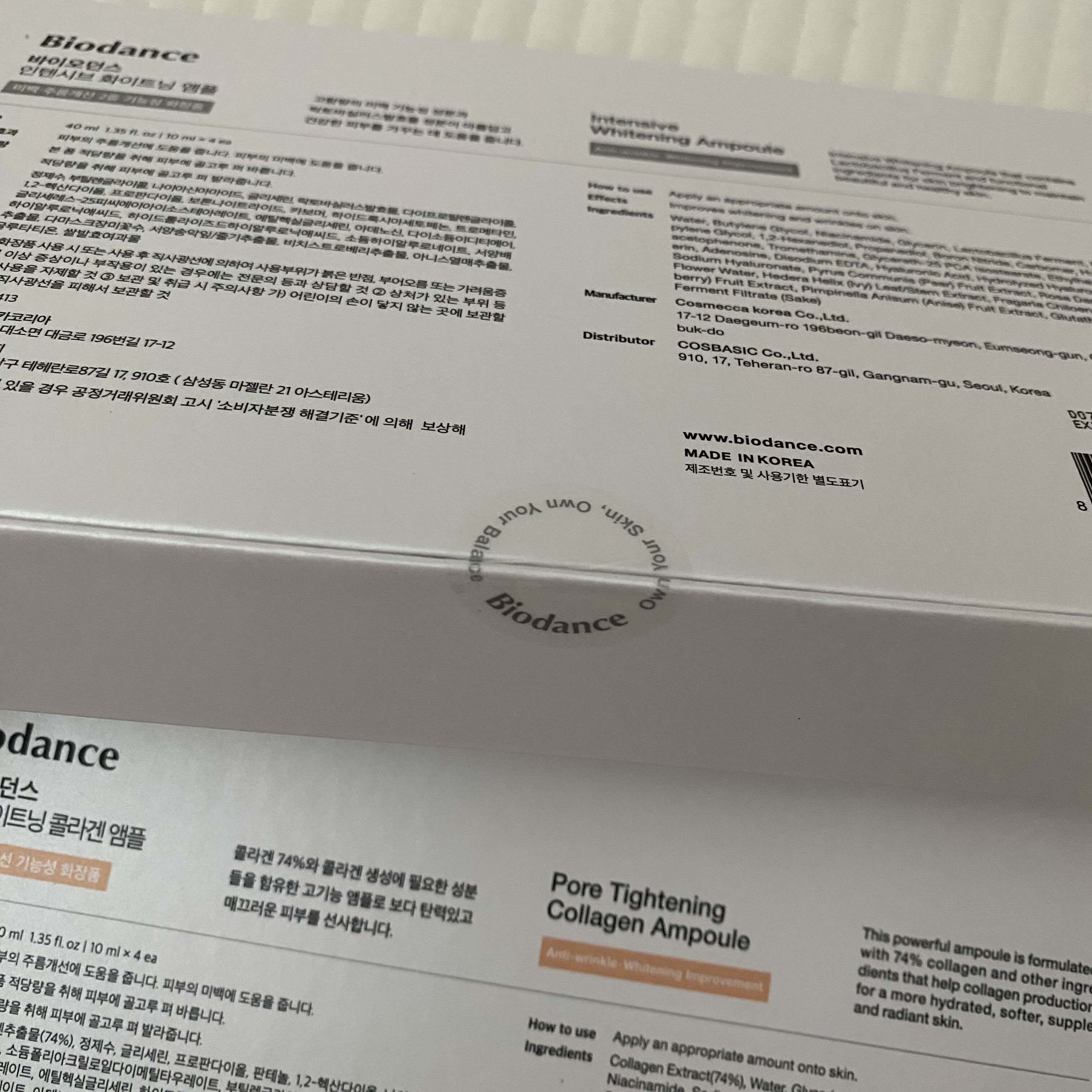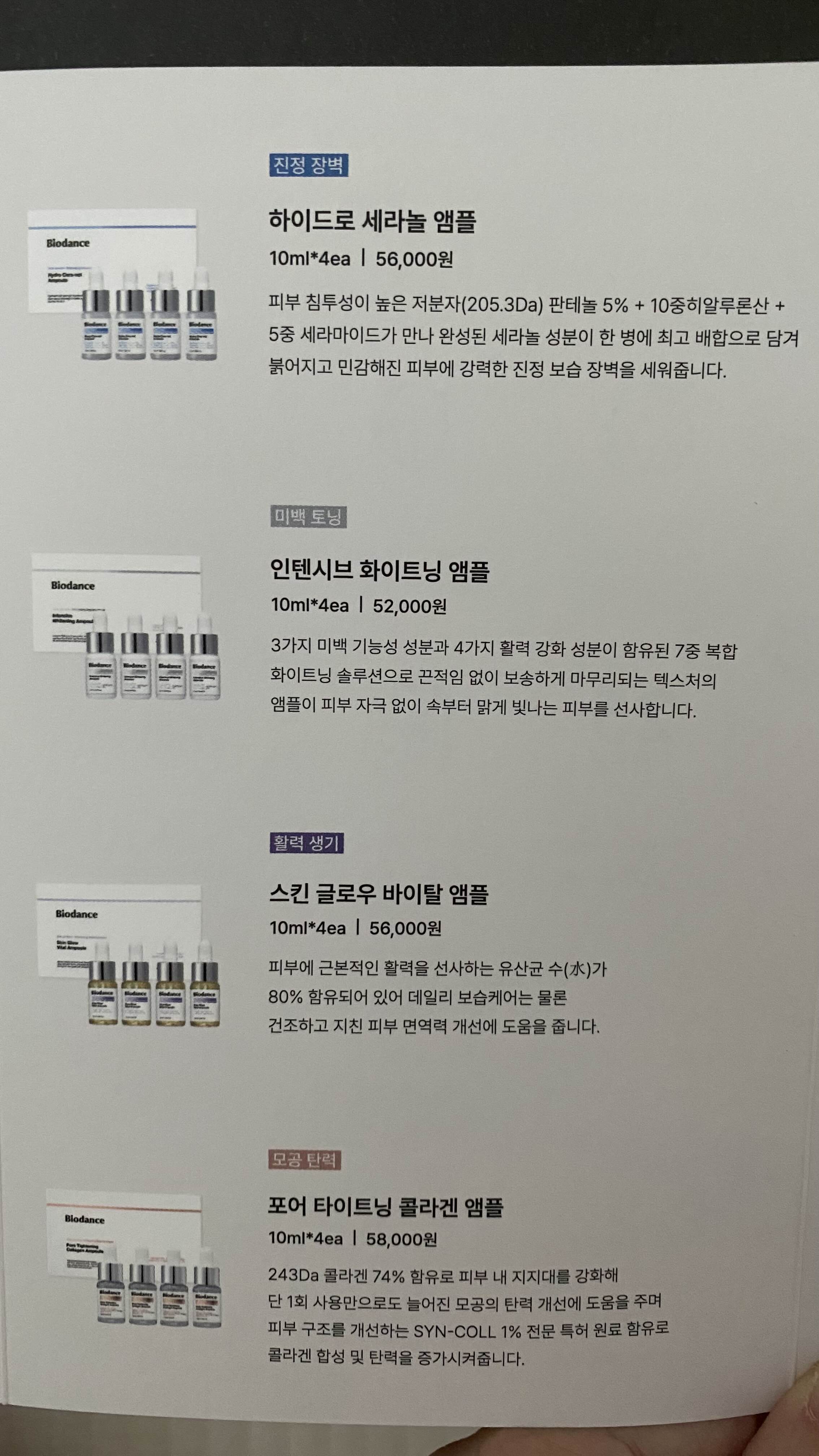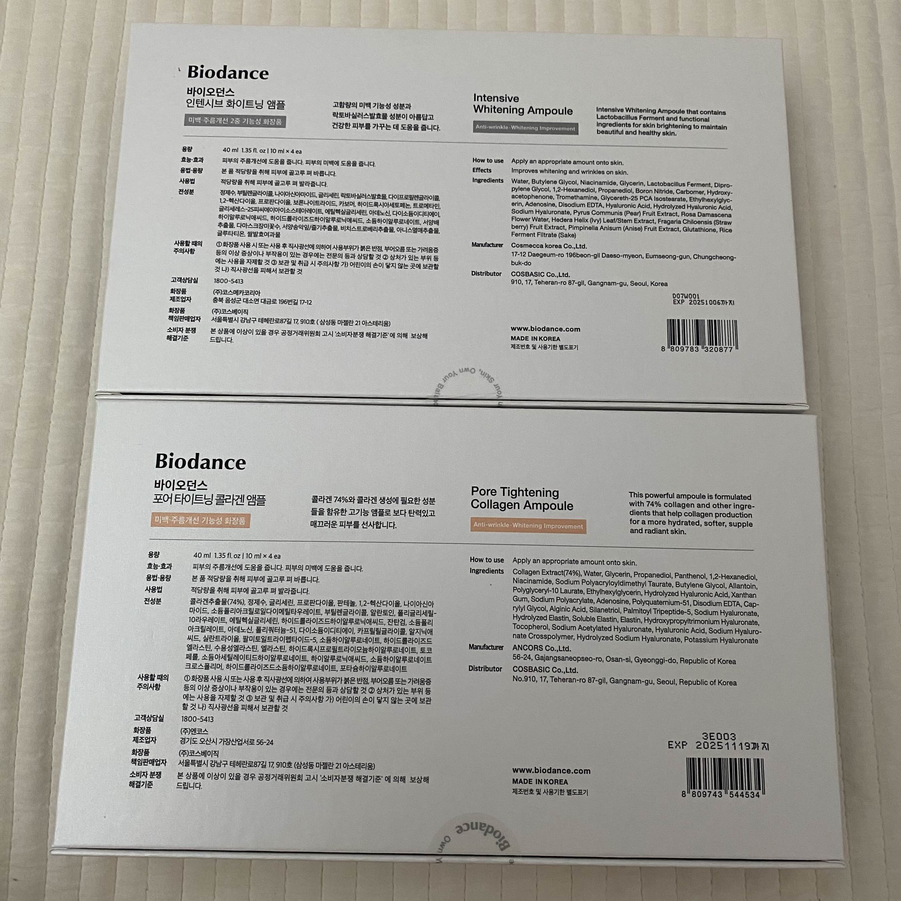 바이오던스 화이트닝 앰플과 콜라겐 앰플 원래 가격은 각 52,000원인데, 58,000원인데요.