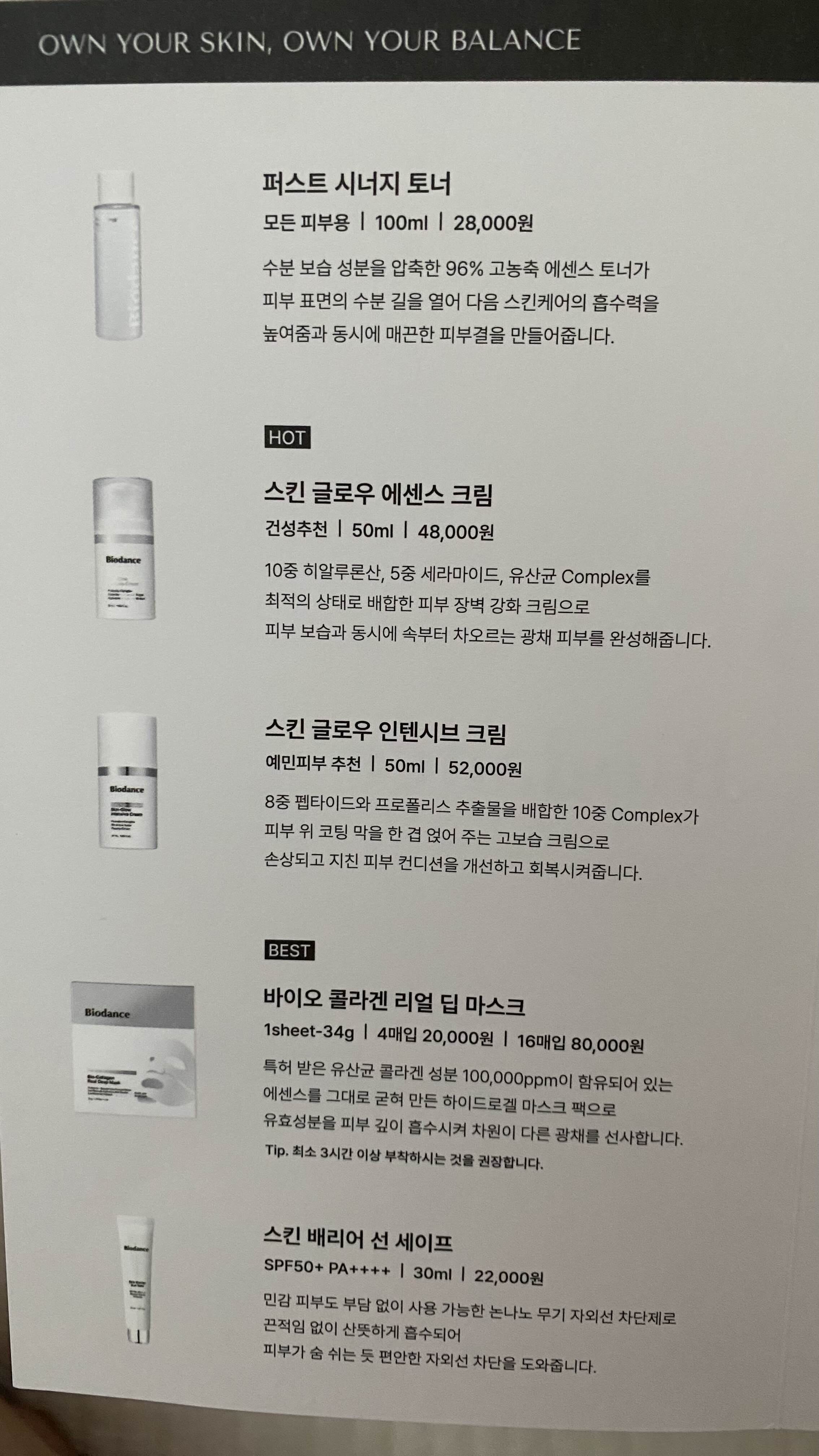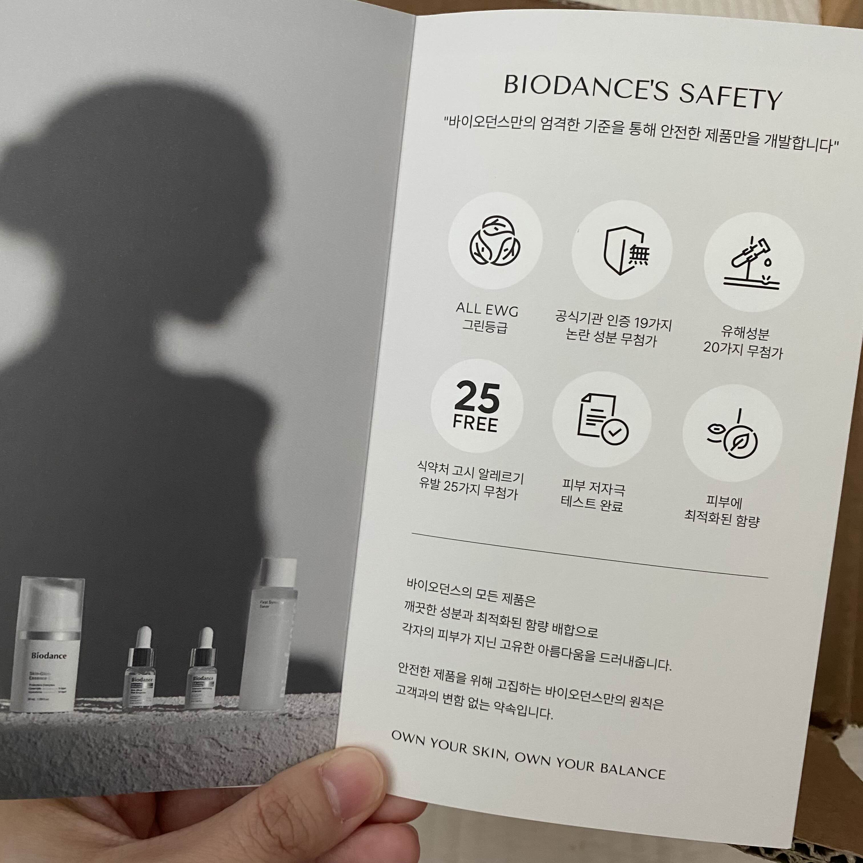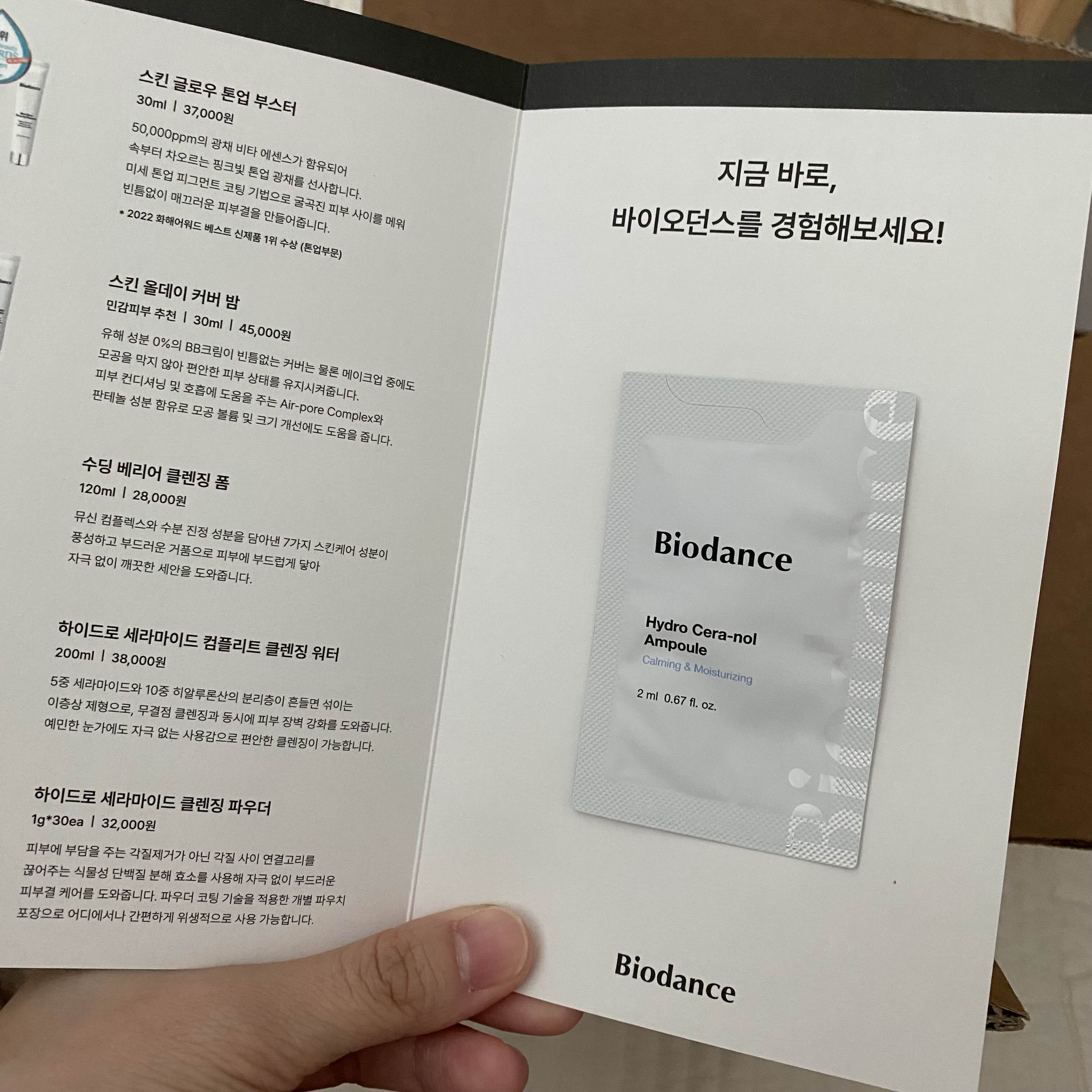 바이오던스 브랜드와 제품에 대한 홍보 리플렛이 함께 있었구요.