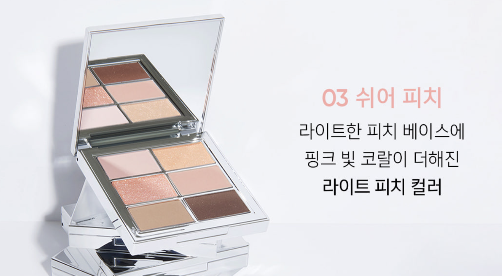 어뮤즈 쉬어피치는 봄라이트 톤이면 무조건 하나 가지고 있어야 하는 찰떡 섀도우 팔레트라고 해요.