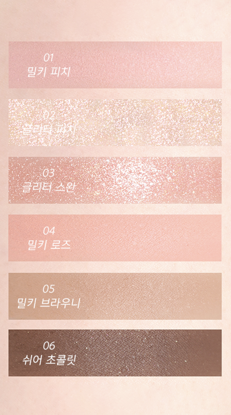 컬러 구성이 다양해보여서 데일리로도 좋고 다른 섀도우 컬러와 섞어 사용해도 이질감 없을 것 같아요.