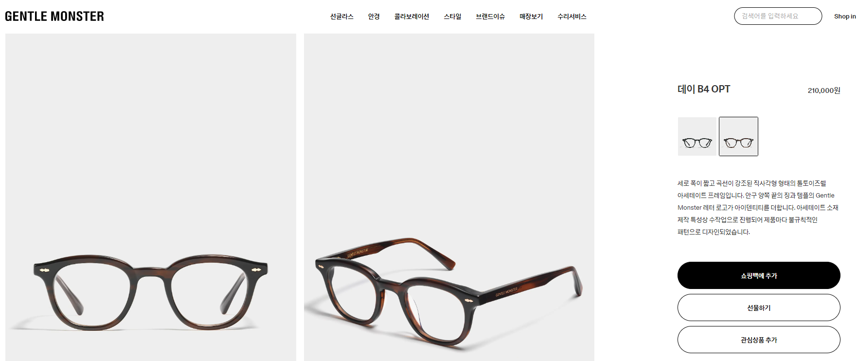 첫번째 위시리스트 제품은 젠틀몬스터 데이 B4 OPT