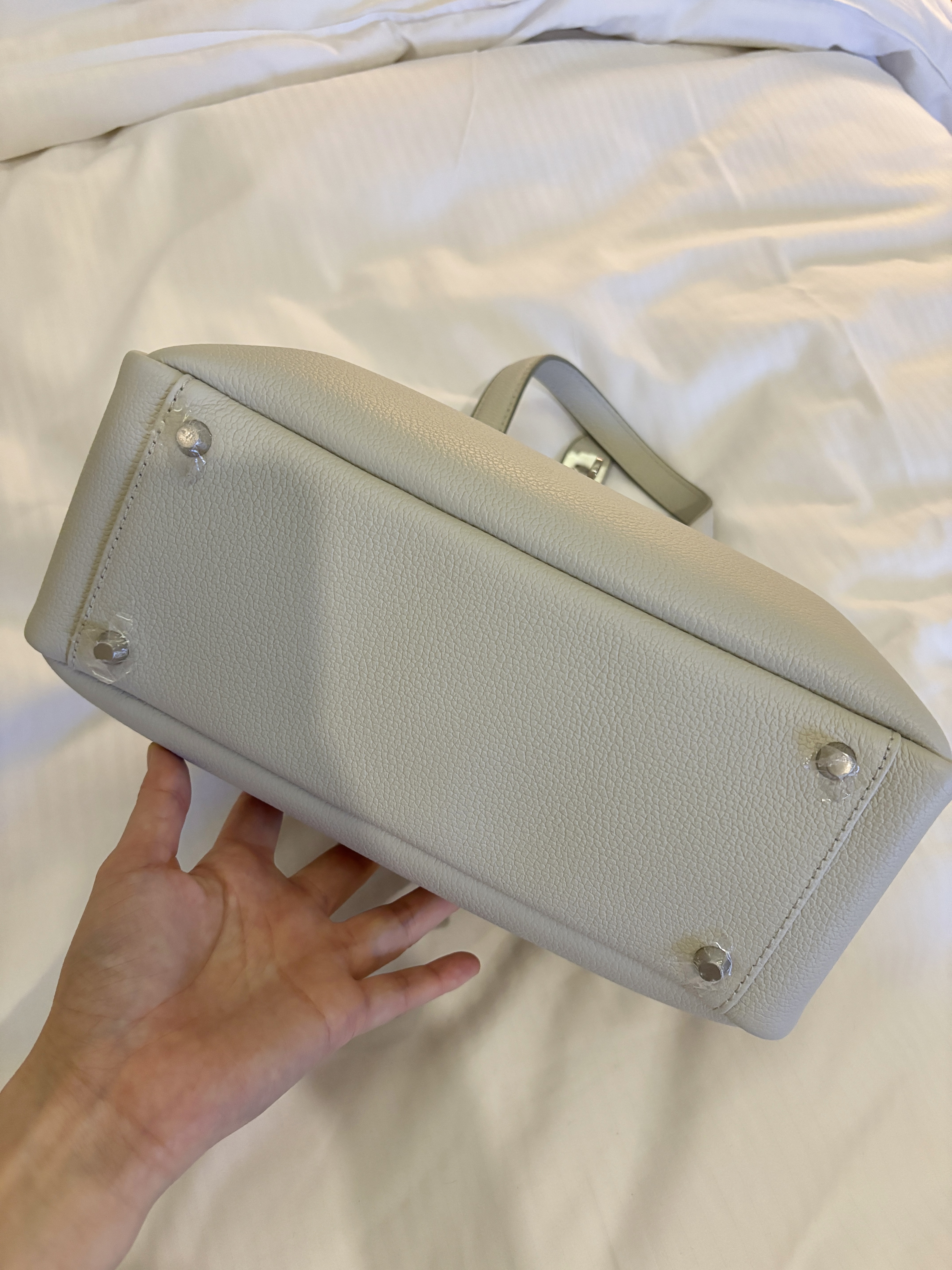 가방 아래에는 바닥징이 4개 박혀있어 바닥에 놓아도 가죽에 스크래치가 날 걱정은 안해도 된다는 점도 좋네요.