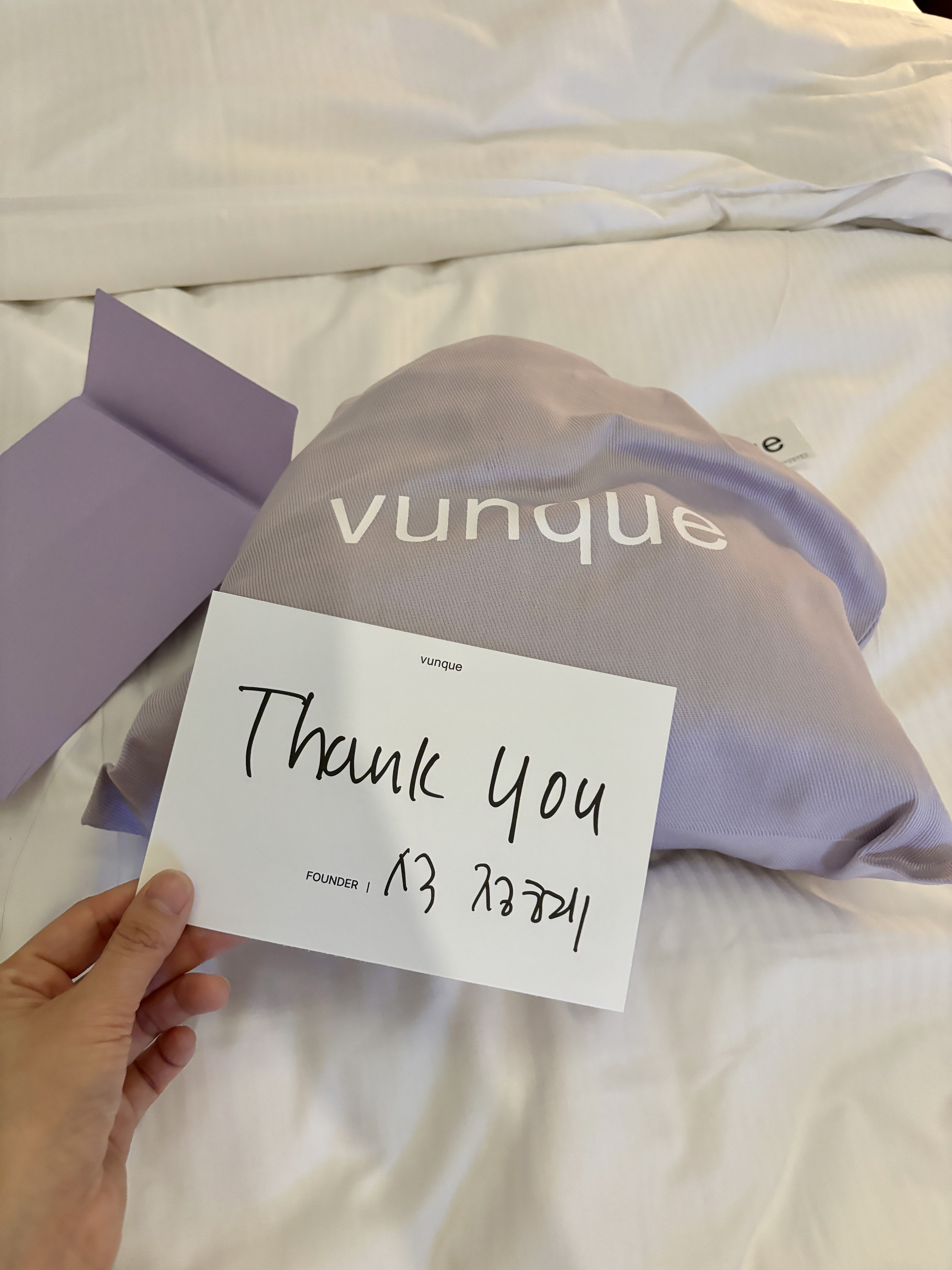 봉투를 열어보니 분크 대표님?의 손글씨 Thank you 카드가 들어있었어요.