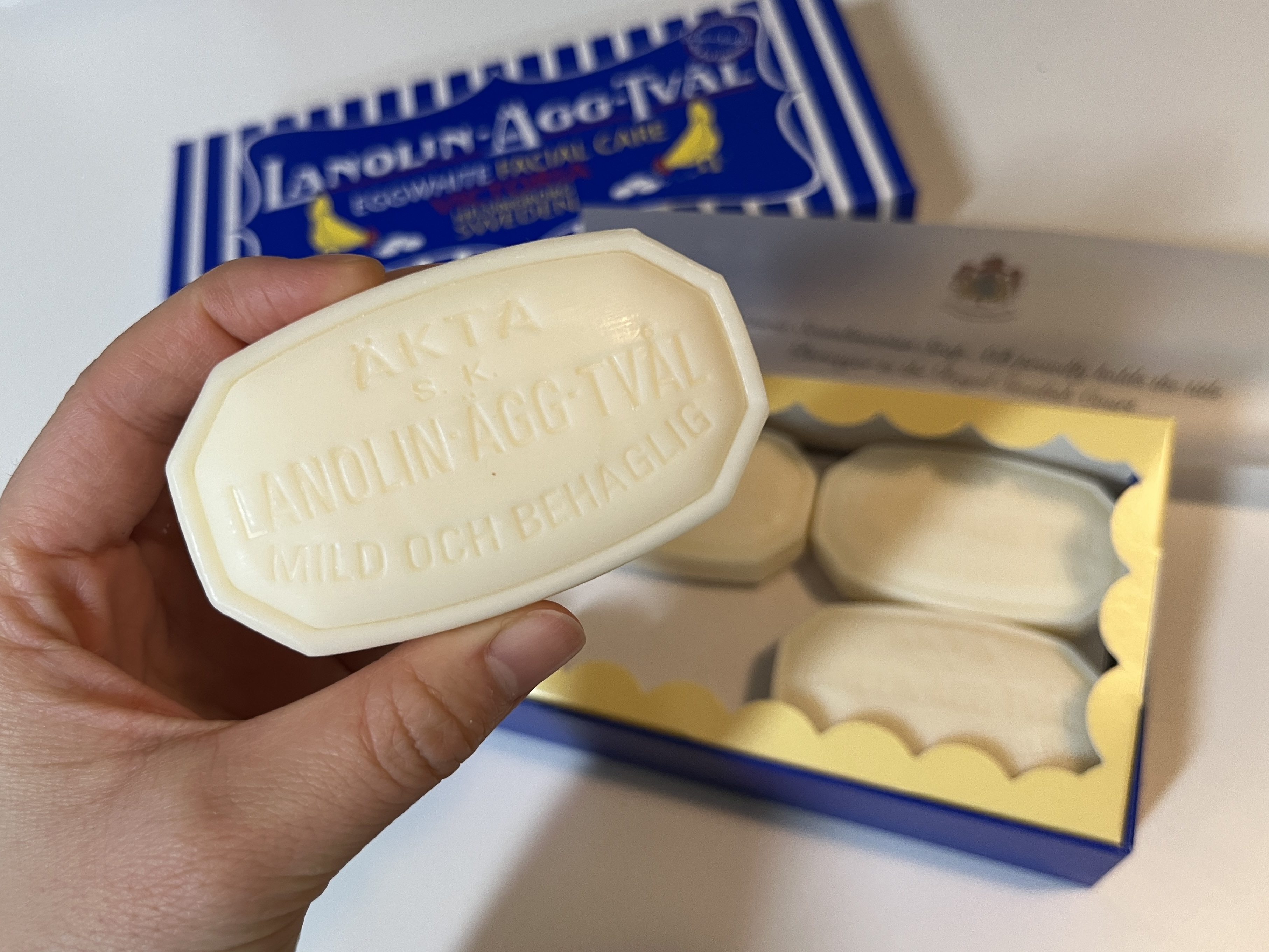 스웨덴 전통 미용법인 달걀 흰자팩을 기초로 만든 비누로 사용 시 매끄럽고 탱탱한 피부결 개선이 가능하다고 해요.