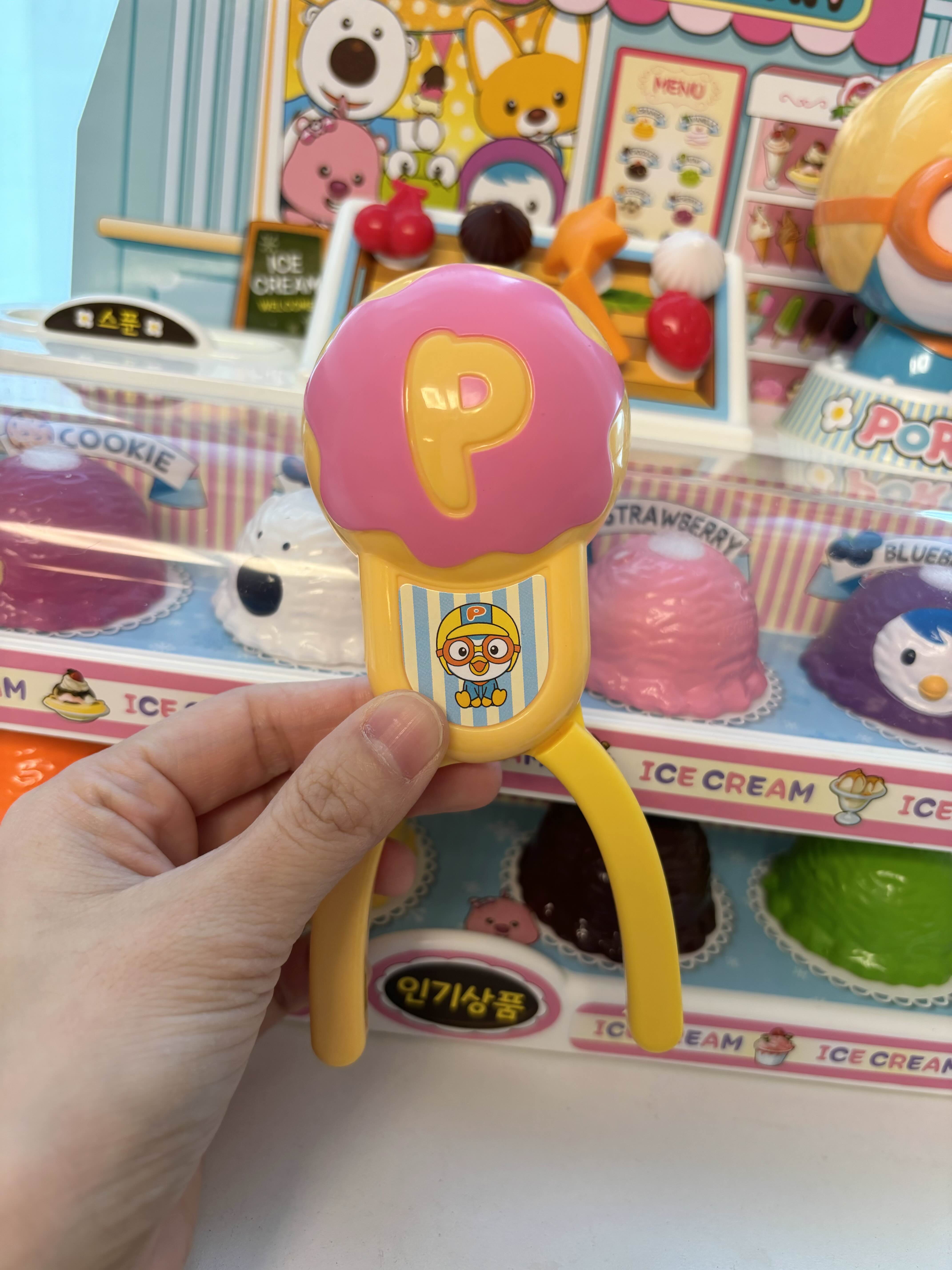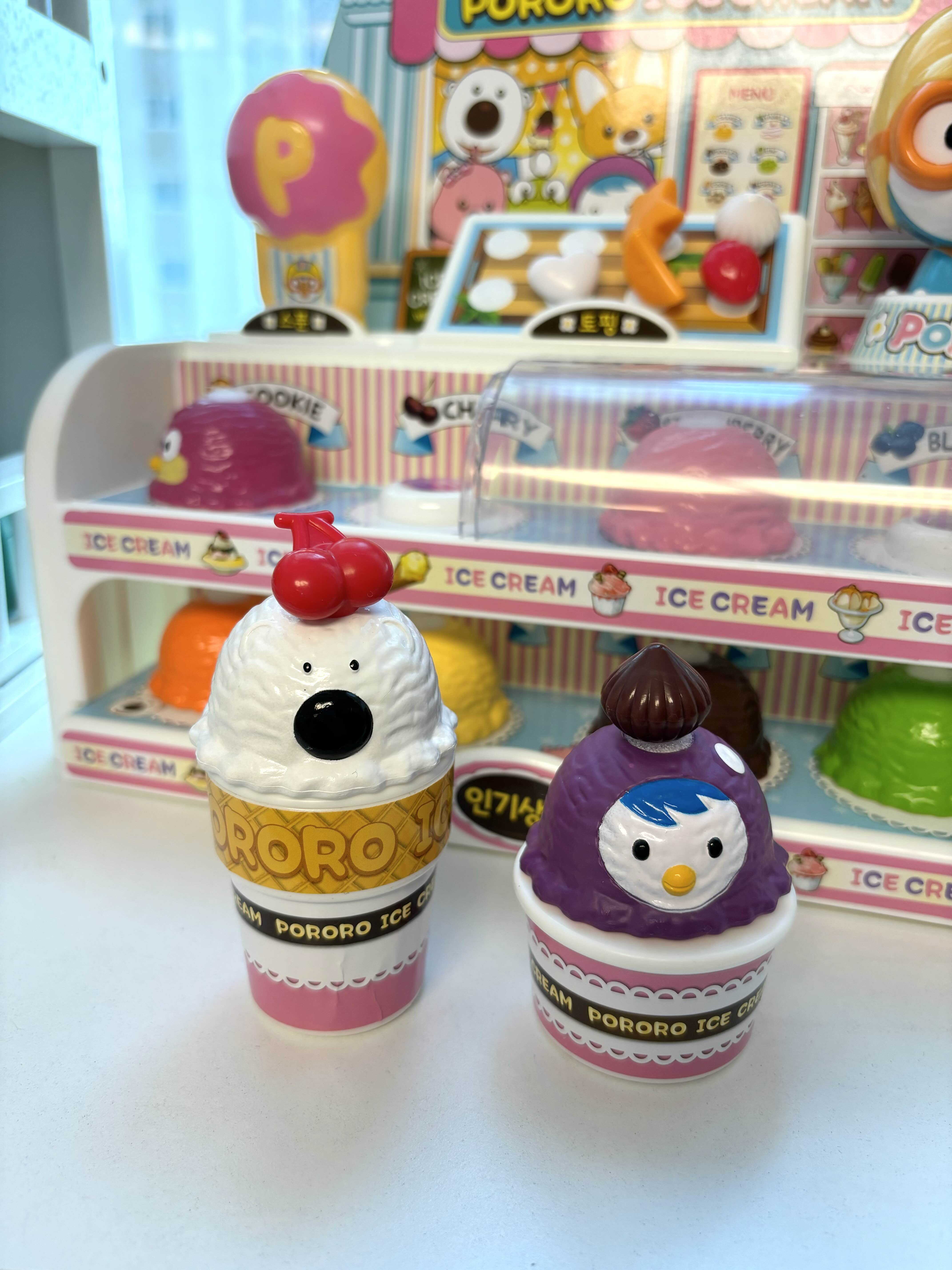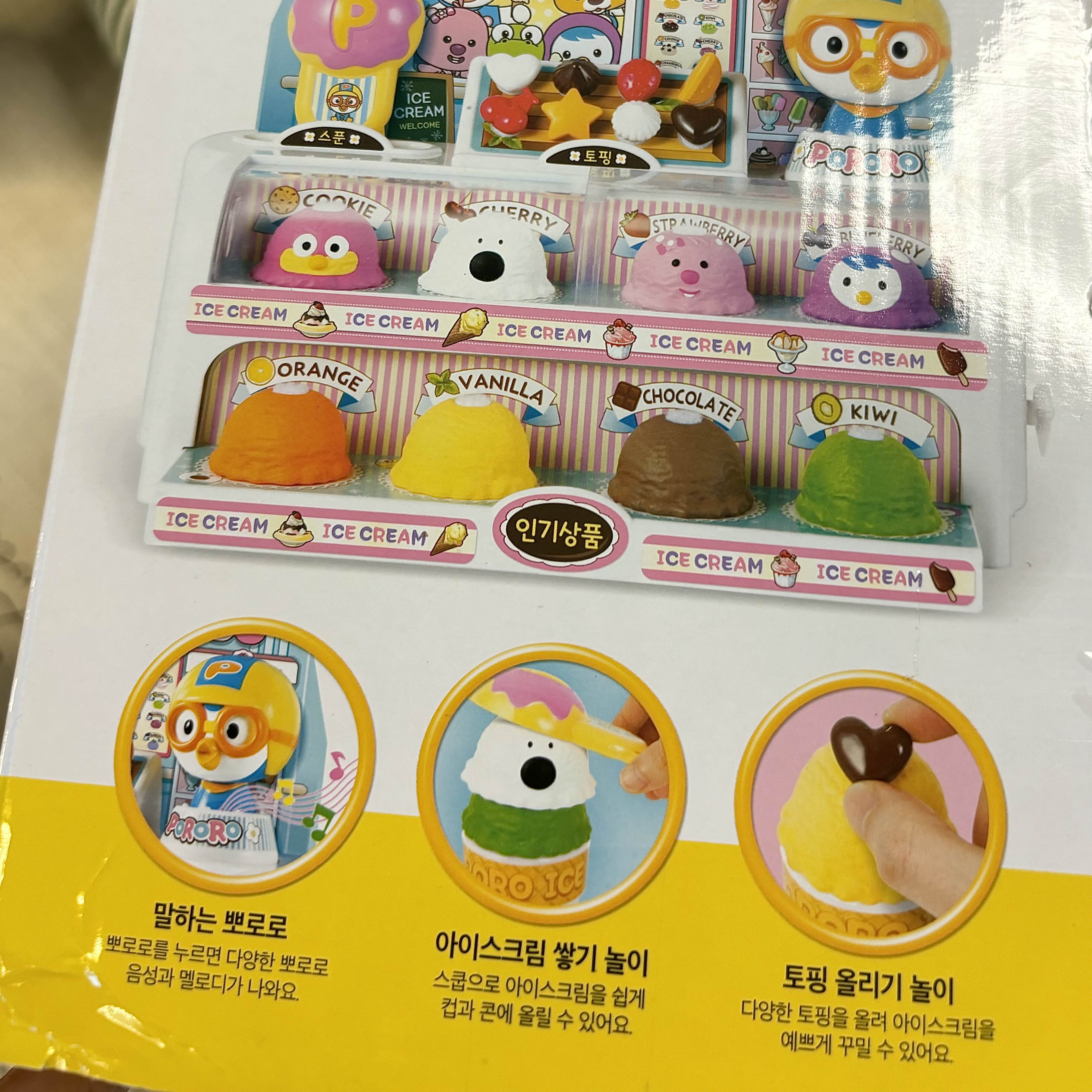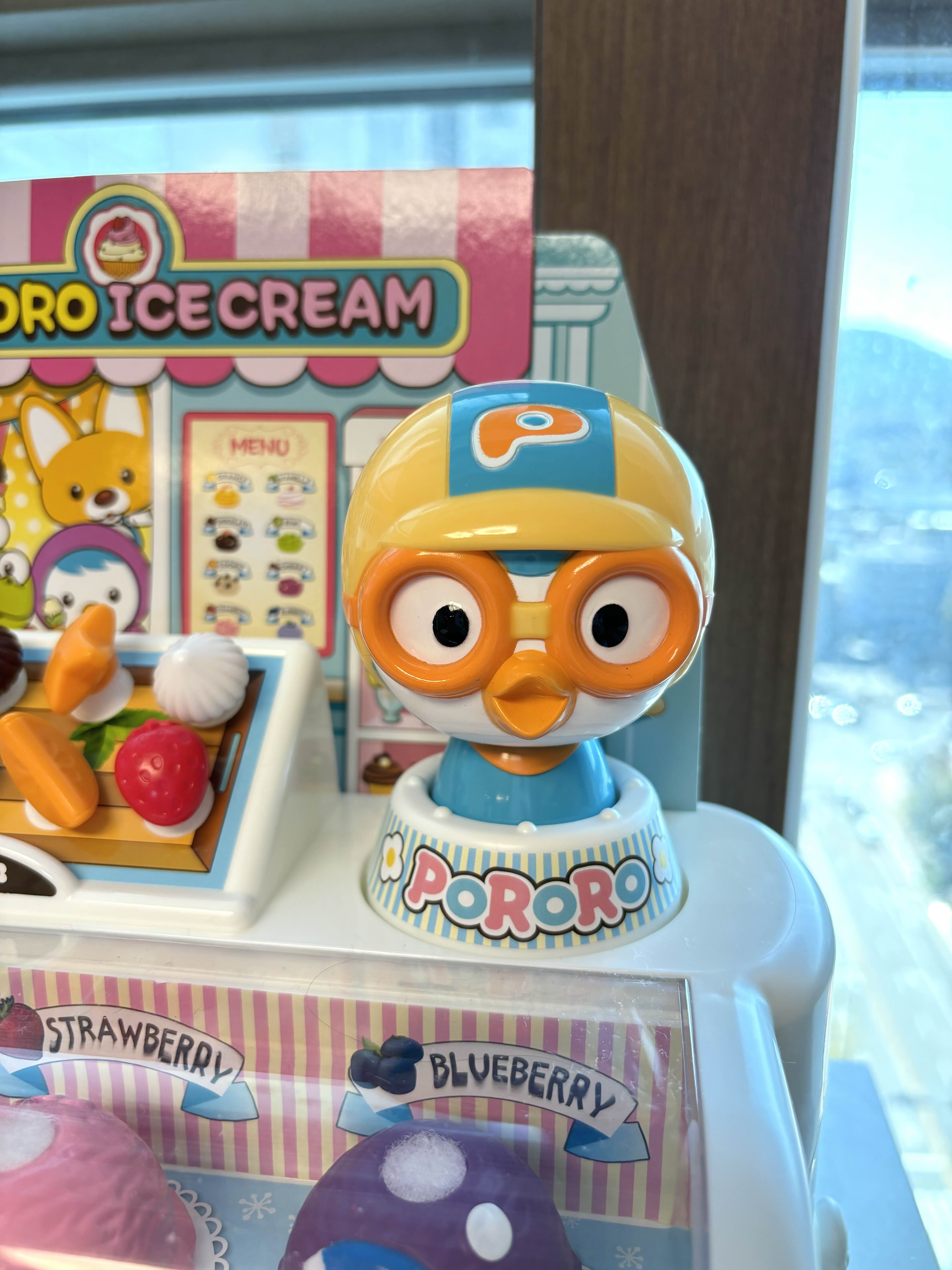 레고랑 기차 잘 가지고 놀다가 요즘 좀 시들해보여서 새로운 장난감을 고민하다가 부쩍 역할놀이 하는걸 좋아해서 뽀로로 아이스크림 가게 장난감을 구입해봤어요 🙂