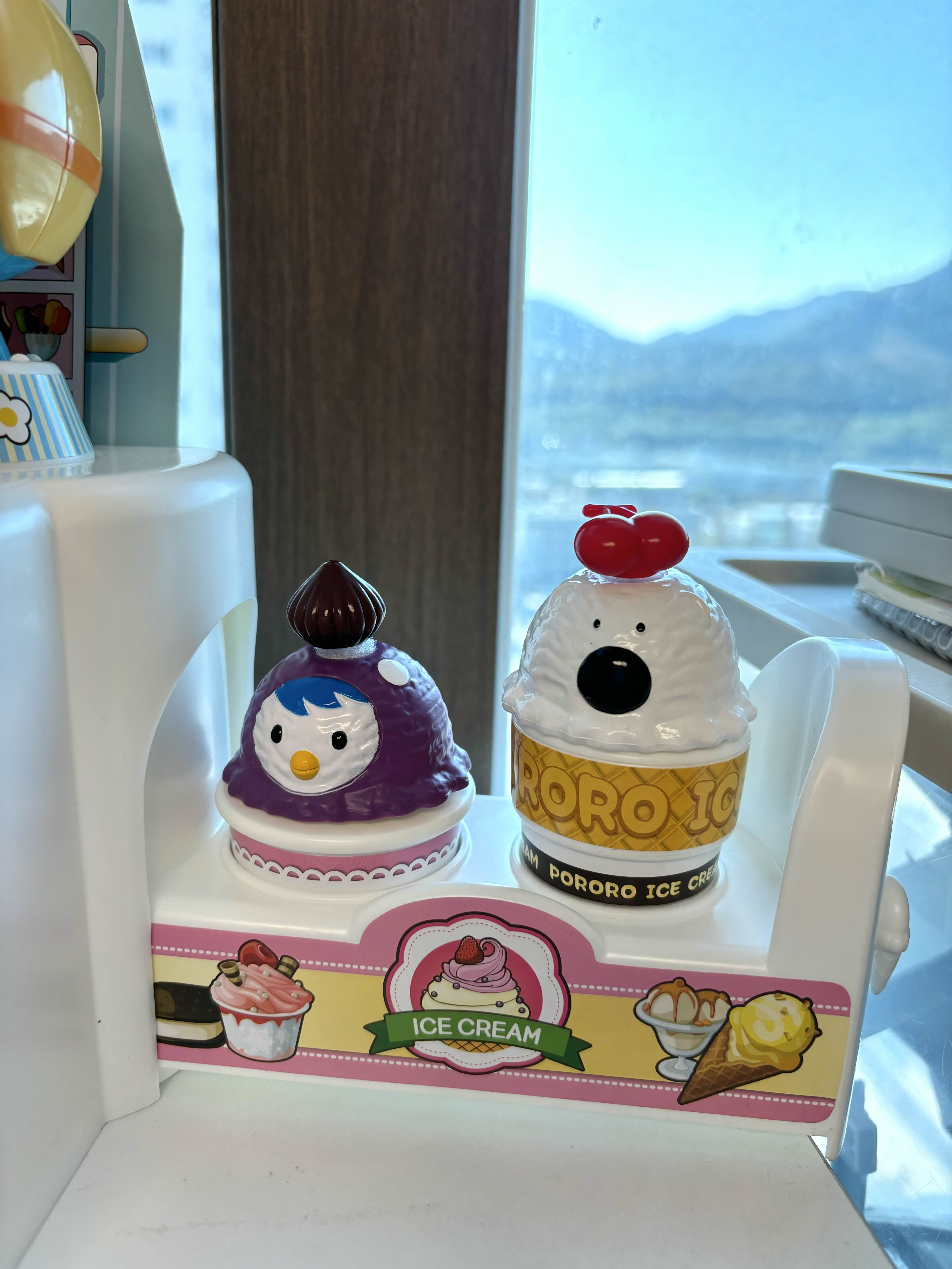 레고랑 기차 잘 가지고 놀다가 요즘 좀 시들해보여서 새로운 장난감을 고민하다가 부쩍 역할놀이 하는걸 좋아해서 뽀로로 아이스크림 가게 장난감을 구입해봤어요 🙂
