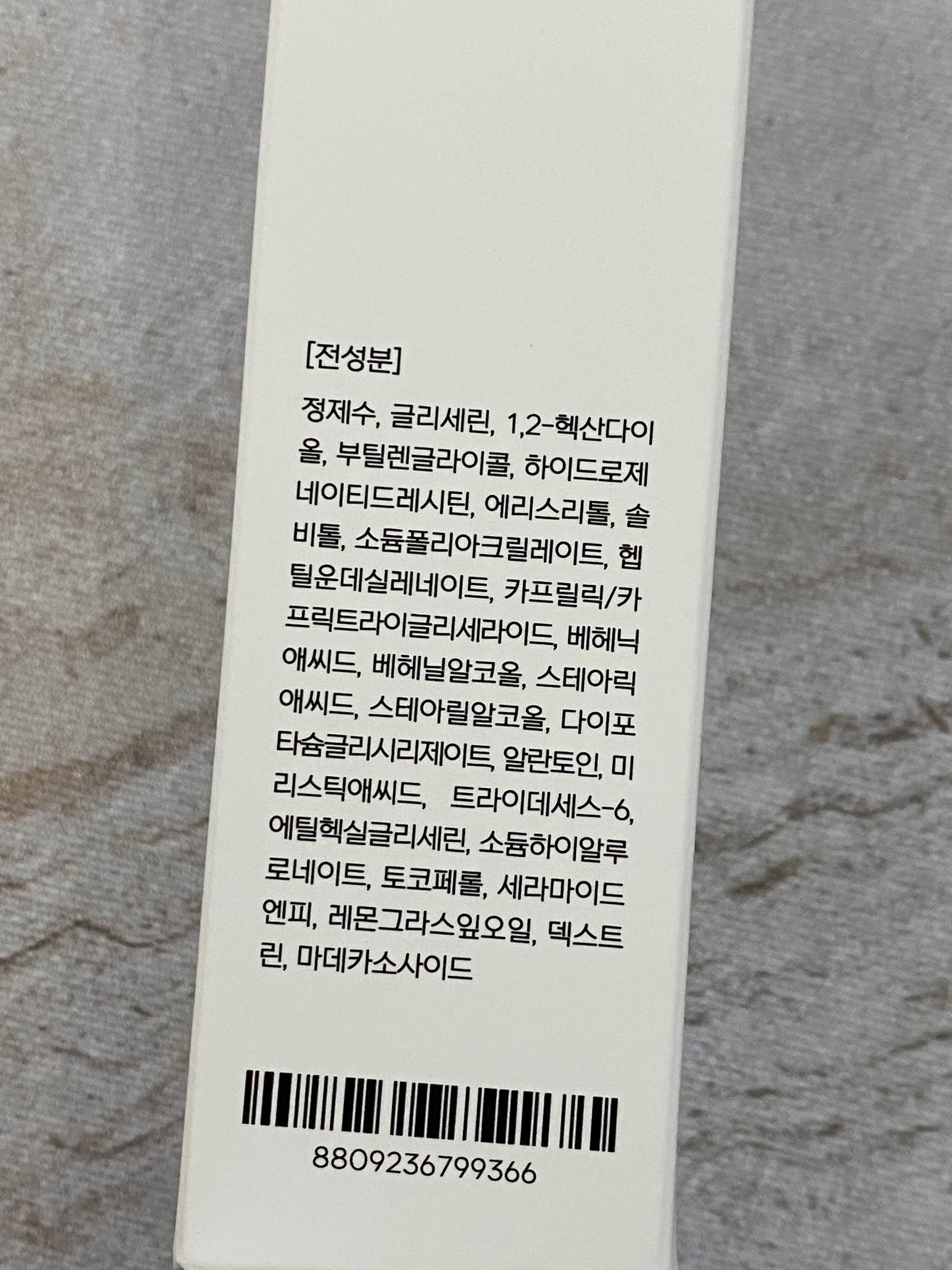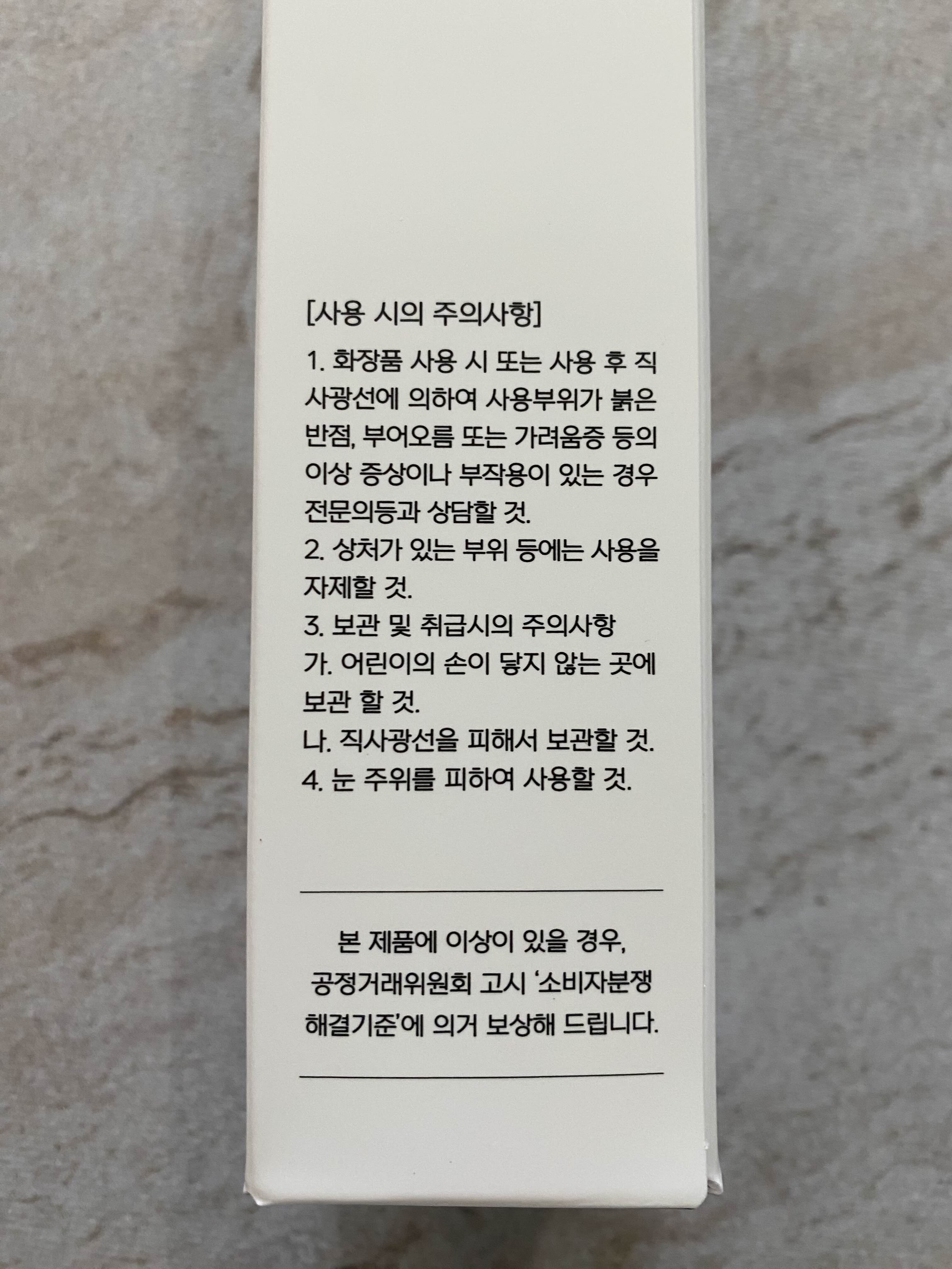 패키지 사이드에는 사용 시 주의사항과 전성분이 기재되어 있어요.