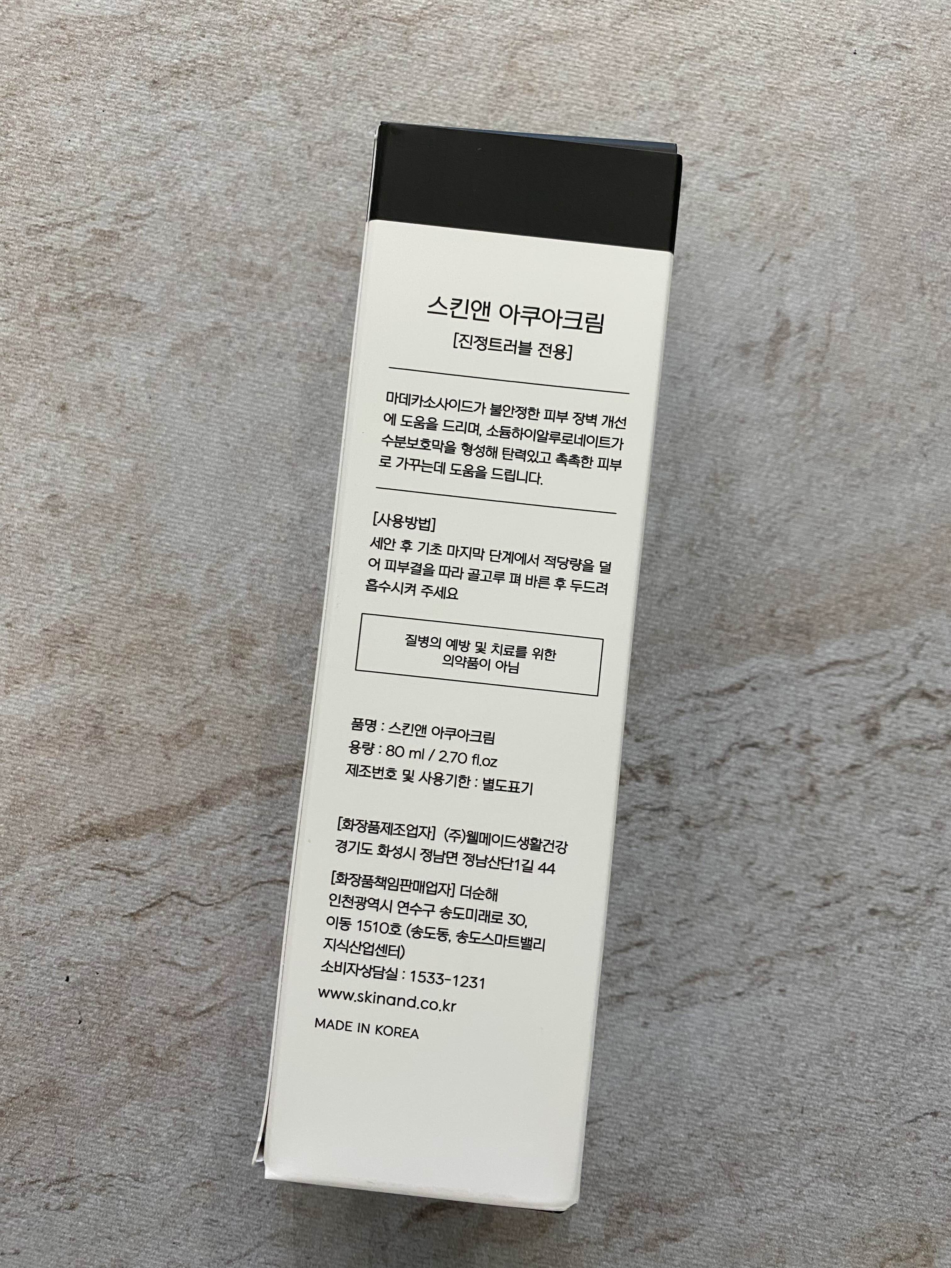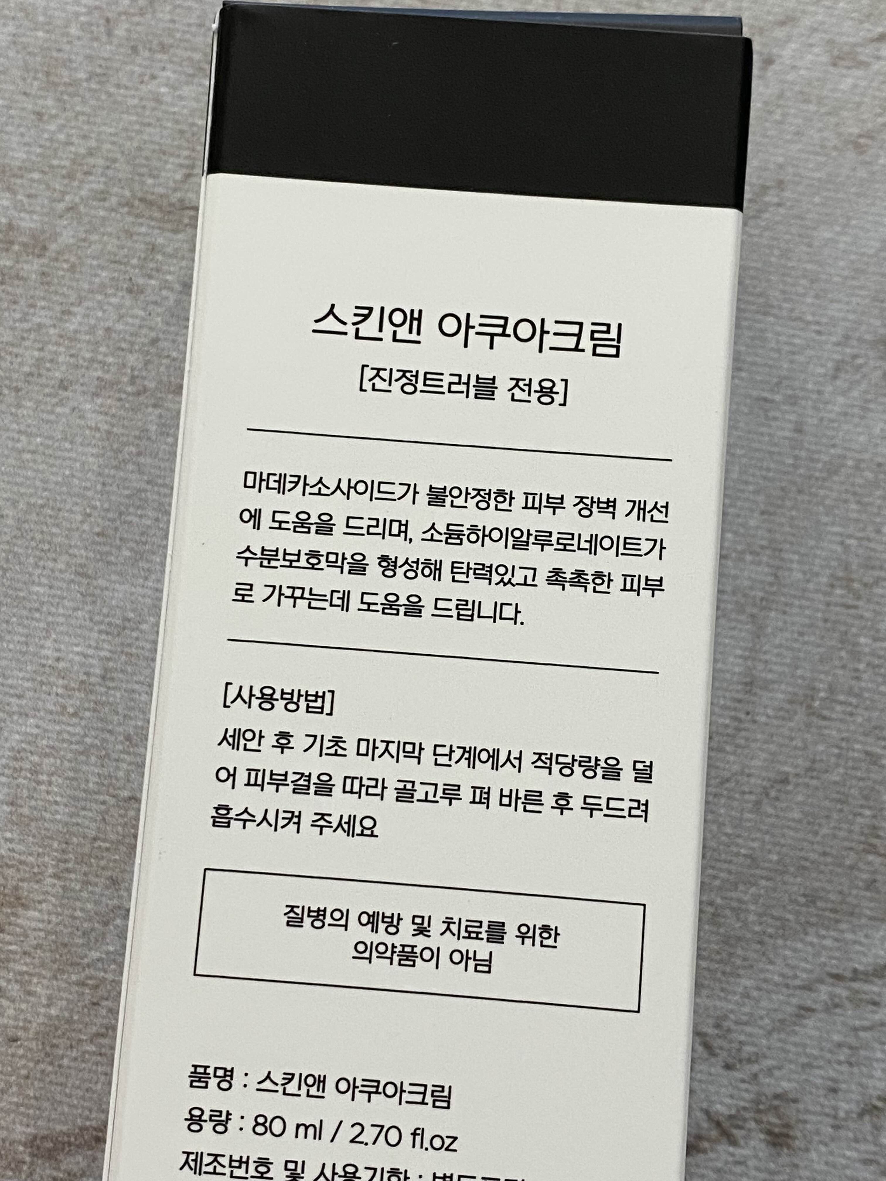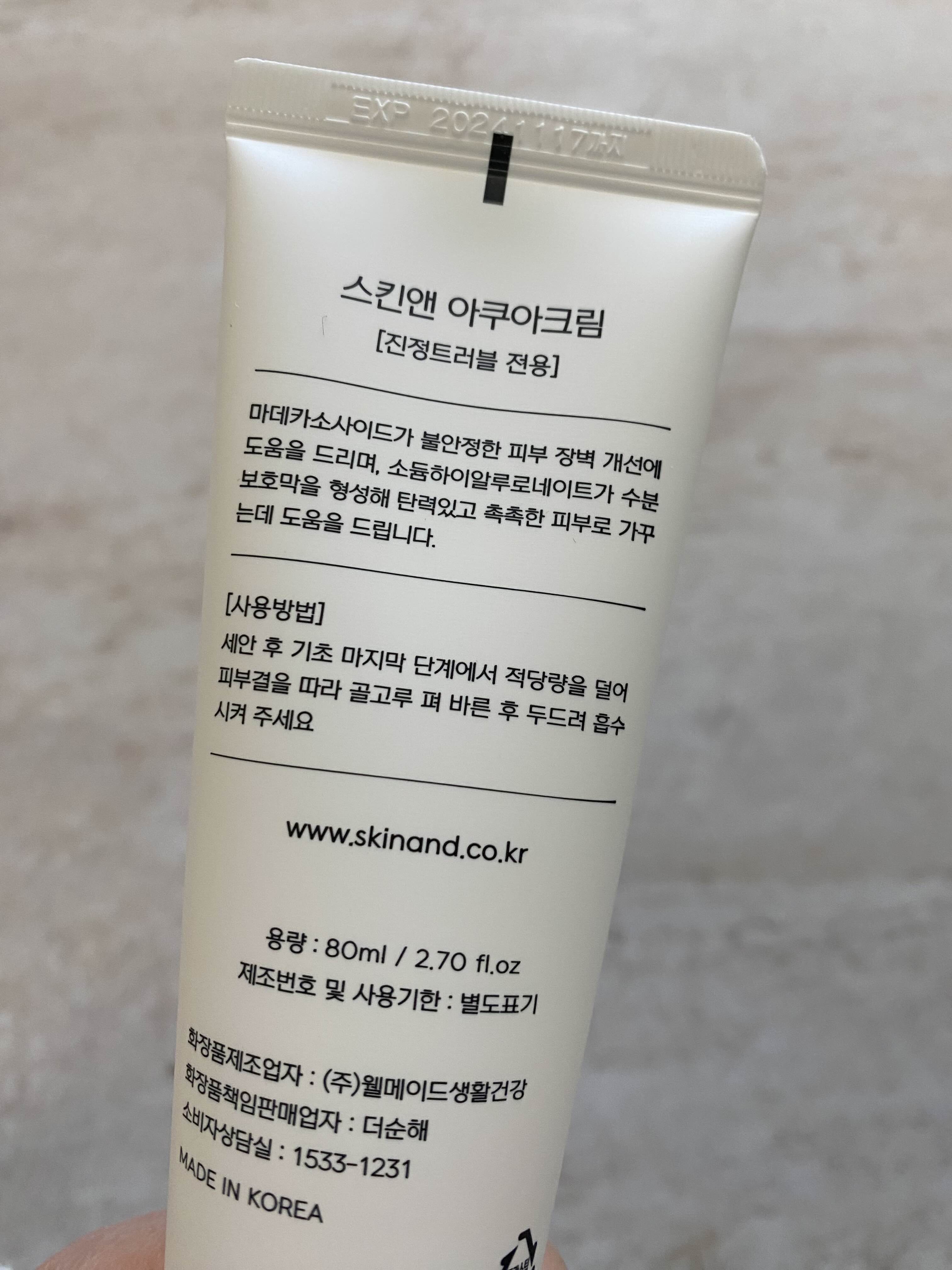스킨앤드 아쿠아크림은 피부진정, 수분충전, 피부보호에 탁월한 크림이라고 해요.