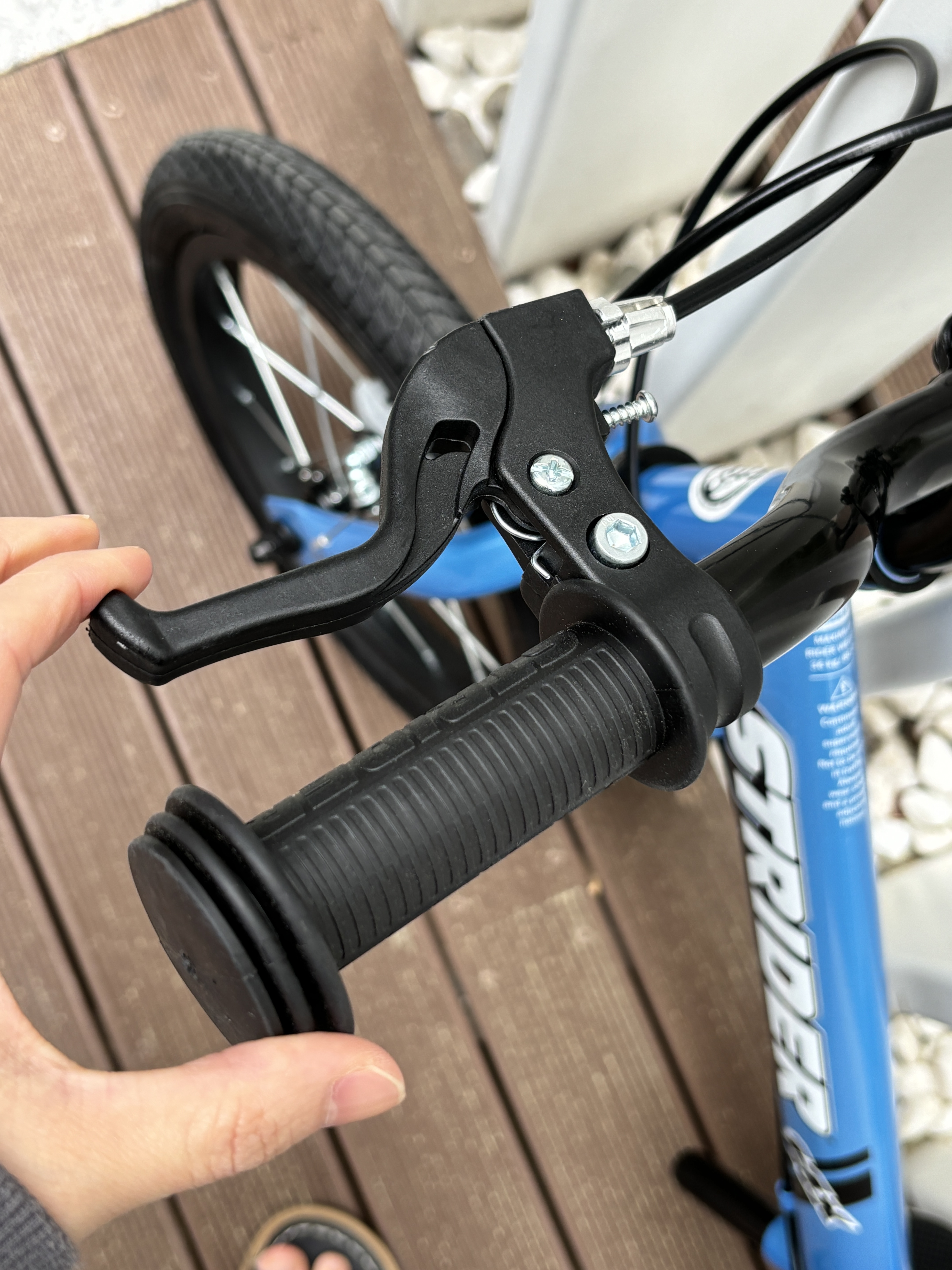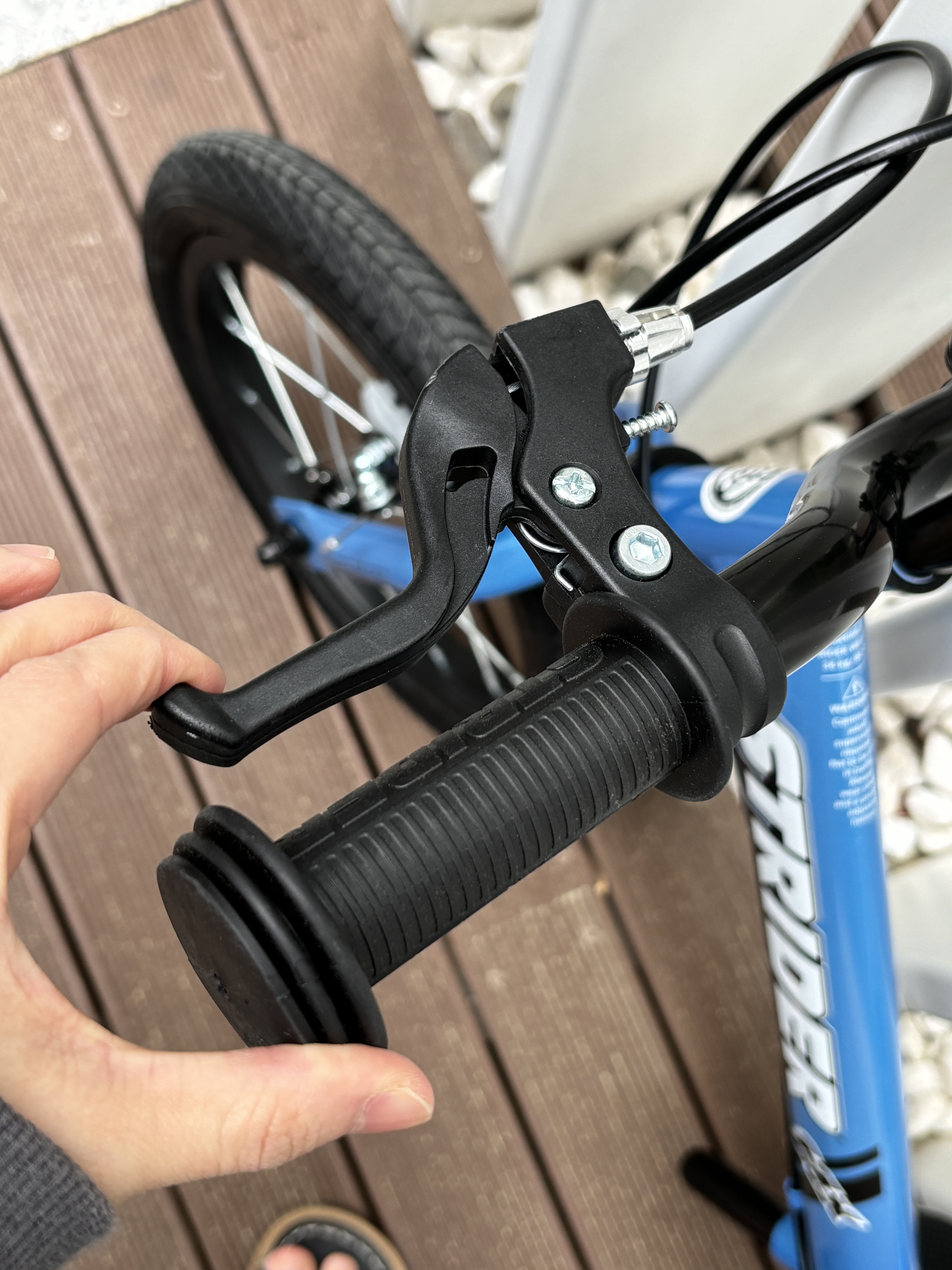 스트라이더 14인치는 왼쪽, 오른쪽 핸들에 브레이크 장착이 되어 있어요.