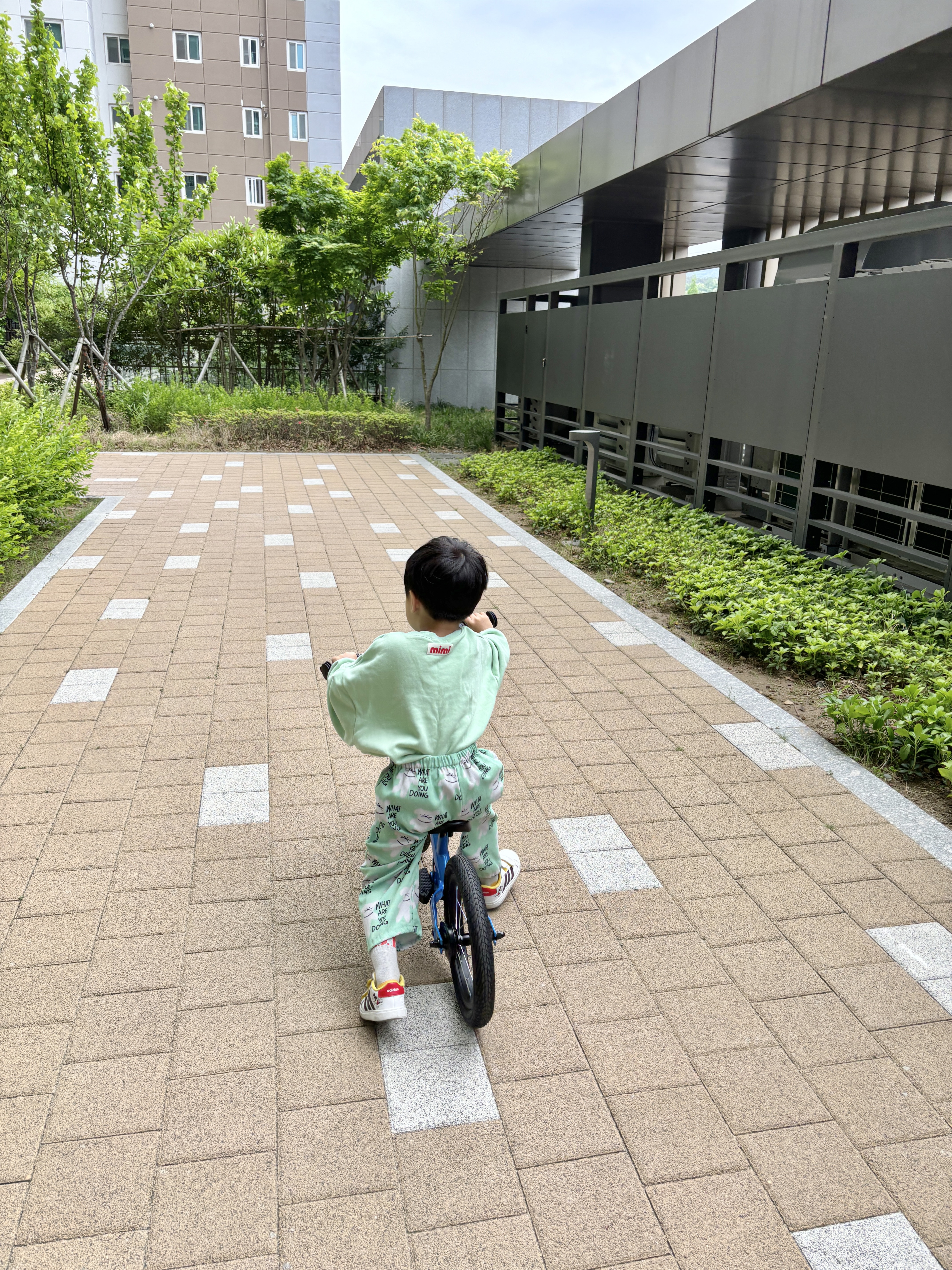 아직은 자전거보다 킥보드를 더 좋아하긴 하지만 그래도 대근육 발달을 위해 꾸준히 태워주고 있는 자전거!