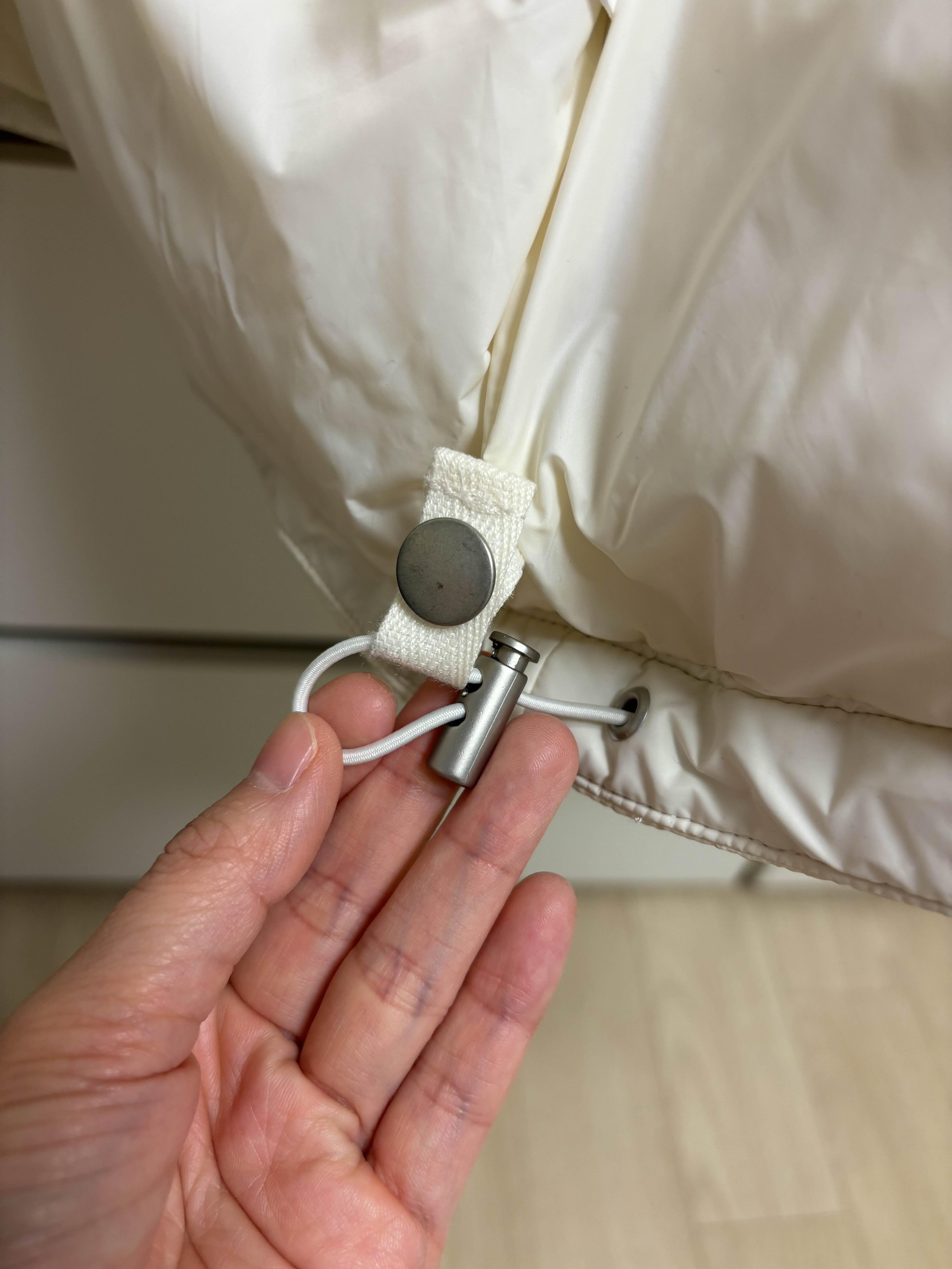 그리고 패딩 안쪽 하단에 스트링이 있어 한겨울에는 패딩 아래쪽에서 바람이 들어오지 않도록 조절하면 되겠더라구요.