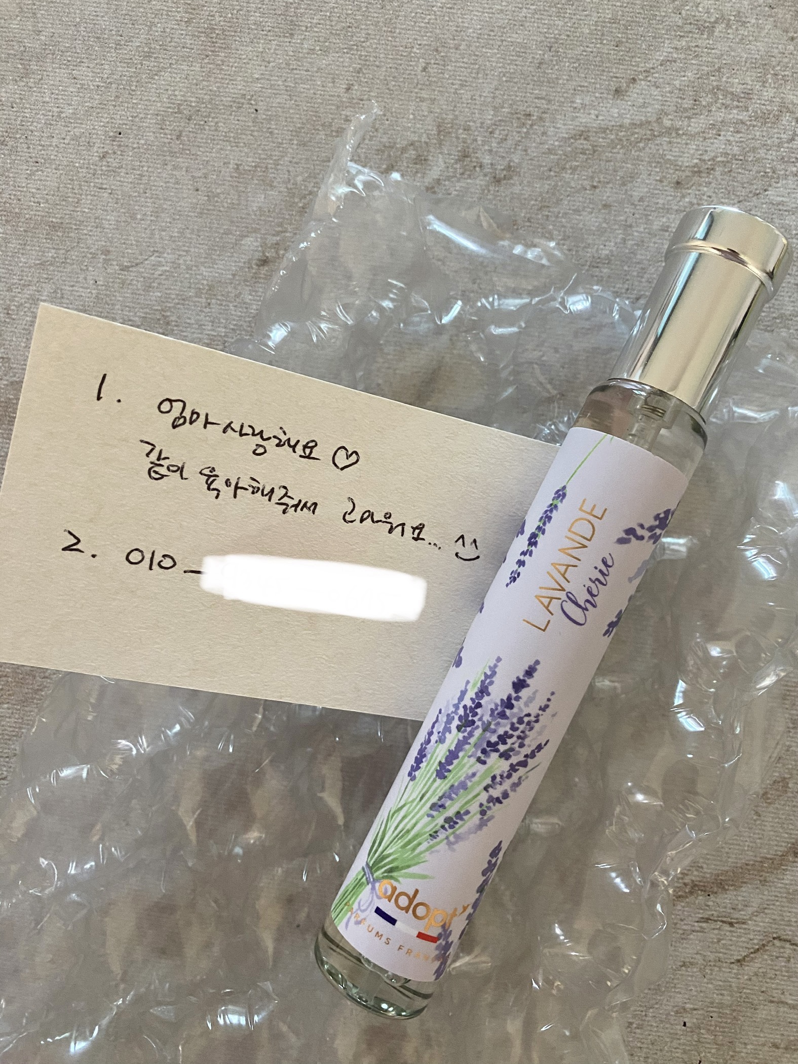 라벤더 향 향수였는데, 향이 강하지 않아 제가 맡아도 넘 좋은 향이더라구요