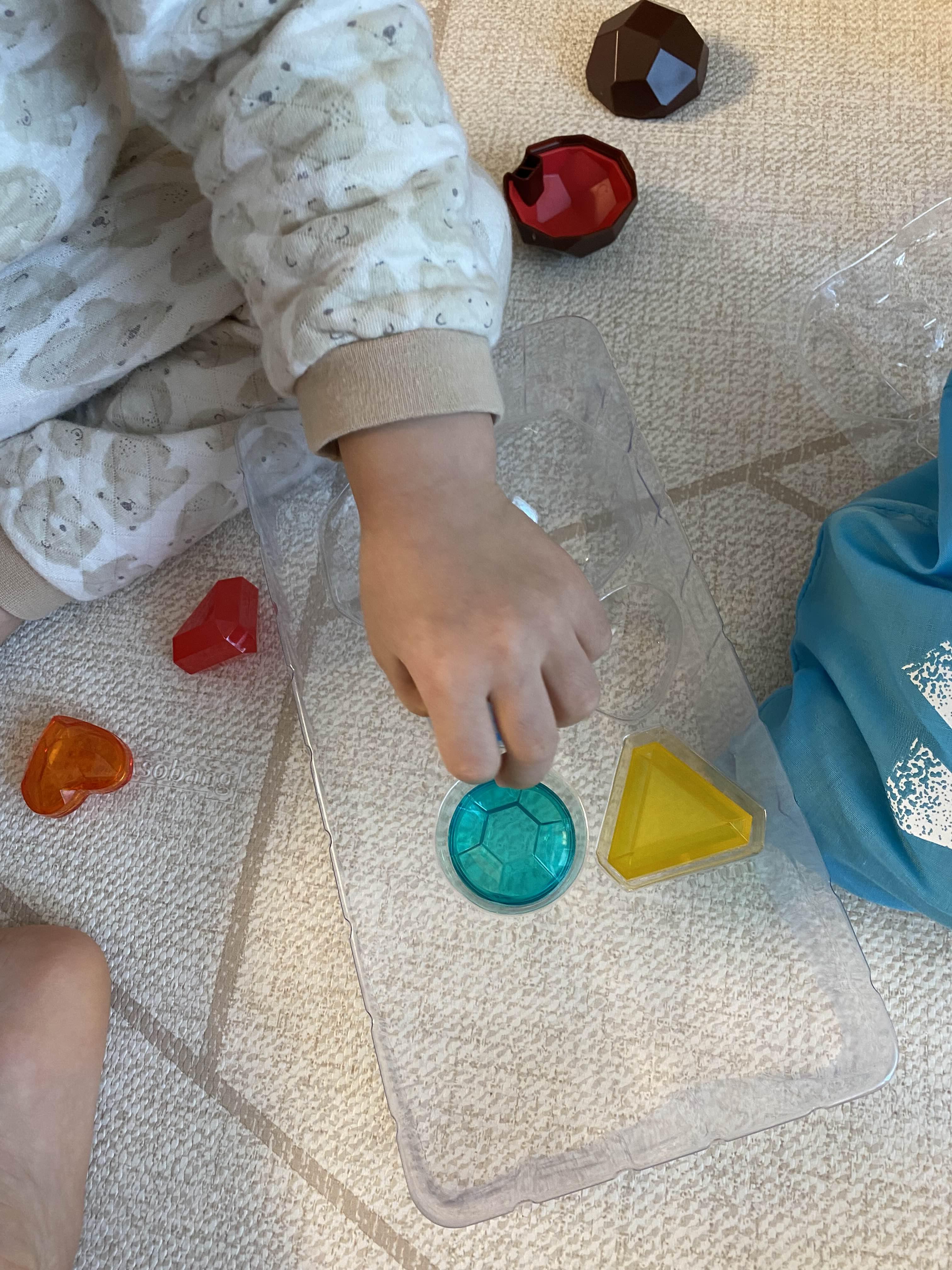 가지고 놀 수 있도록 세팅하기도 전에 아이 손이 먼저 보석을 집으러 가네요 ㅎㅎ