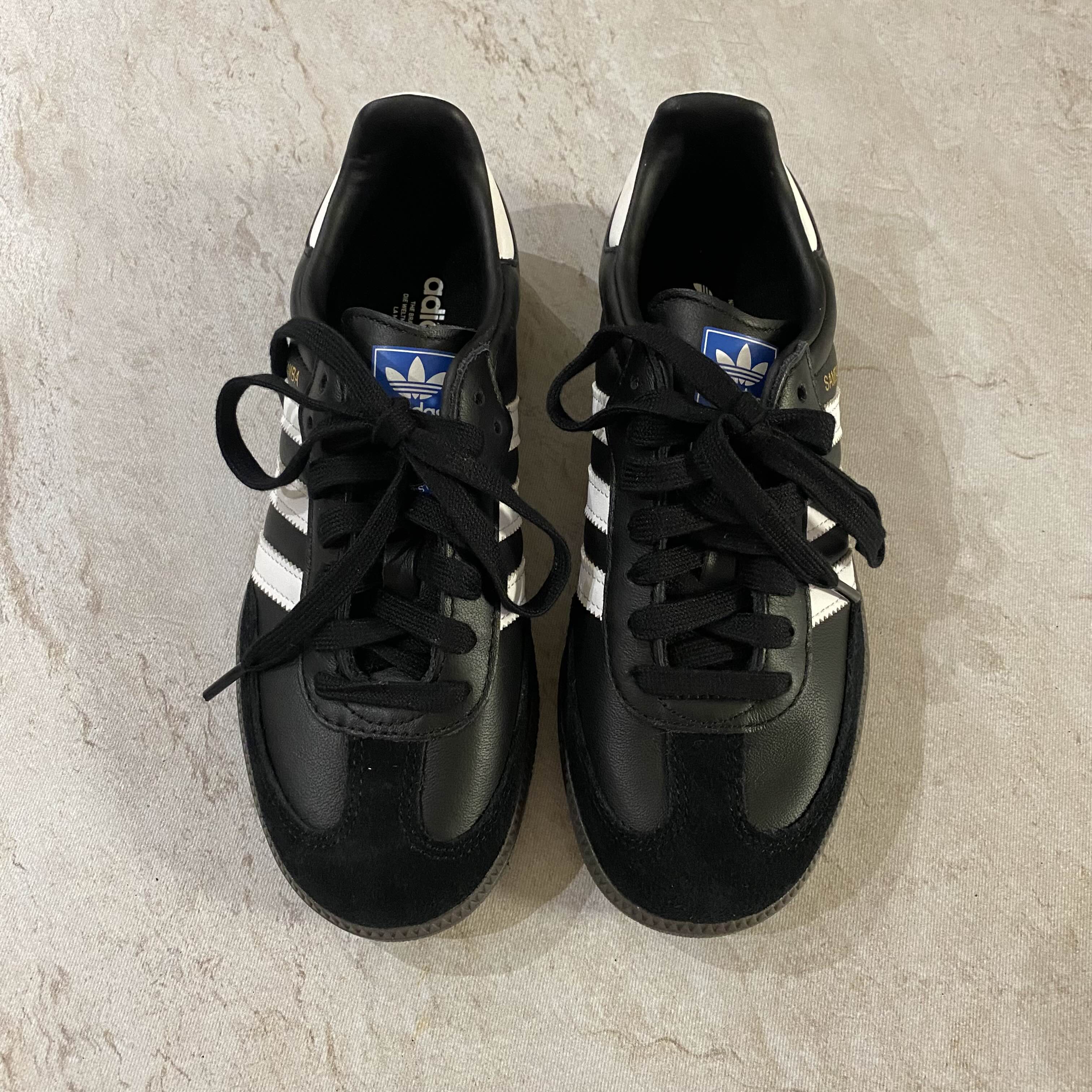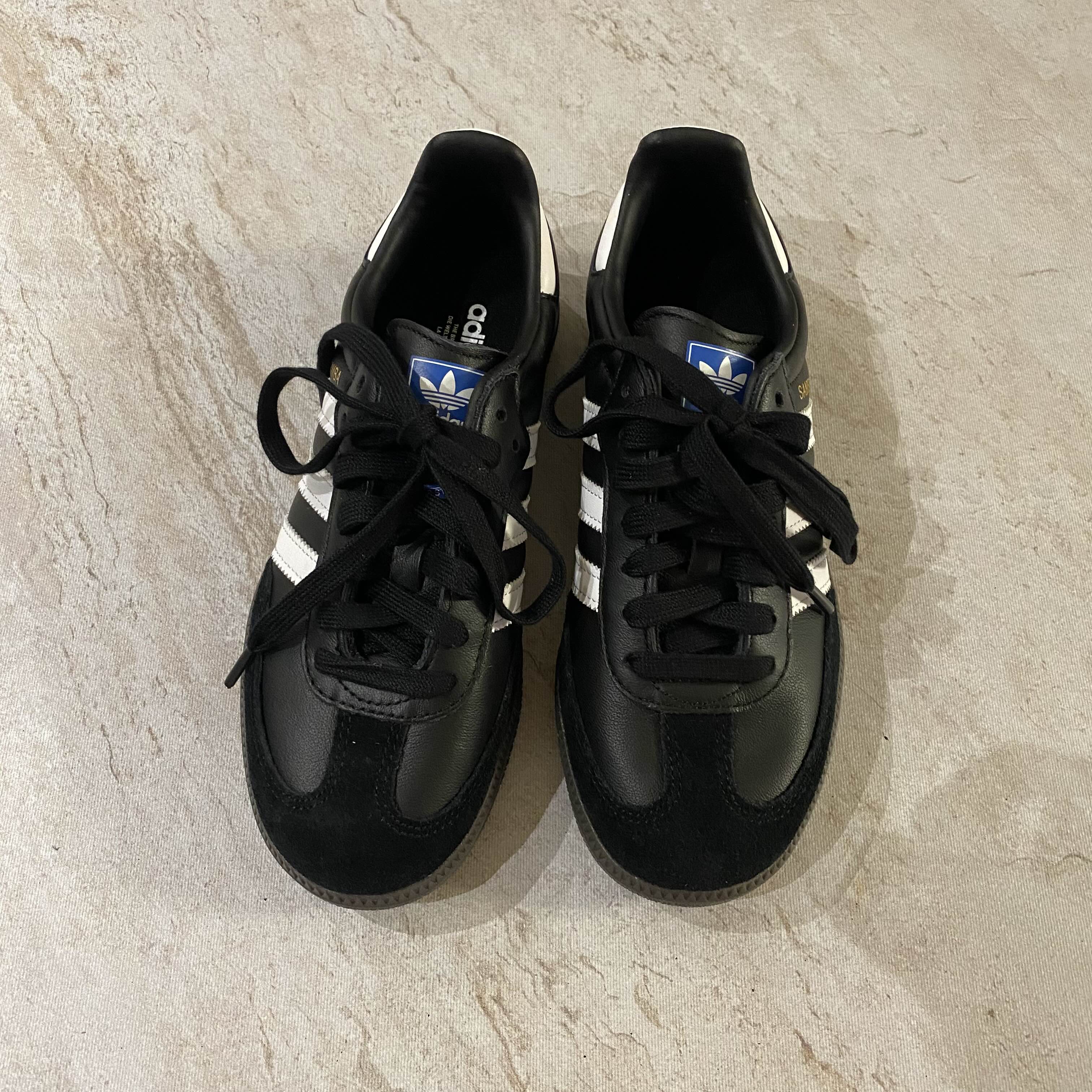 사이드에 삼선이랑 뒷꿈치 부분 화이트 포인트로 더 이쁜 아디다스 삼바 블랙