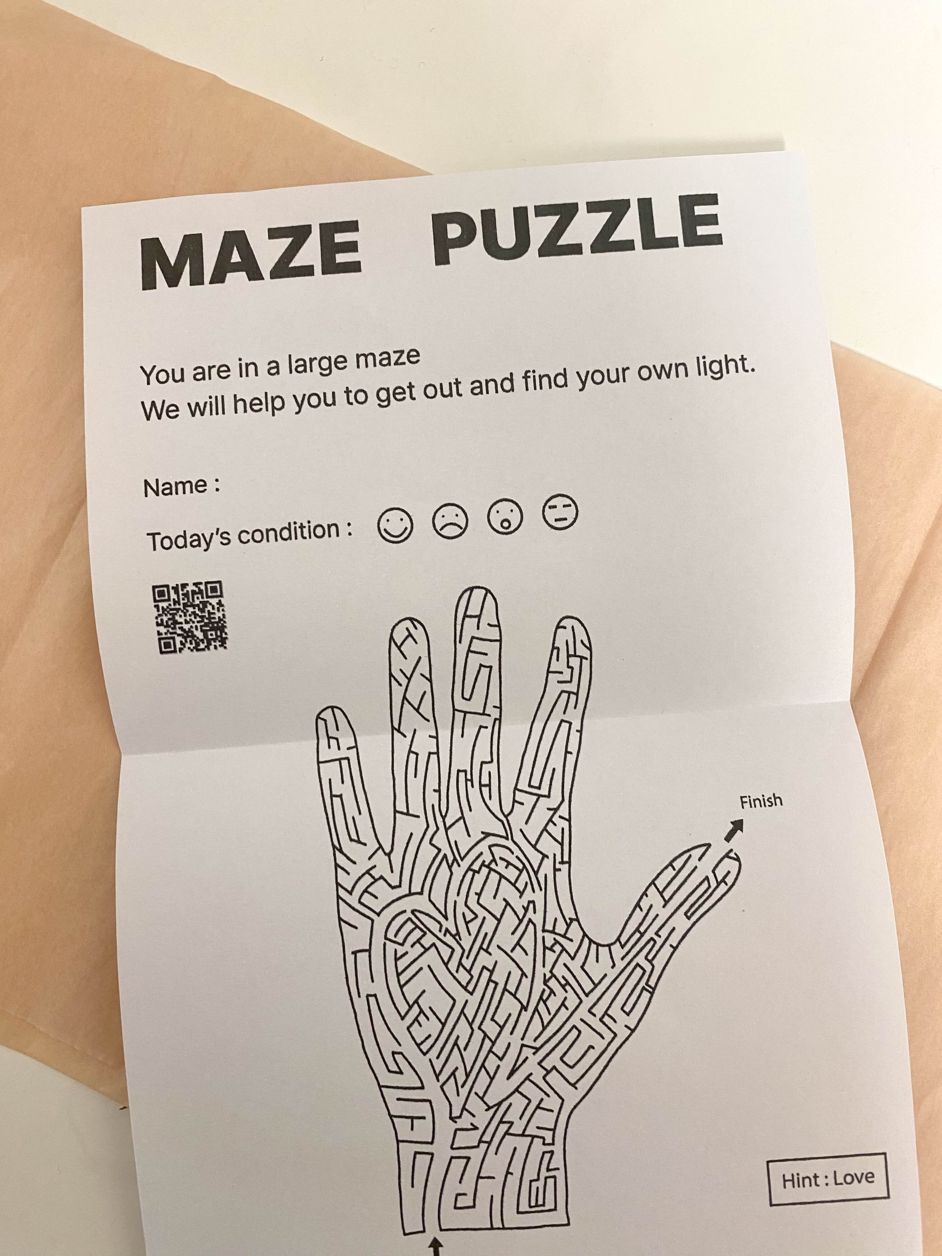 포장지를 살펴보니 제가 구입한 목걸이가 MAZE 컬렉션이라 미로 퍼즐 종이를 함께 주는 것 같았어요.