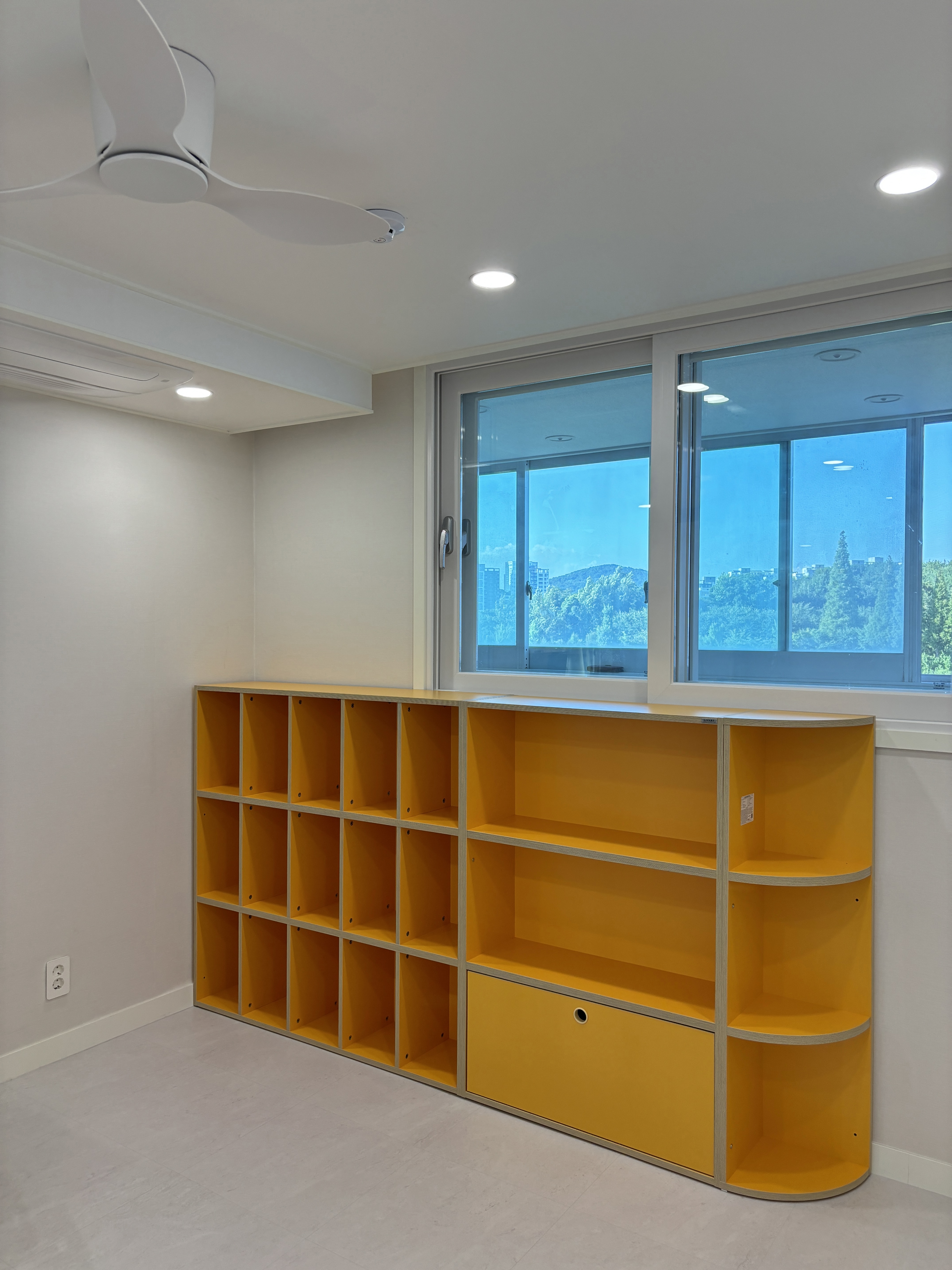 아이가 지나다니면서 모서리에 부딪힐 수 있는데, 반원 책장은 모서리가 둥근 디자인이라 아이가 실수로 책장 모서리에 부딪힐 위험을 방지해주는 역할을 할 수 있겠더라구요 :)