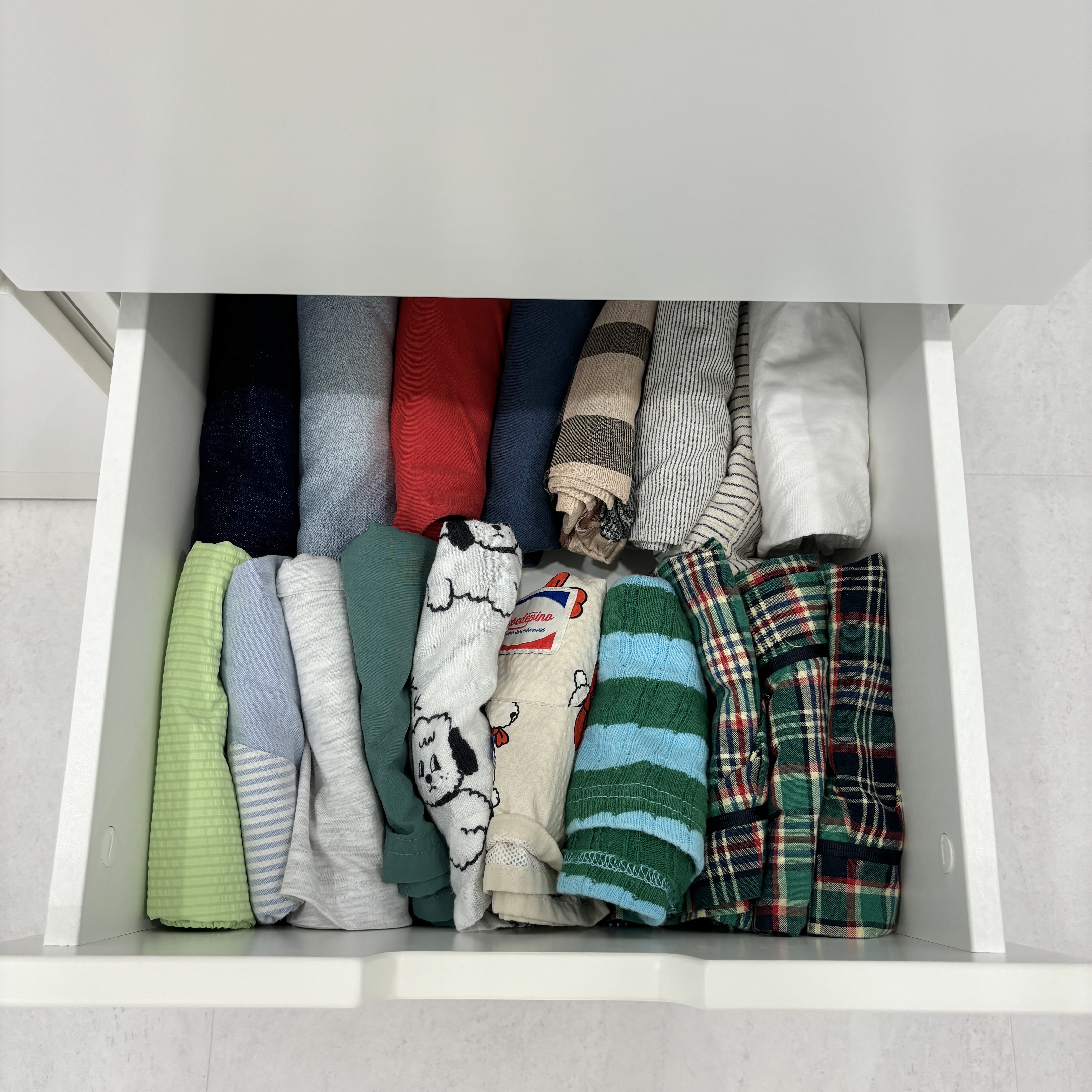 계절마다 맞는 옷으로 해당 서랍장에 넣어놓고, 아이가 직접 꺼내 입을 수 있도록 할 예정이에요 :)