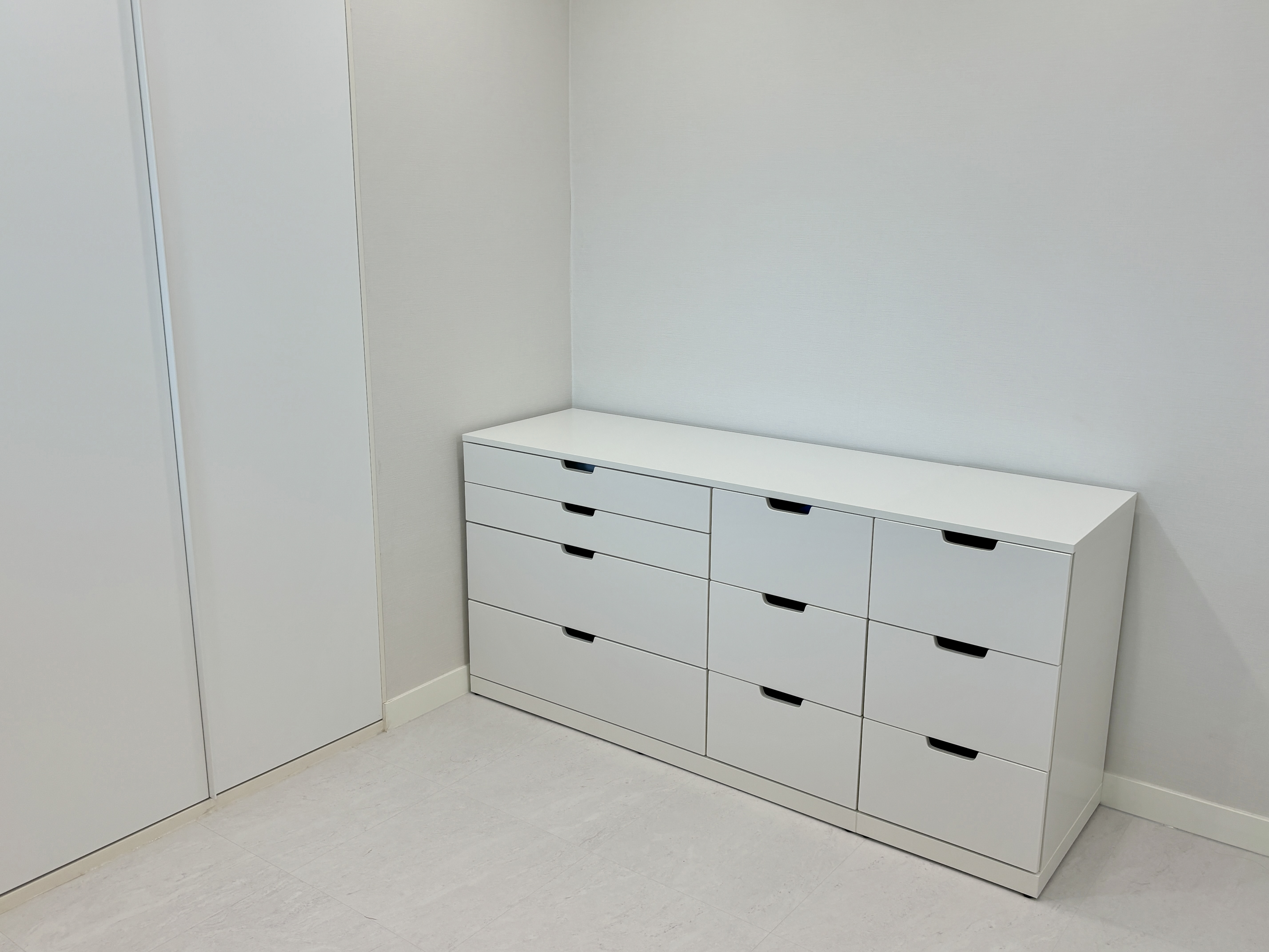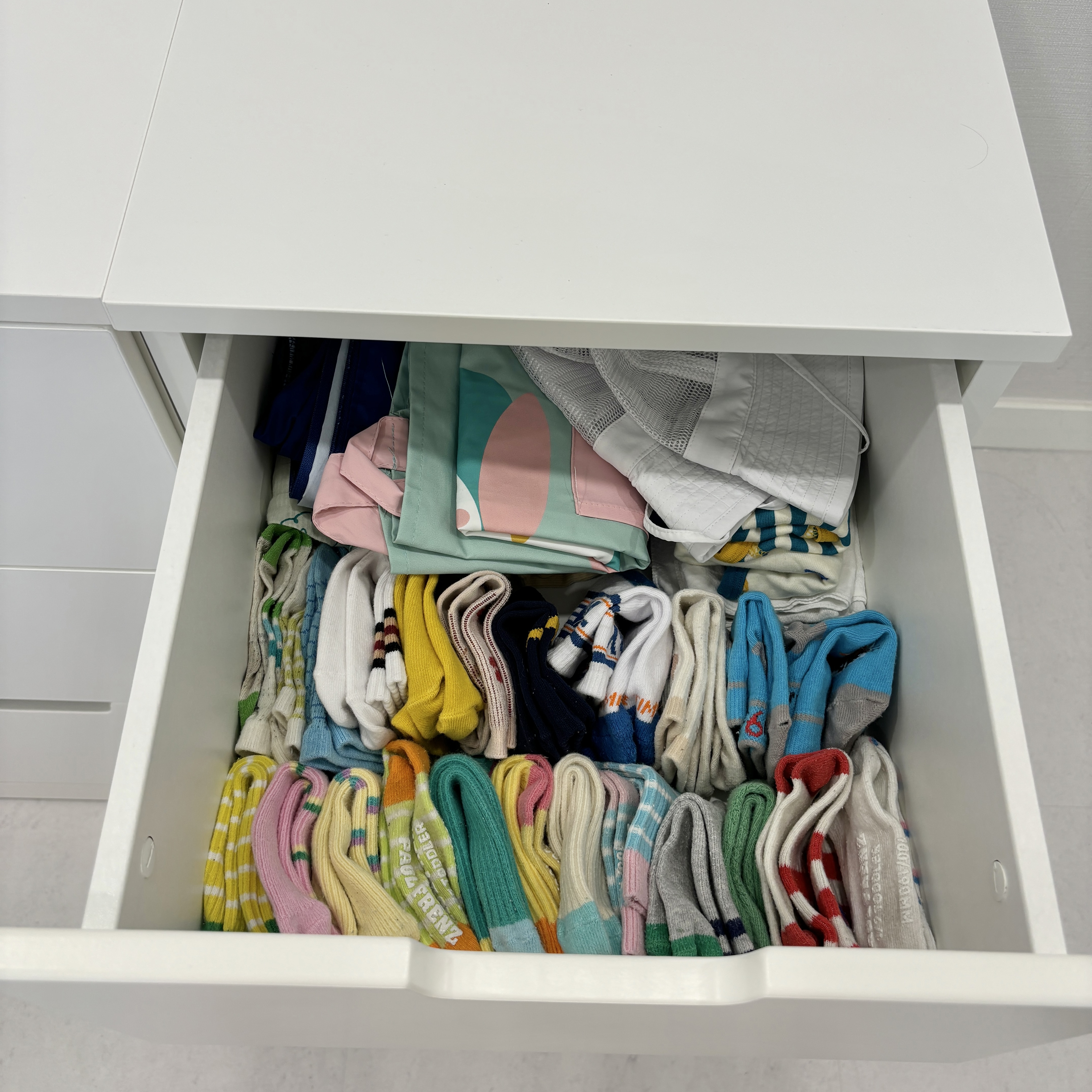 이케아 노르들리 7칸 서랍장 옆에 붙인 3칸 서랍장에는 아이 양말과 상의, 하의를 보관했어요.