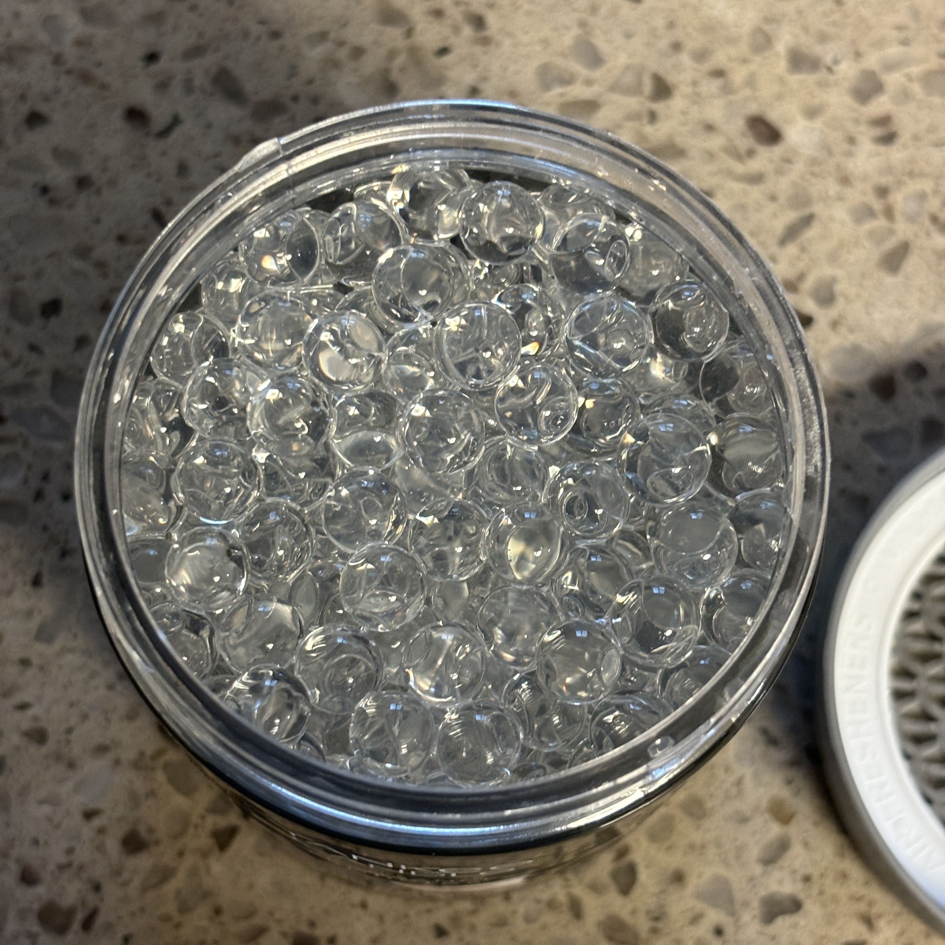 양키캔들 프래그런스 스피어스 차량용방향제는 투명한 방향제 겔 비즈로 채워져있어요. 시간이 지나고 발향이 될수록 겔 비즈가 작아집니다.