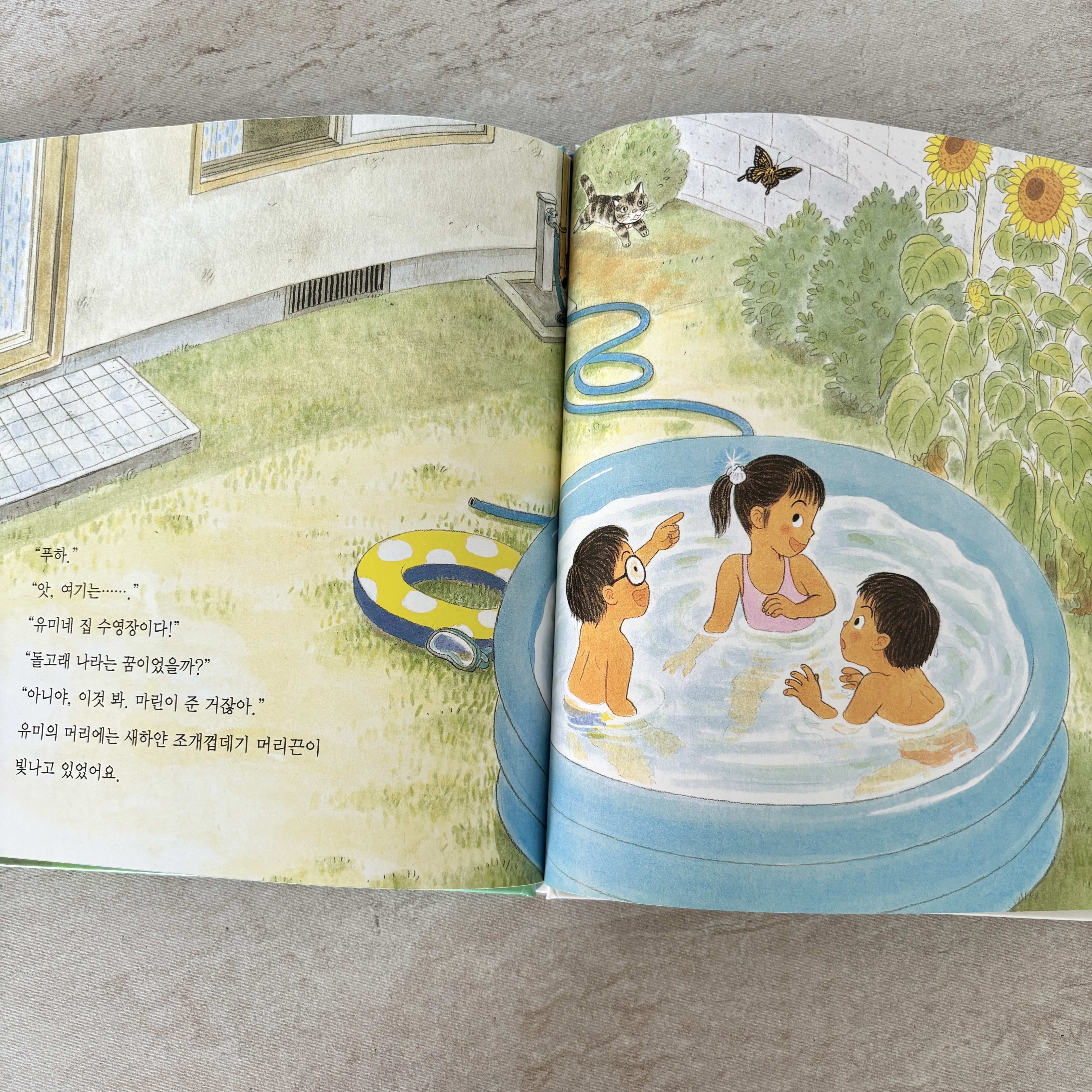 다시 수영장으로 돌아온 세친구! 이게 다 꿈이었나? 싶었는데 유미 머리에 빛나고 있는 조개껍데기 머리끈 :)