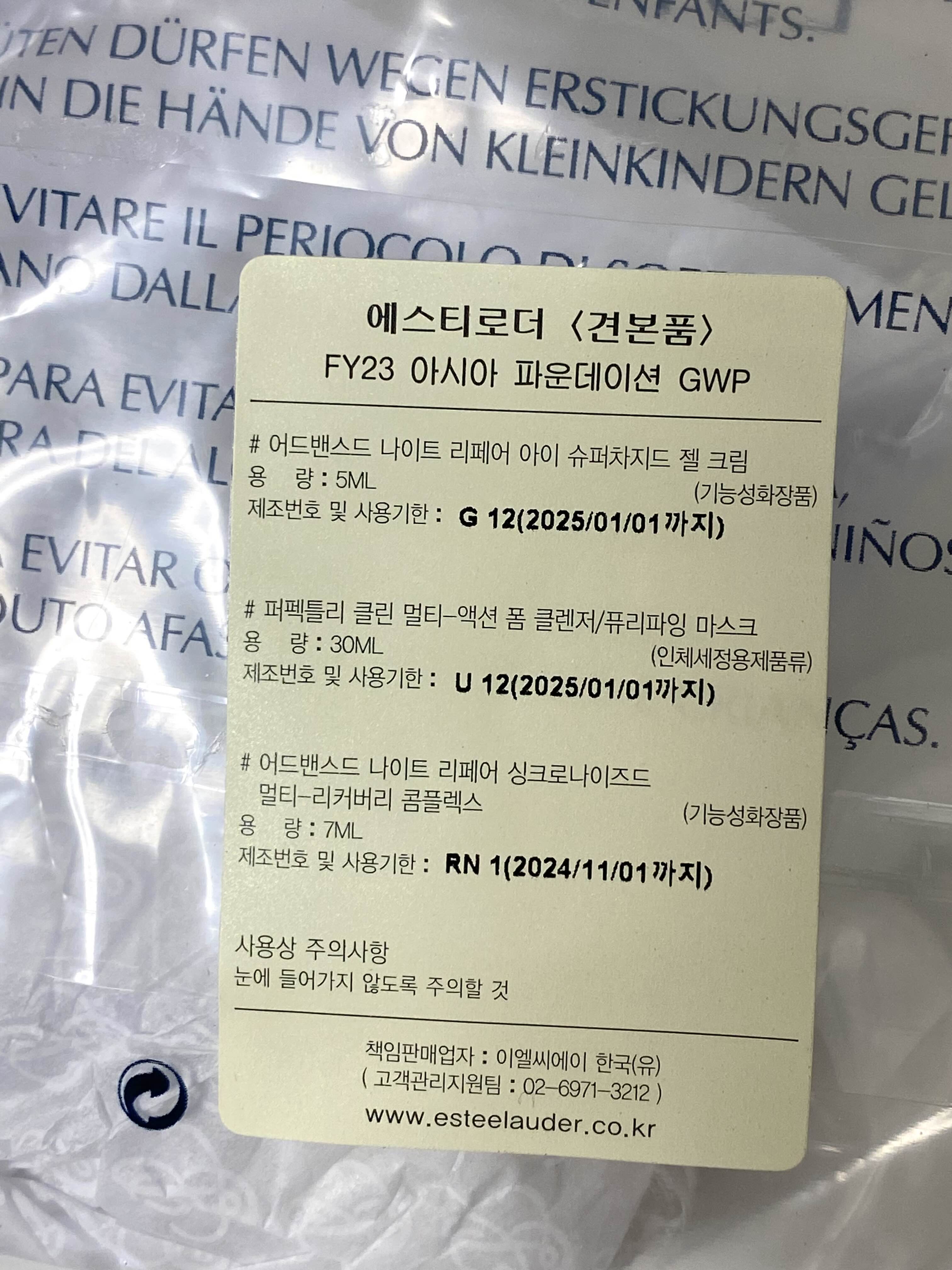어드밴스드 나이트 리페어 아이 슈퍼차지드 젤 크림 5ml, 퍼펙틀리 클린 멀티-액션 폼 클렌저/퓨리파잉 마스크 30ml, 어드밴스드 나이트 리페어 싱크로나이즈드 멀티-리커버리 콤플렉스 7ml 샘플이 들어있다.
