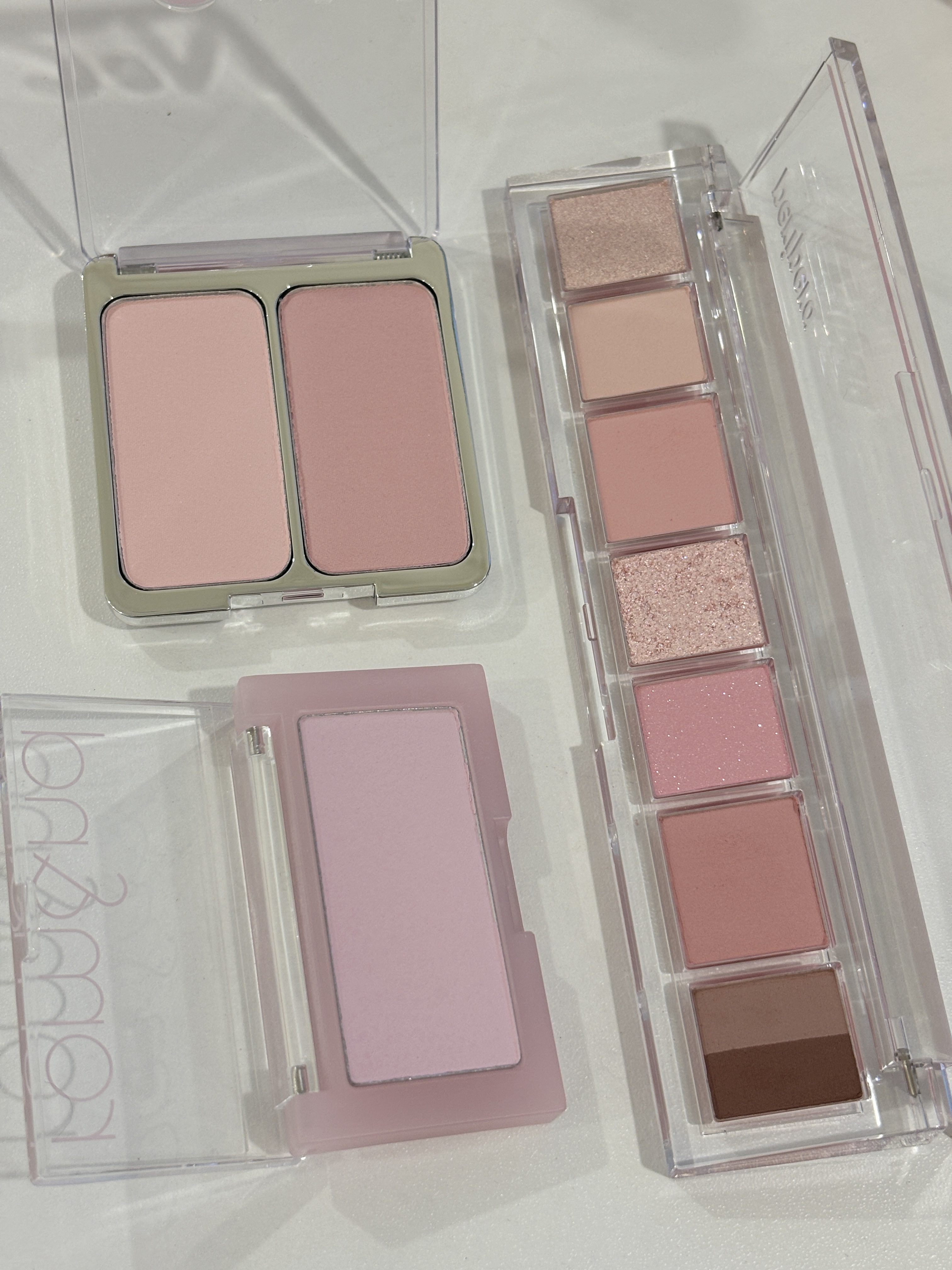 왼쪽 사진 아래에 있는 라벤더 컬러의 블러셔는 롬앤 오디밀크 인데요.